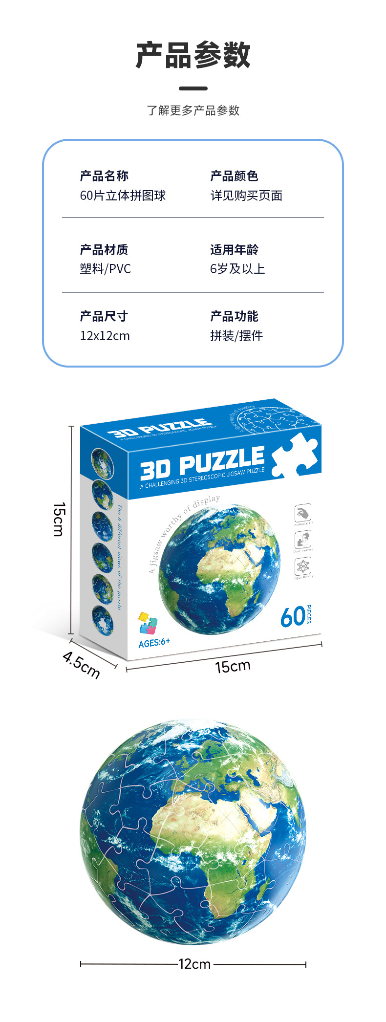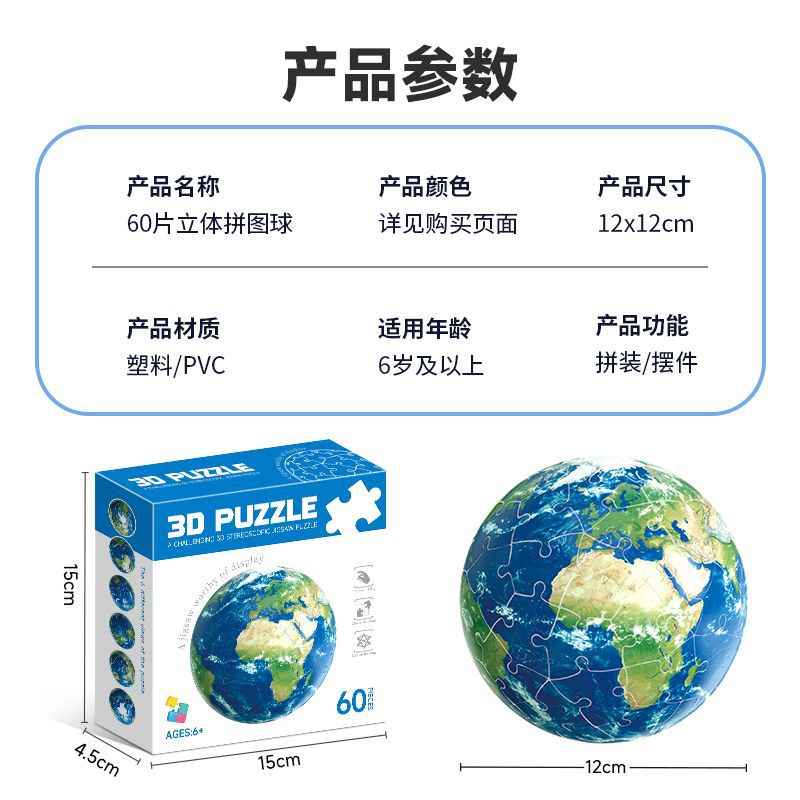 • 12cm 만화 지구 입체 퍼즐 장식품 (60개)