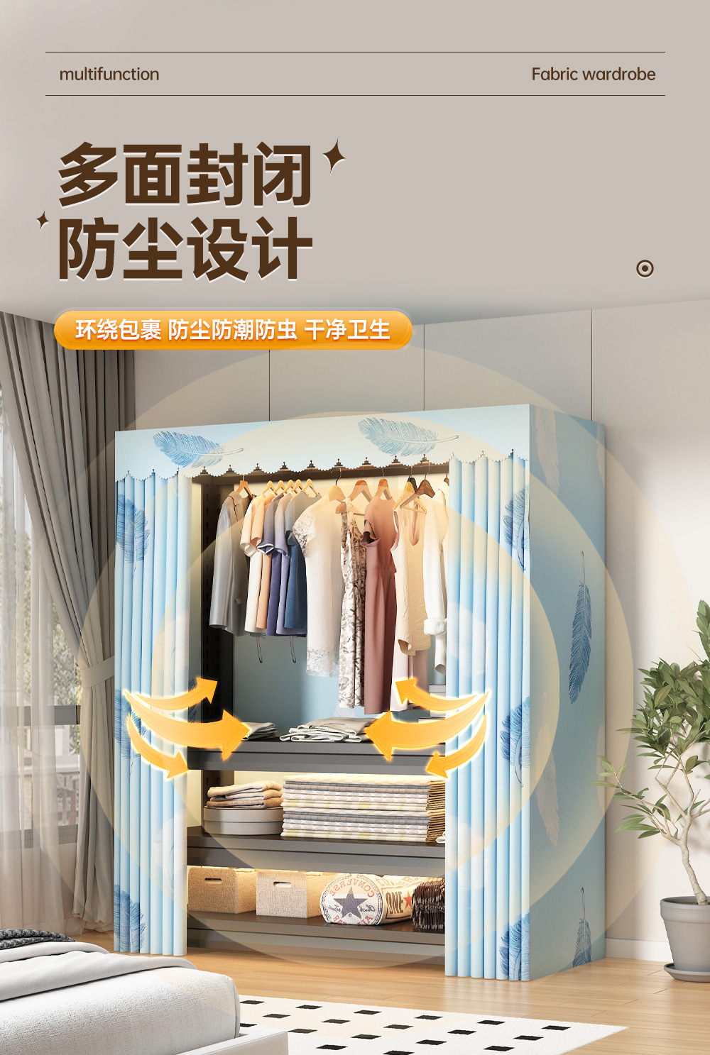 옷장 천 커버 단일 판매 밀봉 된 먼지 커버 두꺼운 폴리 에스테르 천 저장 옷장 교체 간단한 옷장 덮개