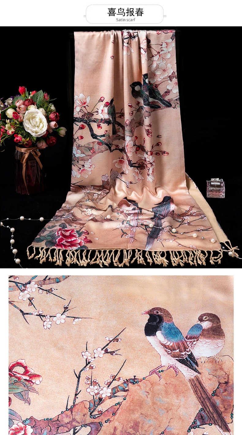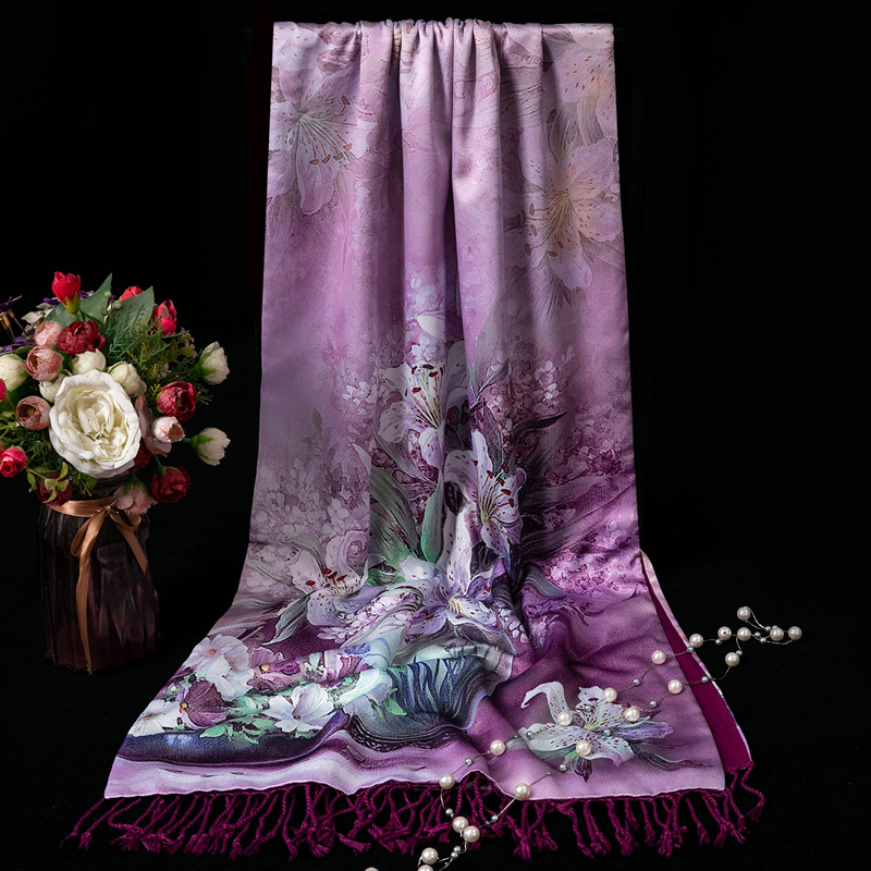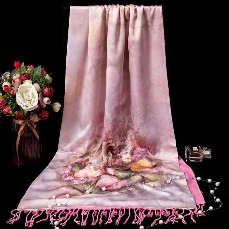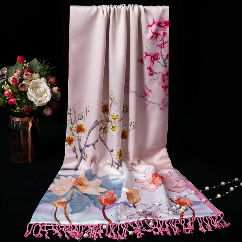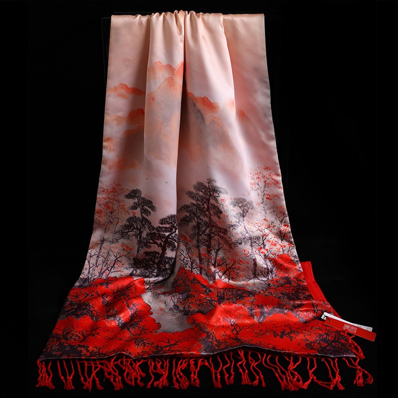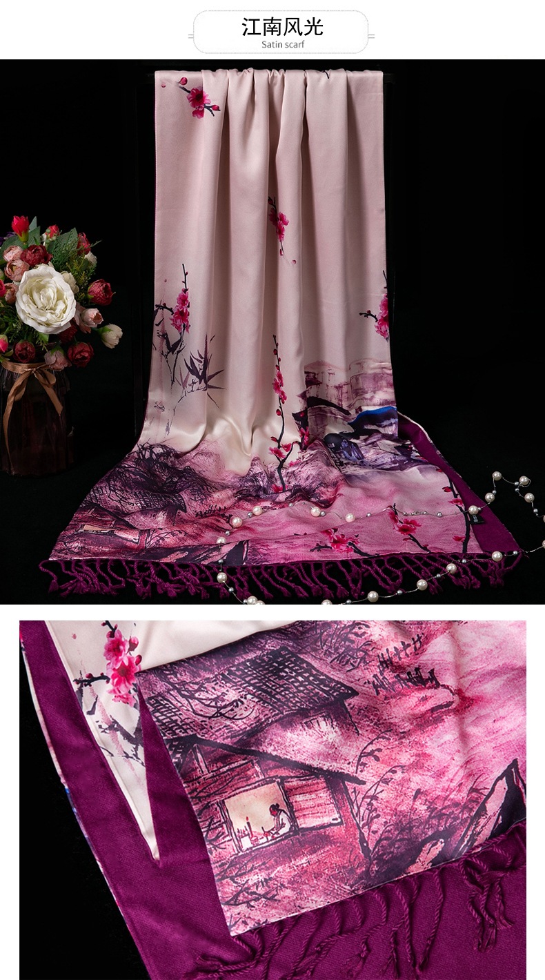 새로운 중국 스타일 실크 스카프 여성 뽕나무 실크 겨울 청삼 목도리 스카프 듀얼 사용스토어 가기