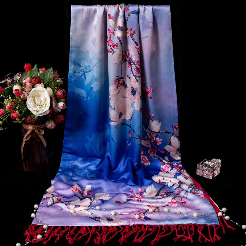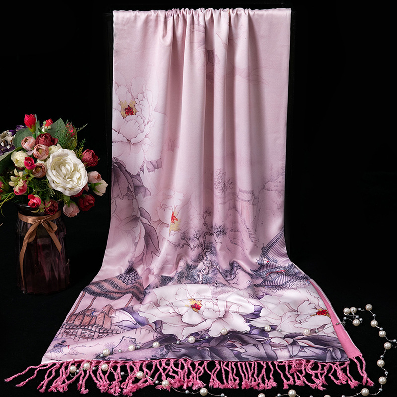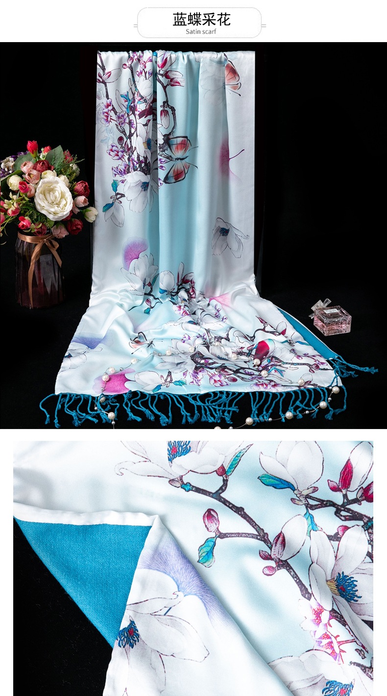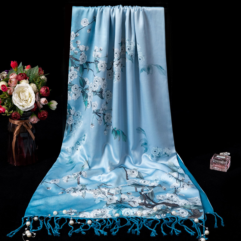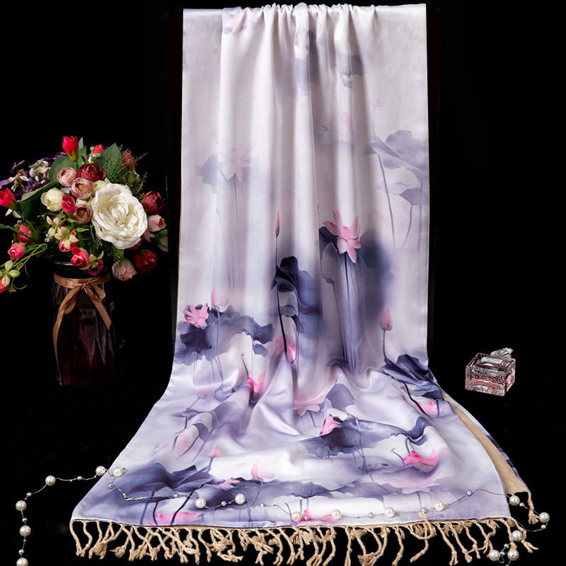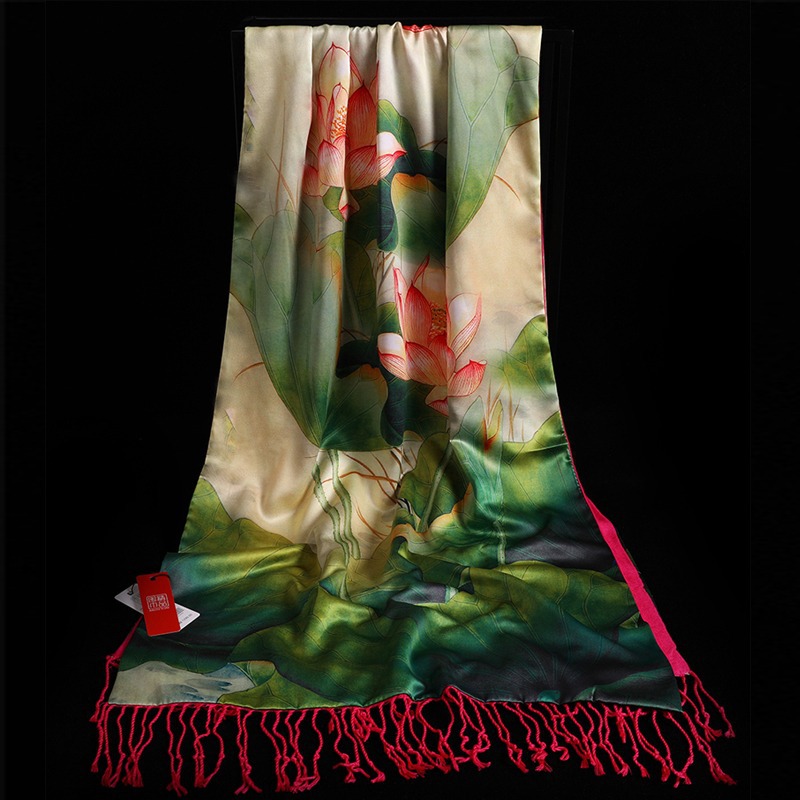 새로운 중국 스타일 실크 스카프 여성 뽕나무 실크 겨울 청삼 목도리 스카프 듀얼 사용스토어 가기