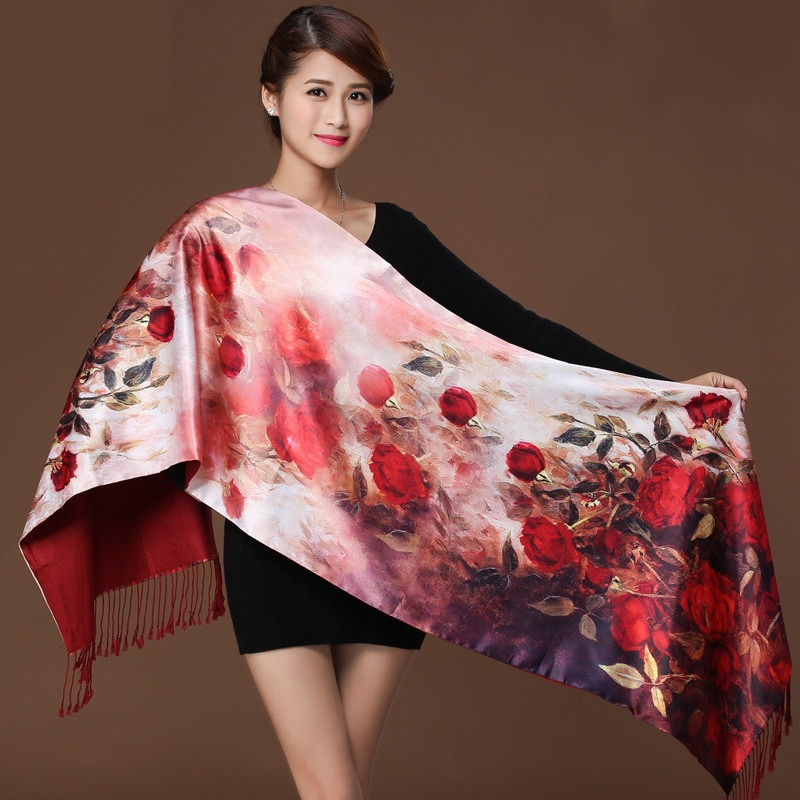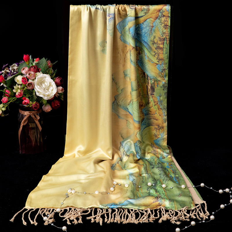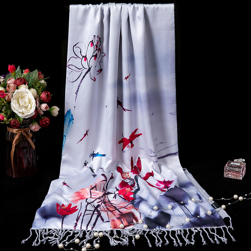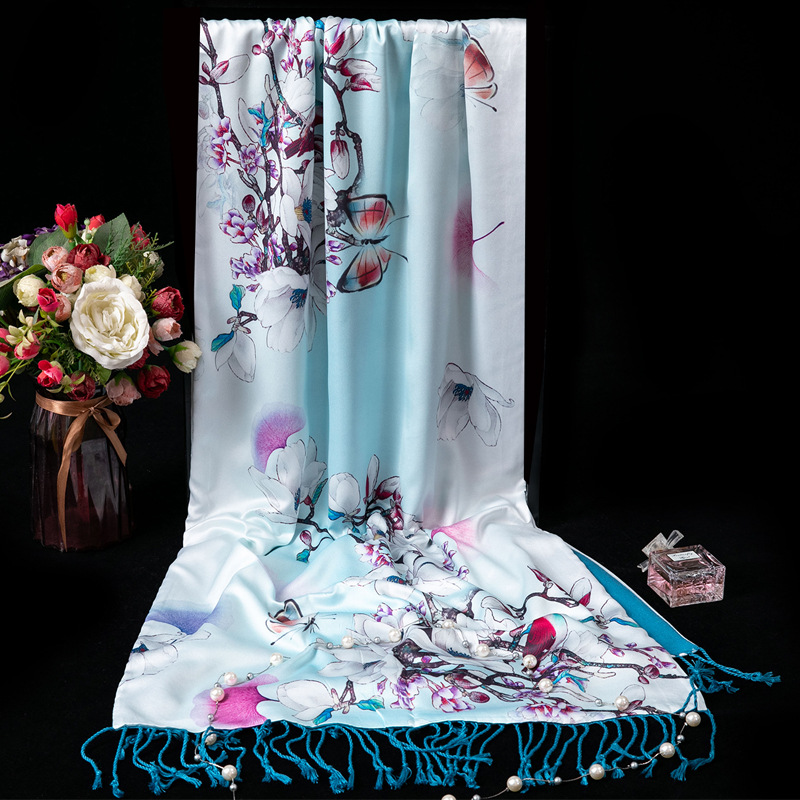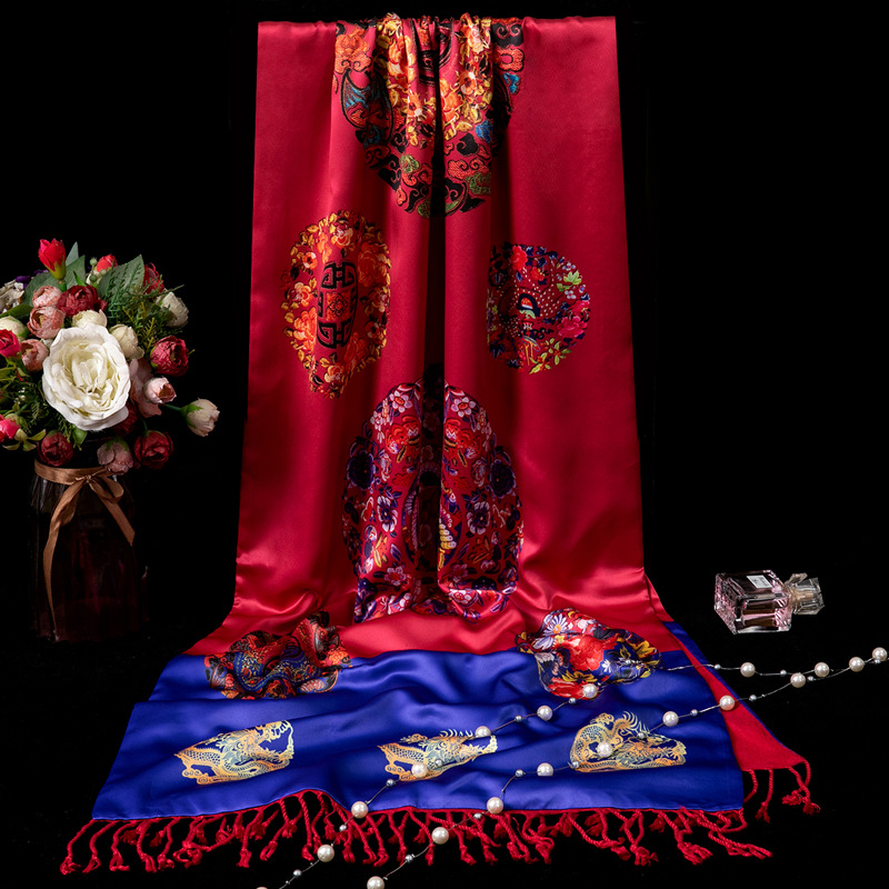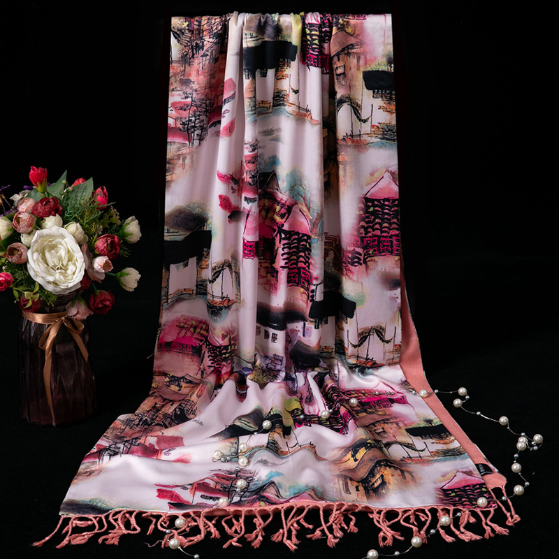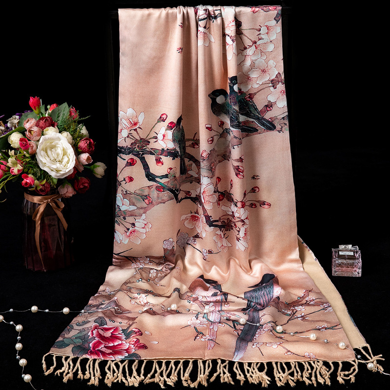 새로운 중국 스타일 실크 스카프 여성 뽕나무 실크 겨울 청삼 목도리 스카프 듀얼 사용