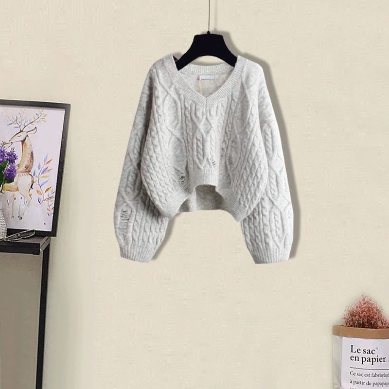 • 회색 찢어진 스웨터