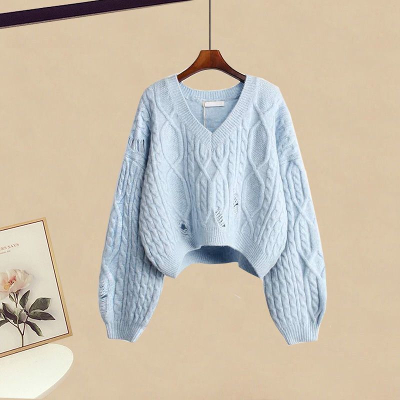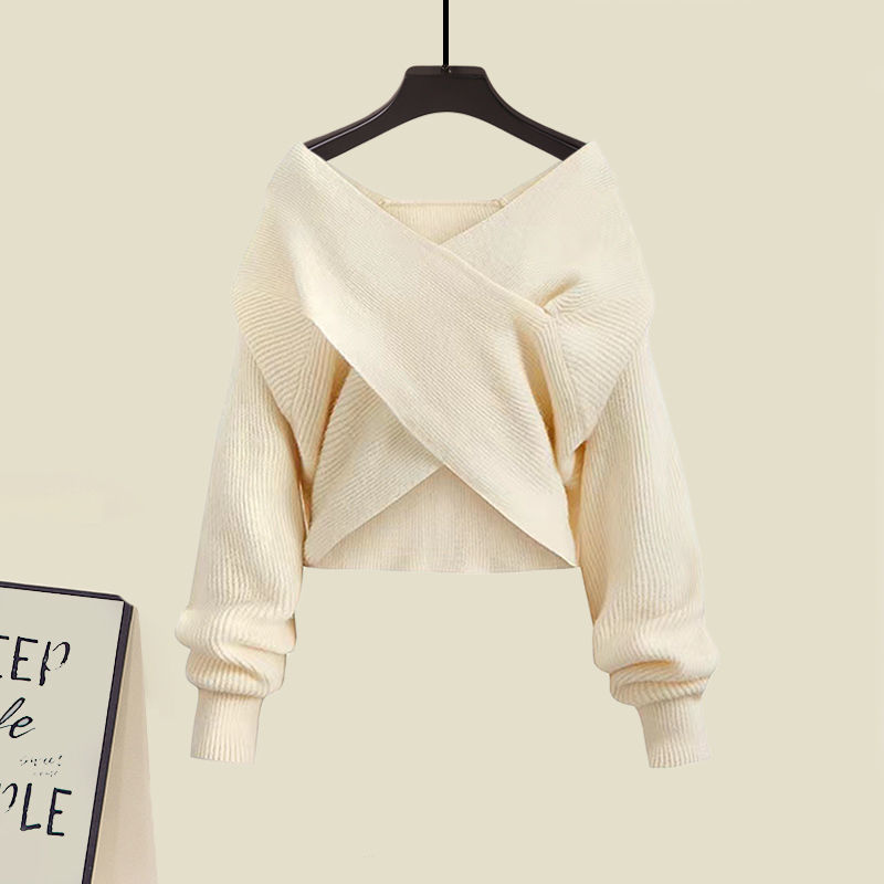 G 가을 세트 여성의 새로운 피쉬 테일 원피스 투피스 서양식 프랑스 스타일 크로스 니트 스웨터
