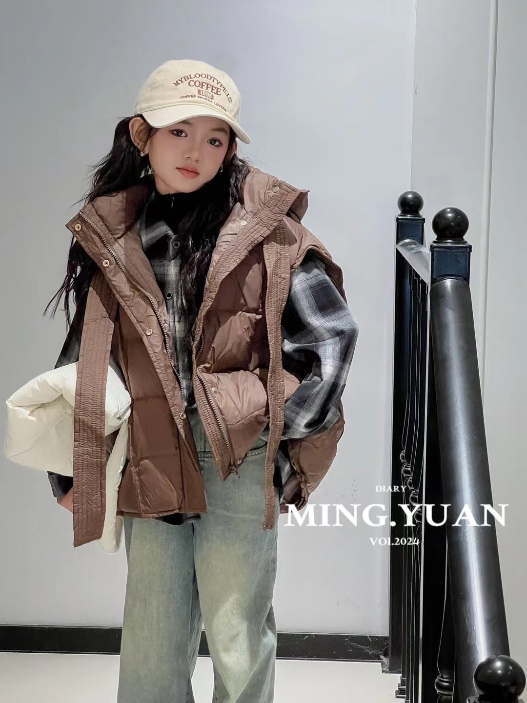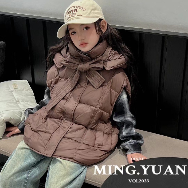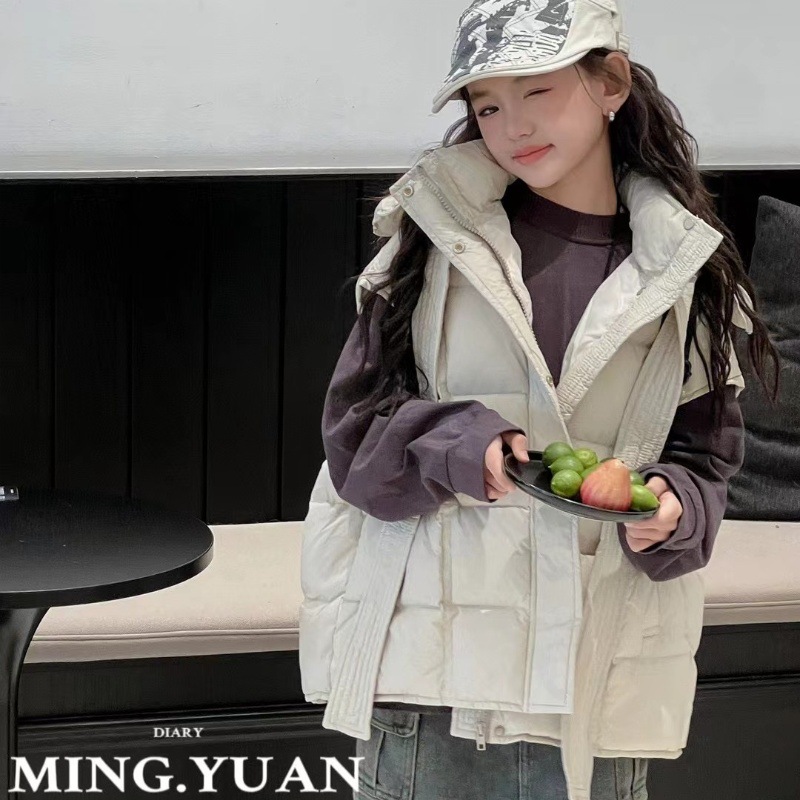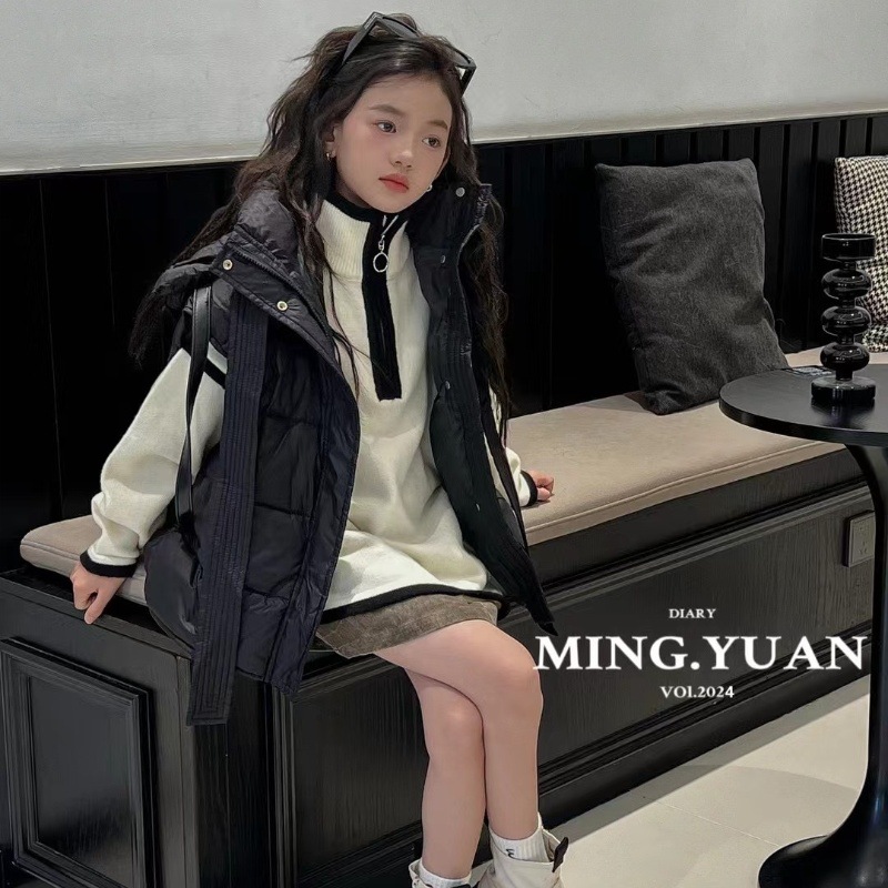 새로운 어린이 후드 다운 조끼 24 가을 겨울 한국 소녀 틈새 아기 조끼 큰 어린이 느슨한 재킷스토어 가기