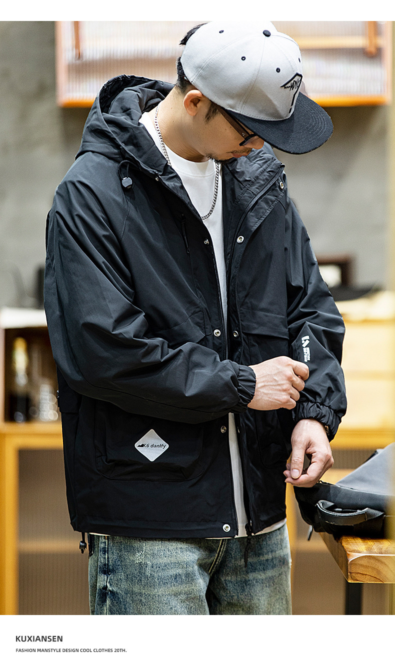 가을 충전 재킷 남자의 느슨한 유행 브랜드 플러스 사이즈 재킷 미국 스타일 후드 방수 야외 등산 의류 트렌디스토어 가기