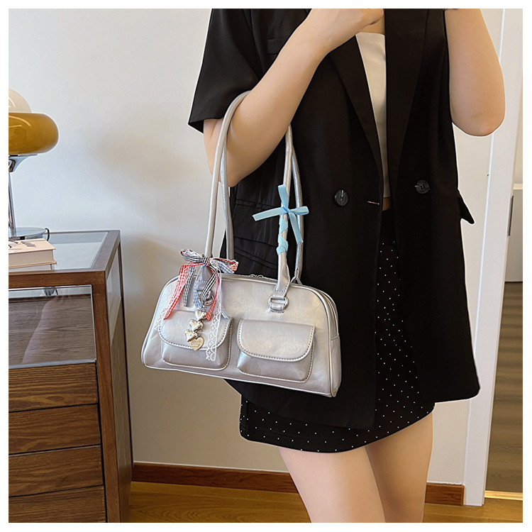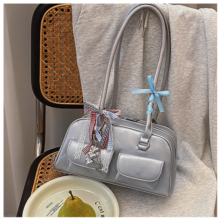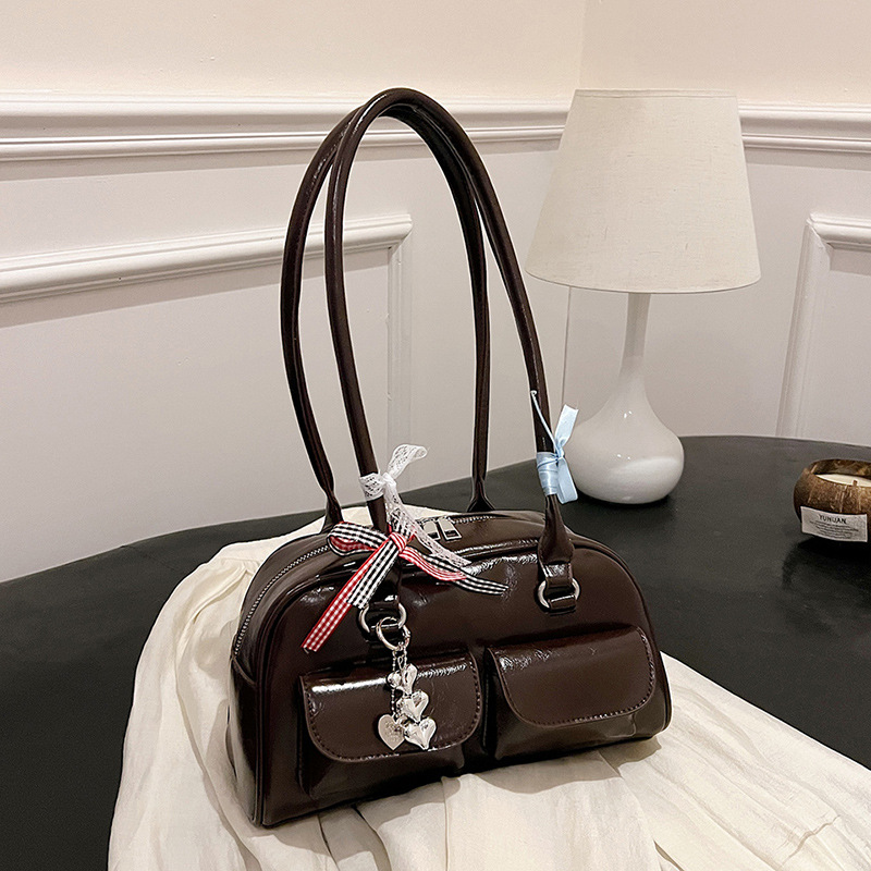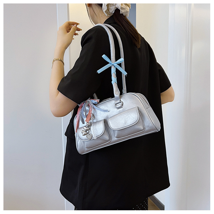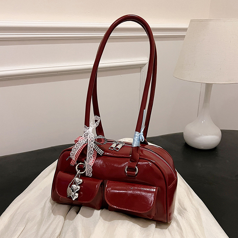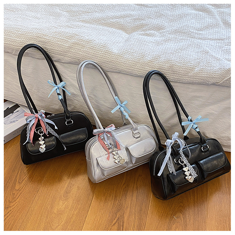 Yunzhen 같은 스타일 볼링 가방 언더암 가방 2025 새로운 Y2K 핫 걸 모터카 가방 Ins 틈새 레트로 숄더 백