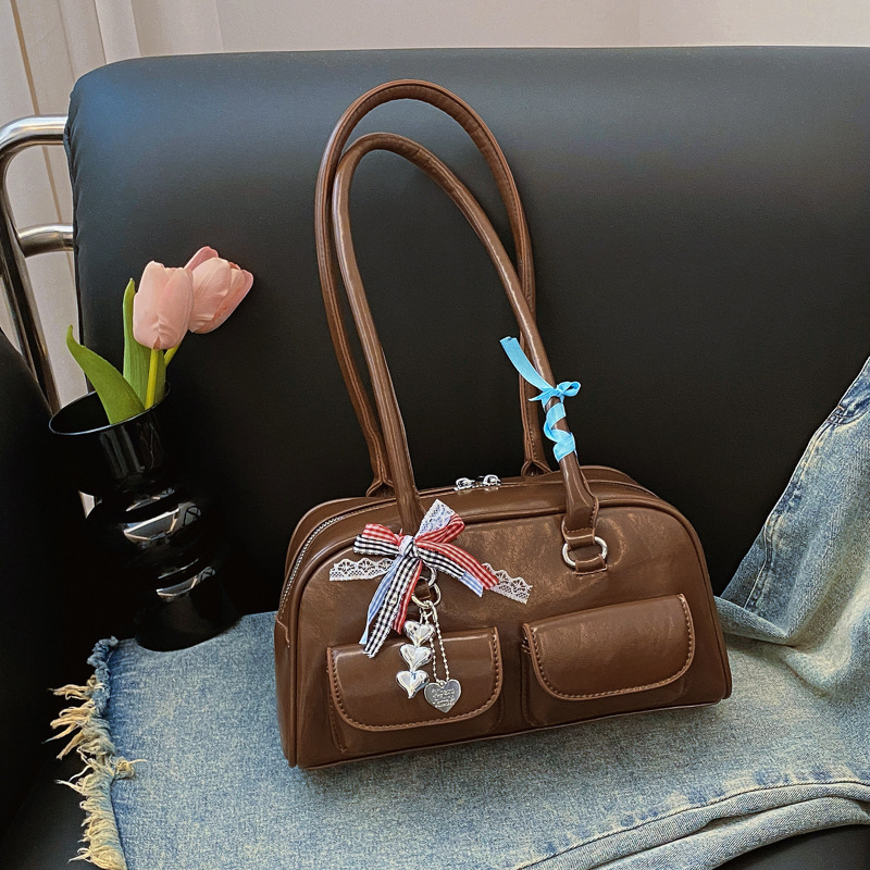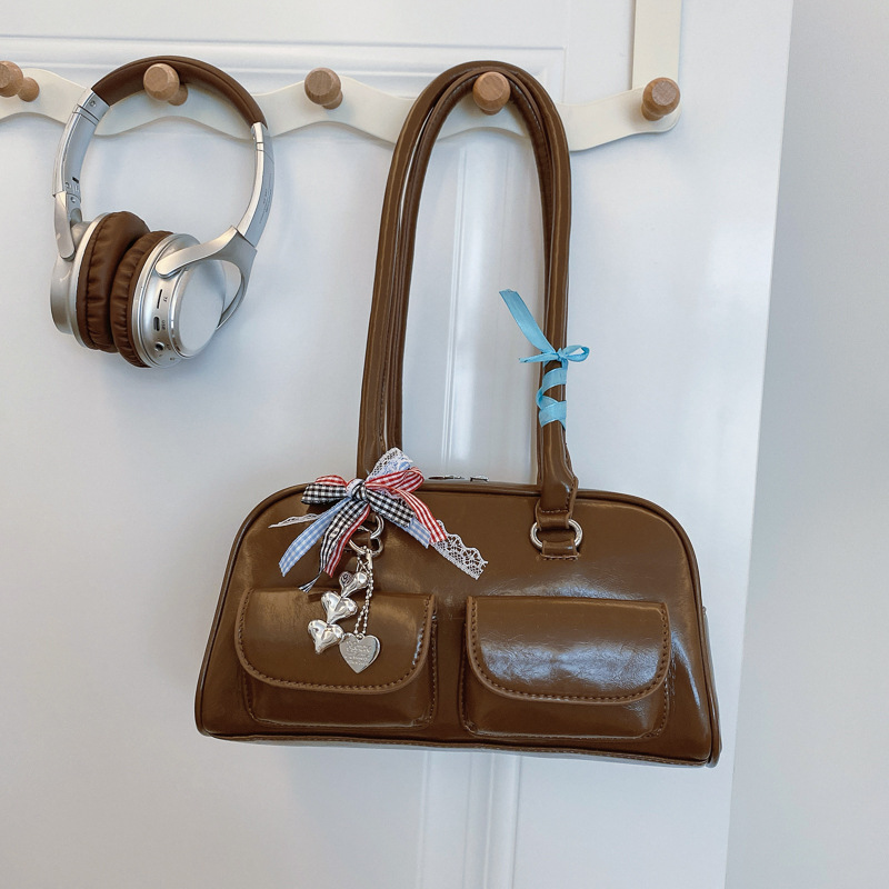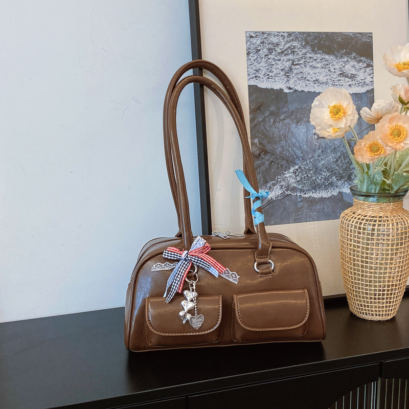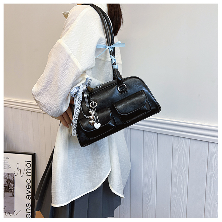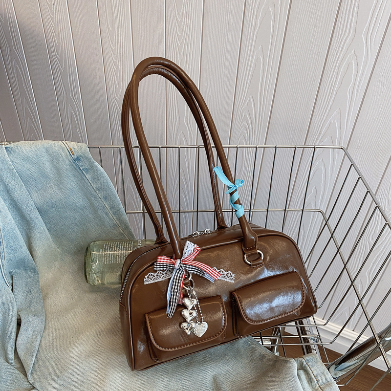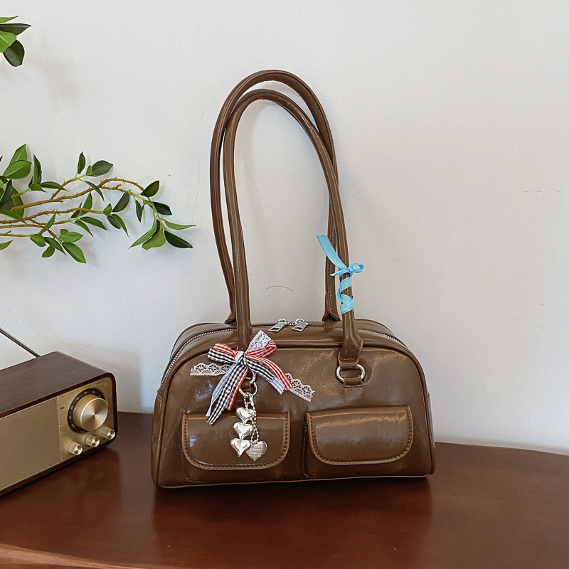 Yunzhen 같은 스타일 볼링 가방 언더암 가방 2025 새로운 Y2K 핫 걸 모터카 가방 Ins 틈새 레트로 숄더 백
