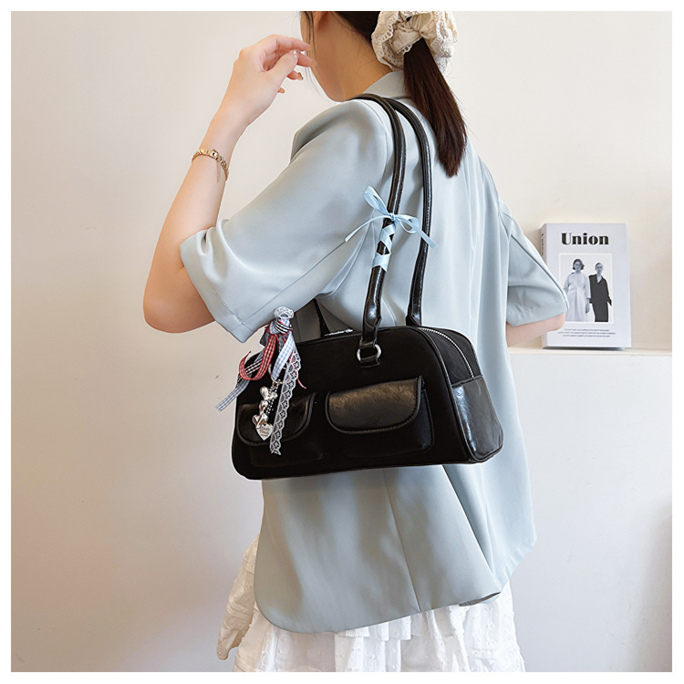 Yunzhen 같은 스타일 볼링 가방 언더암 가방 2025 새로운 Y2K 핫 걸 모터카 가방 Ins 틈새 레트로 숄더 백스토어 가기