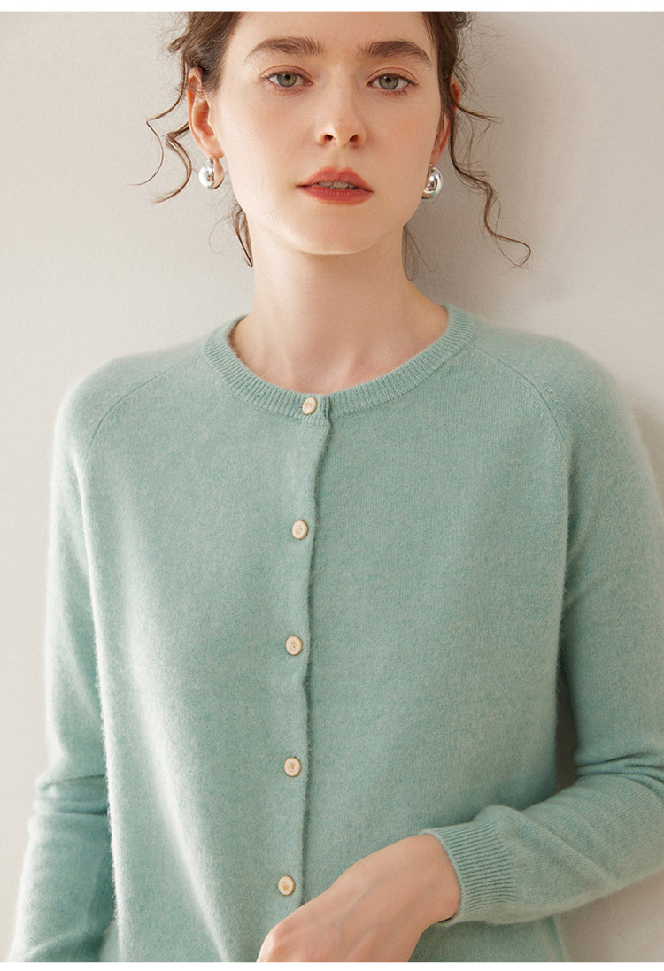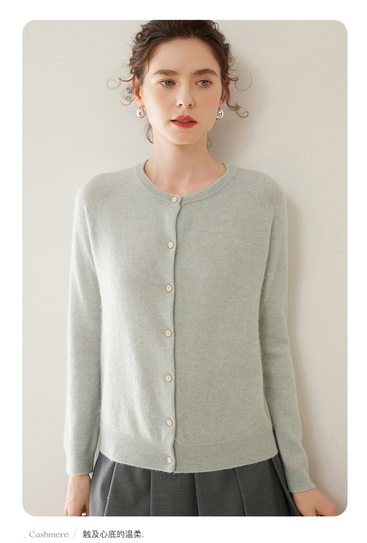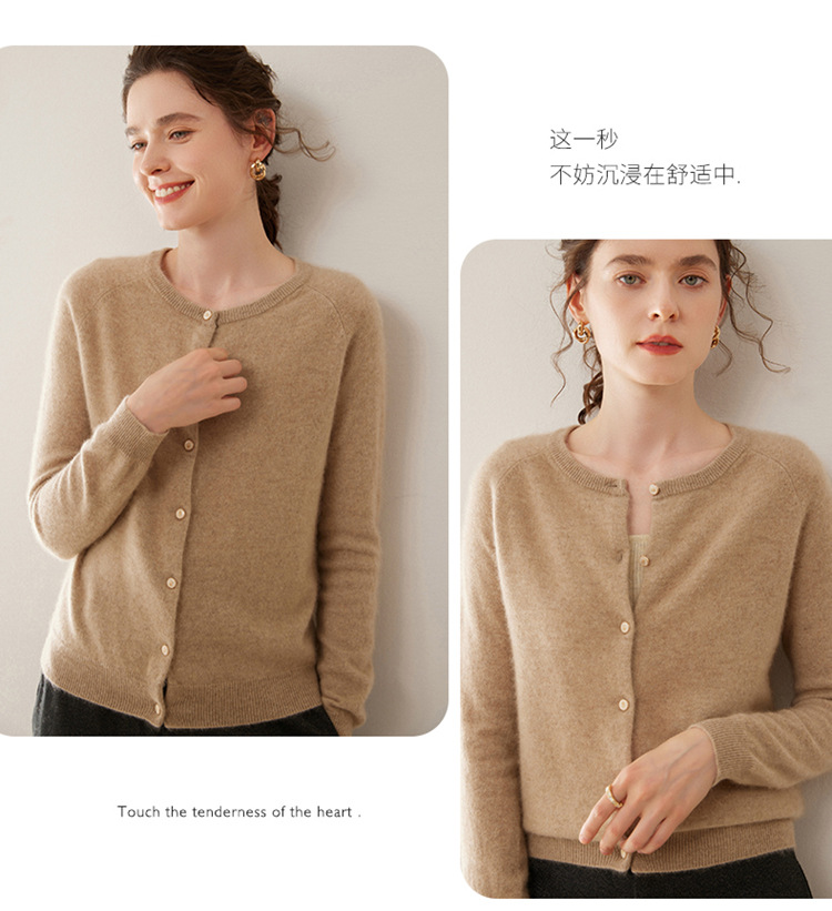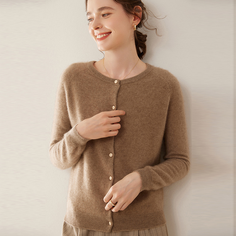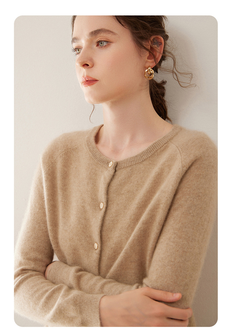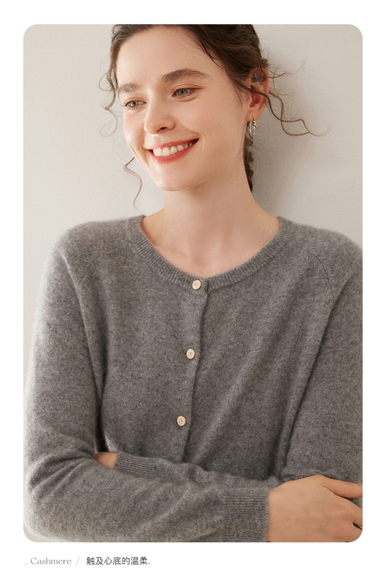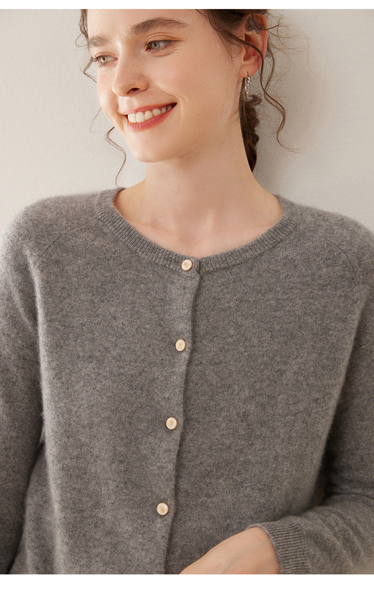 오르도스 시 라운드넥 100% 순수 캐시미어 가디건 여성용 캐시미어 래글런 루즈핏 슬림 니트 자켓