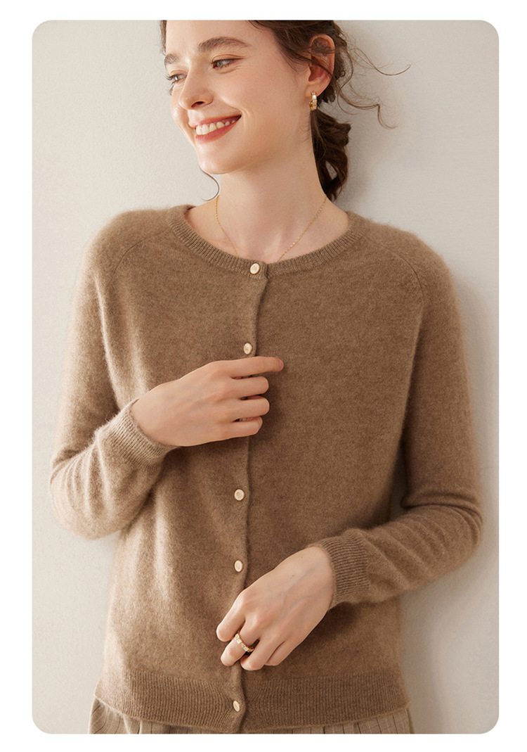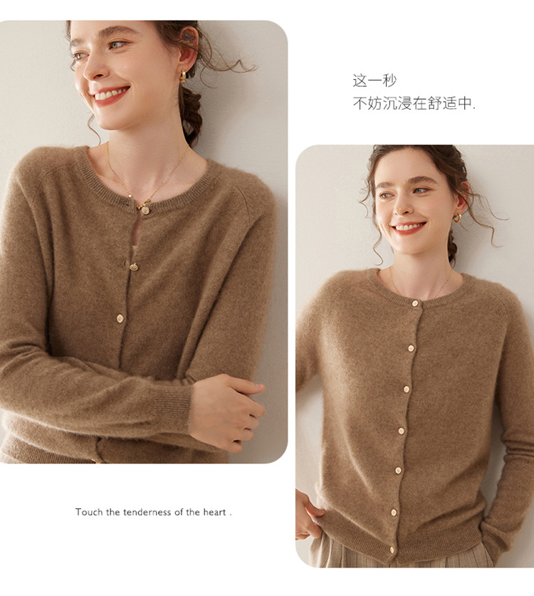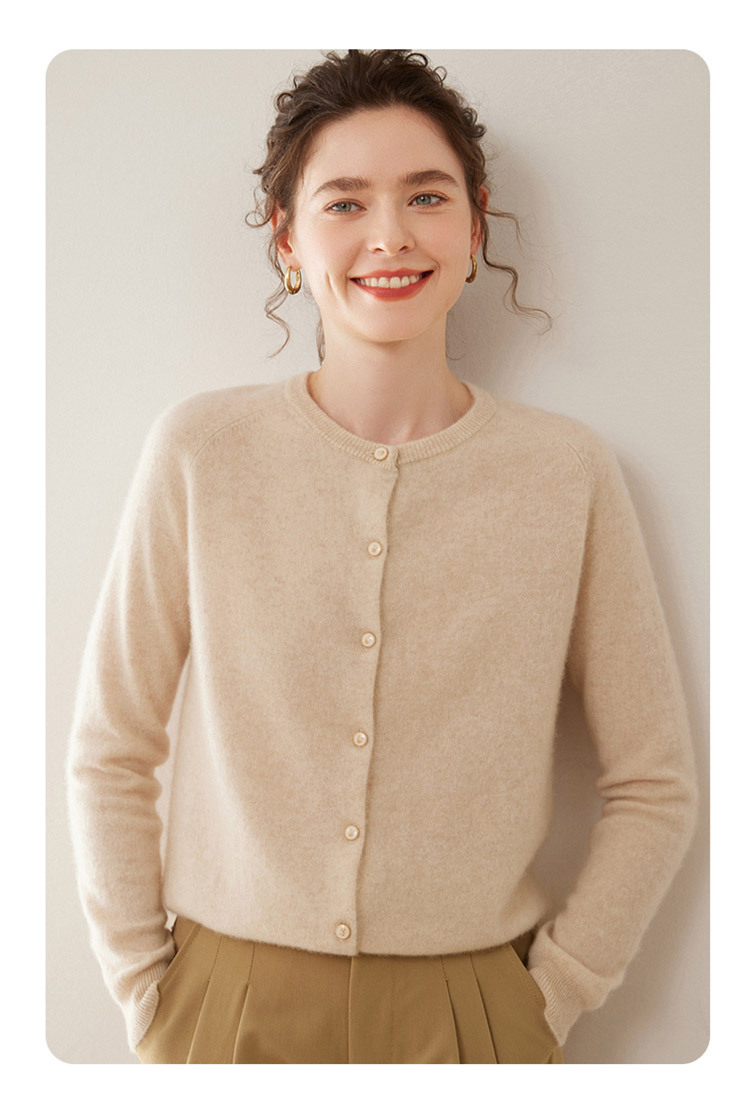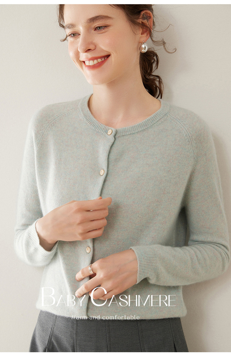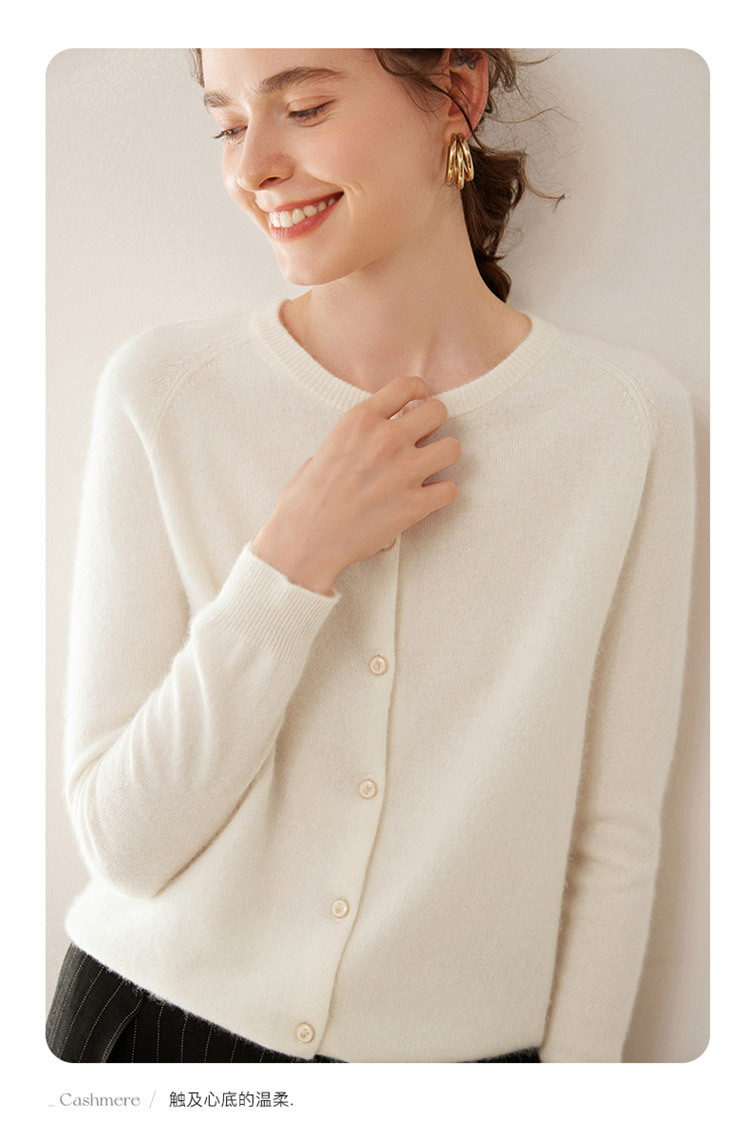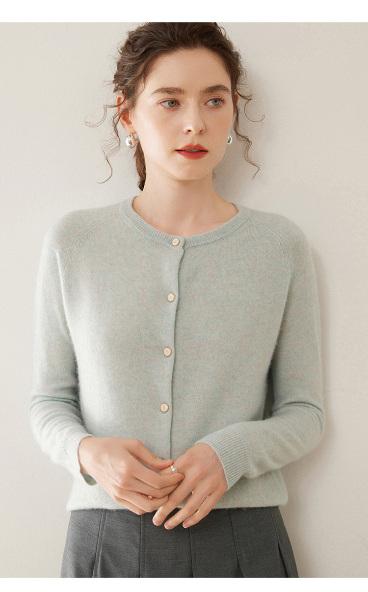 오르도스 시 라운드넥 100% 순수 캐시미어 가디건 여성용 캐시미어 래글런 루즈핏 슬림 니트 자켓