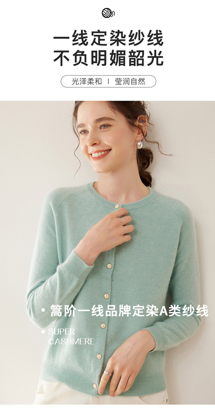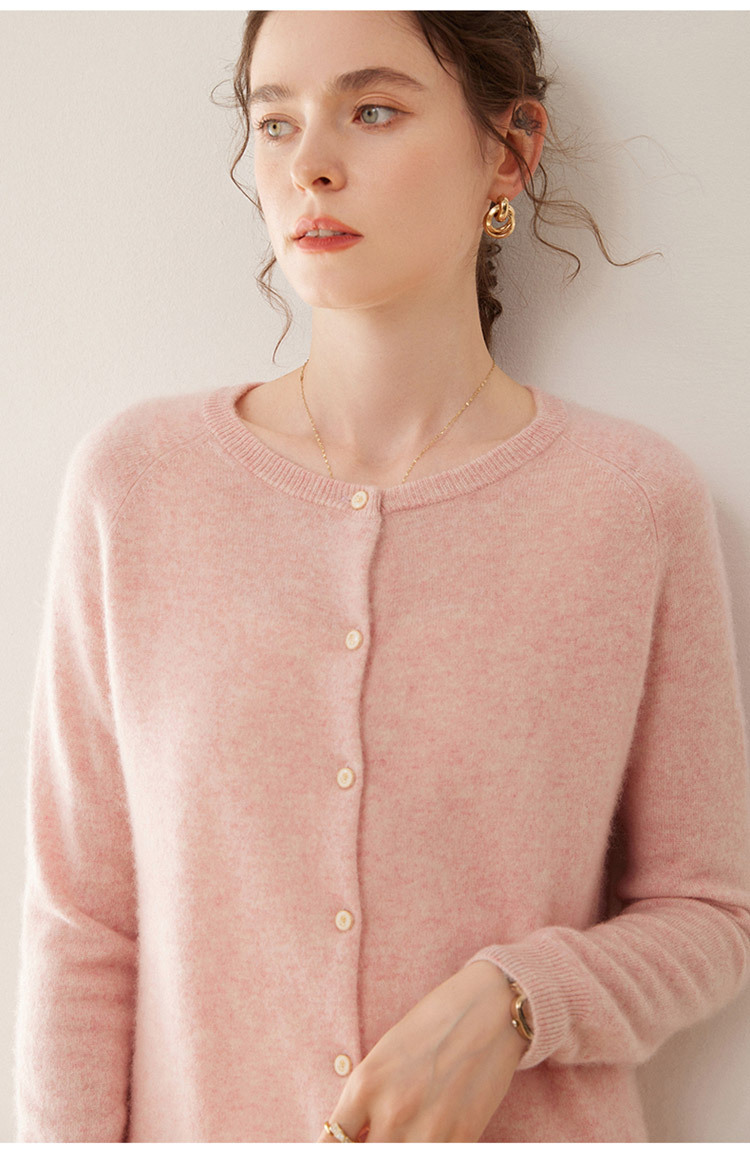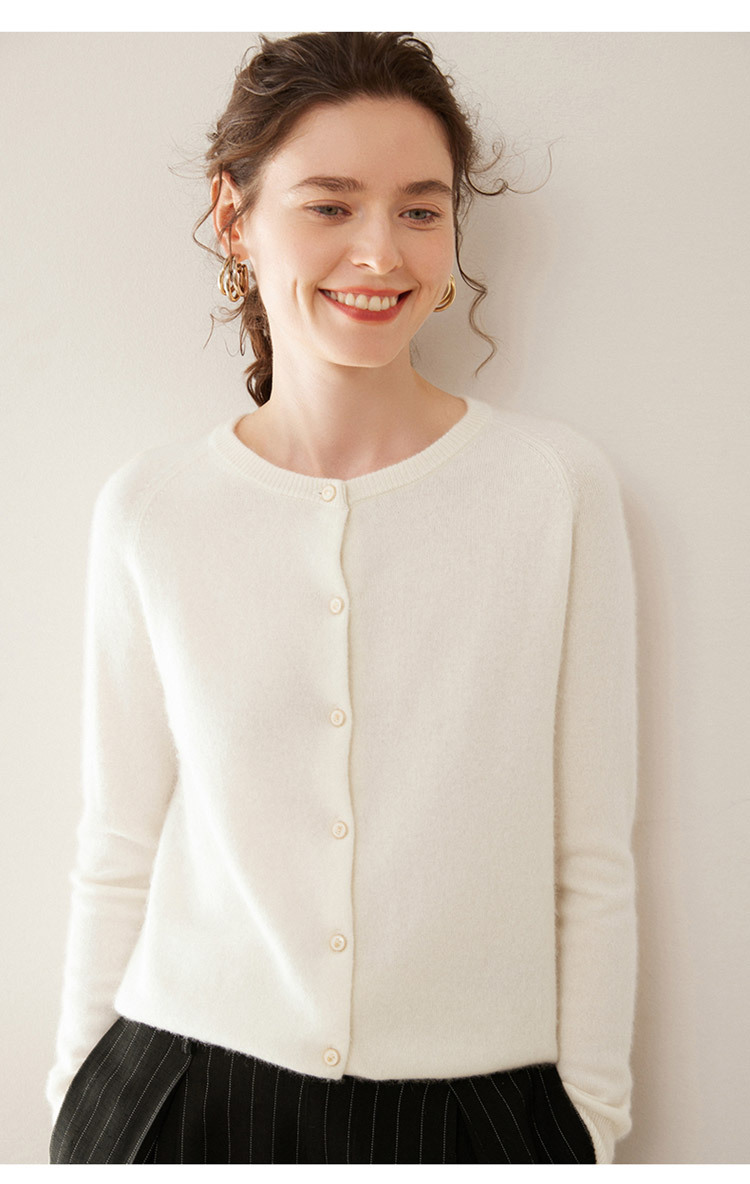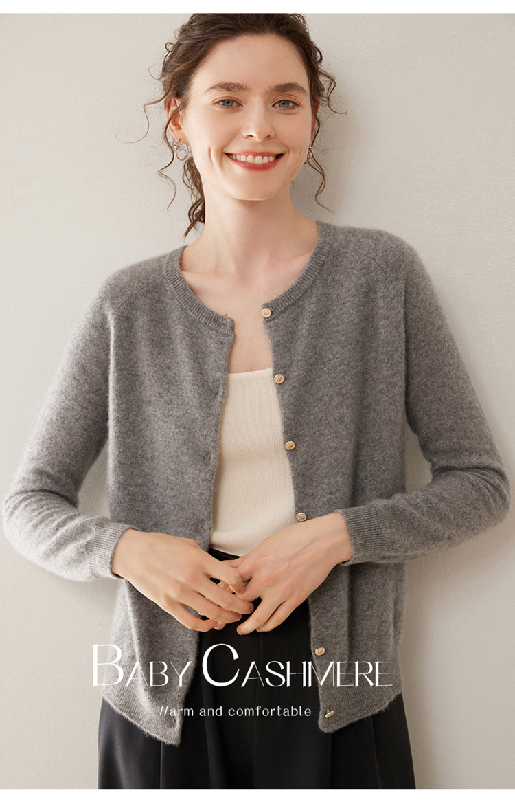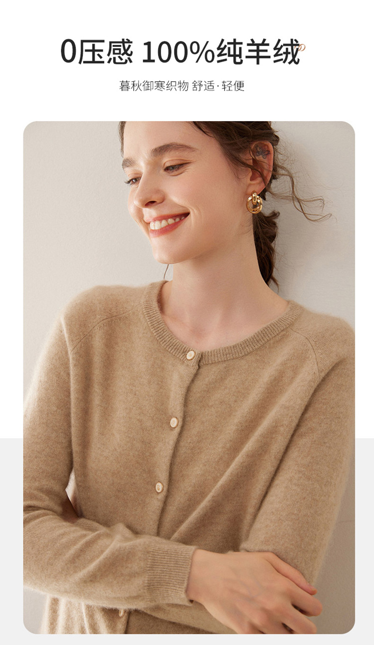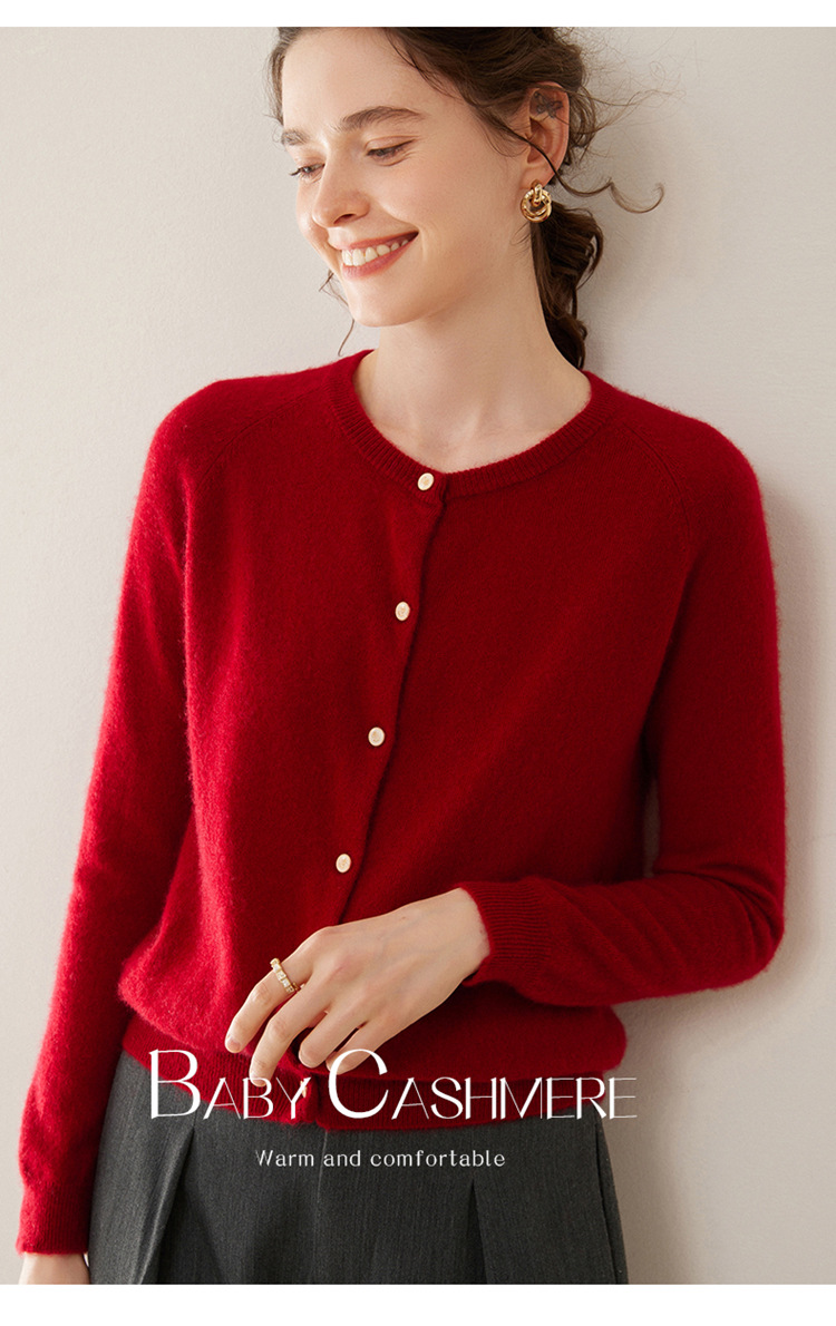 오르도스 시 라운드넥 100% 순수 캐시미어 가디건 여성용 캐시미어 래글런 루즈핏 슬림 니트 자켓