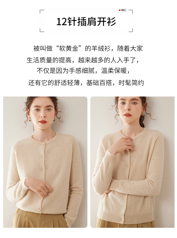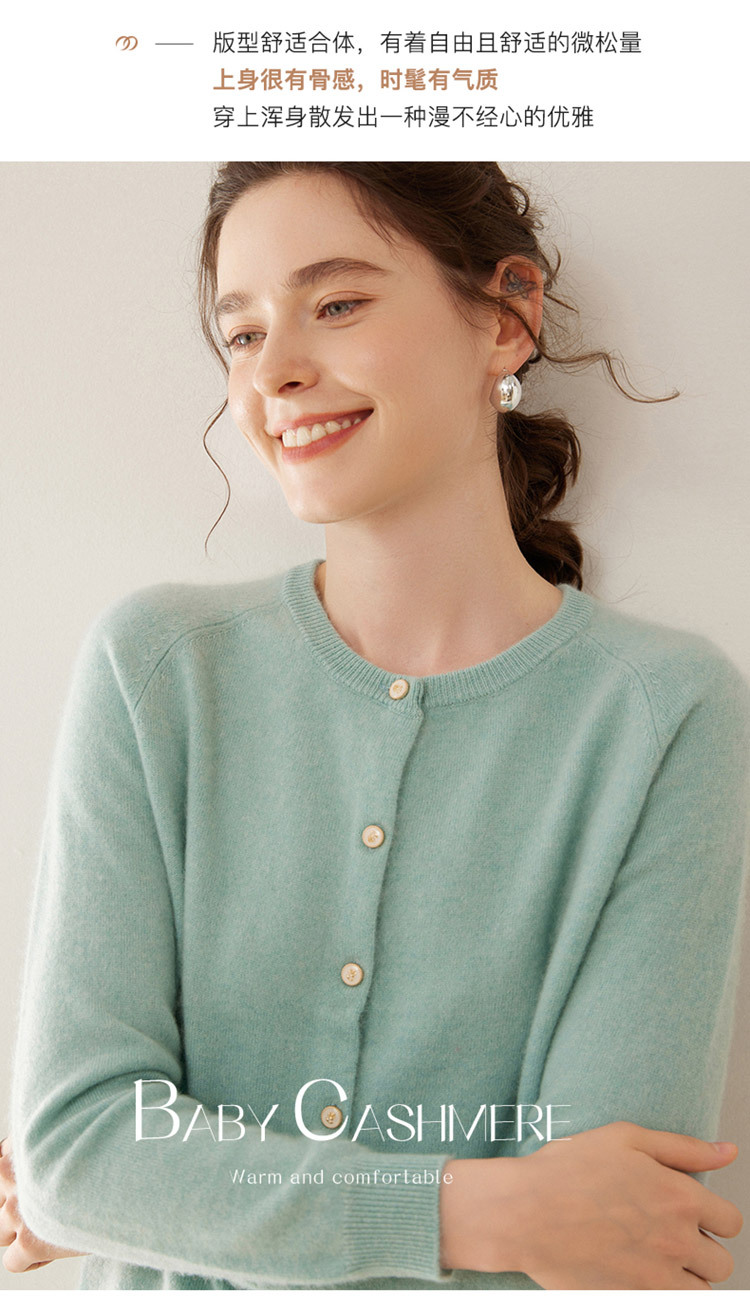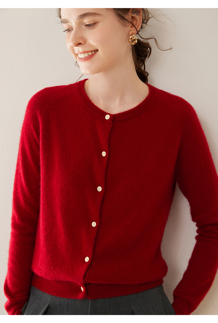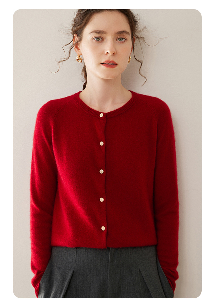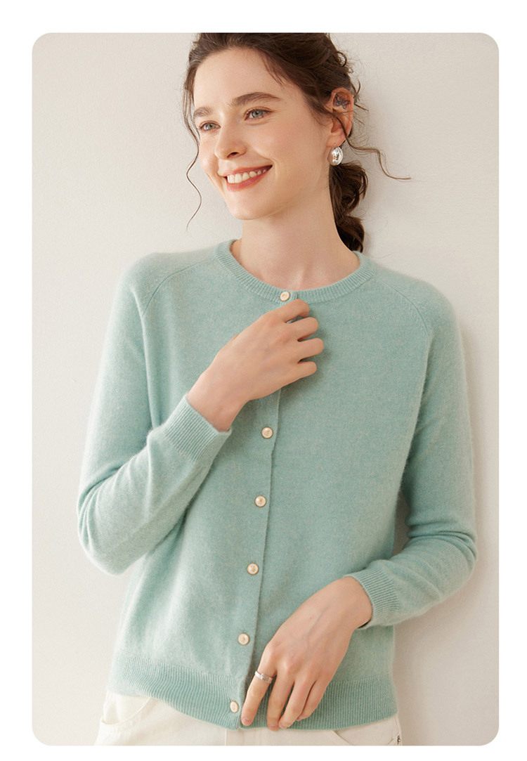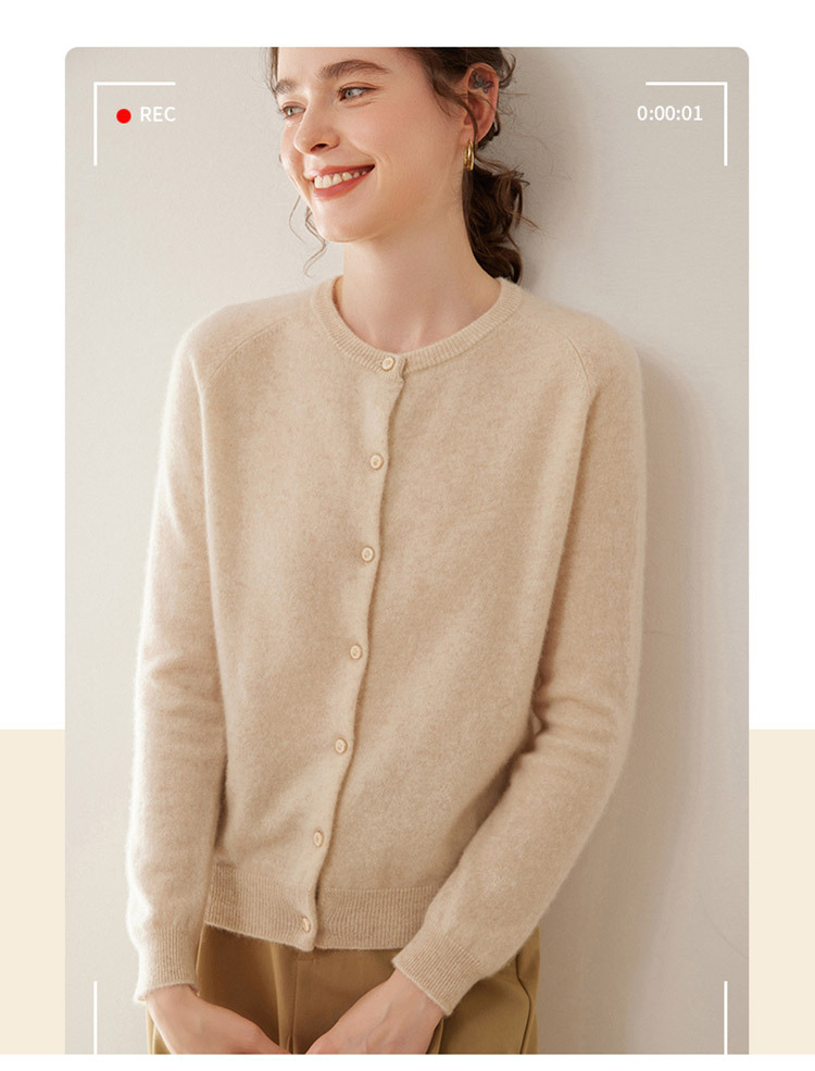 오르도스 시 라운드넥 100% 순수 캐시미어 가디건 여성용 캐시미어 래글런 루즈핏 슬림 니트 자켓