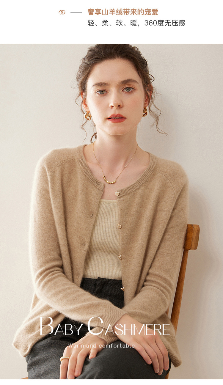 오르도스 시 라운드넥 100% 순수 캐시미어 가디건 여성용 캐시미어 래글런 루즈핏 슬림 니트 자켓스토어 가기