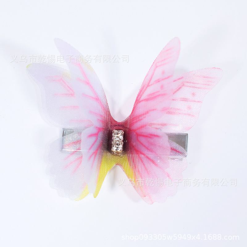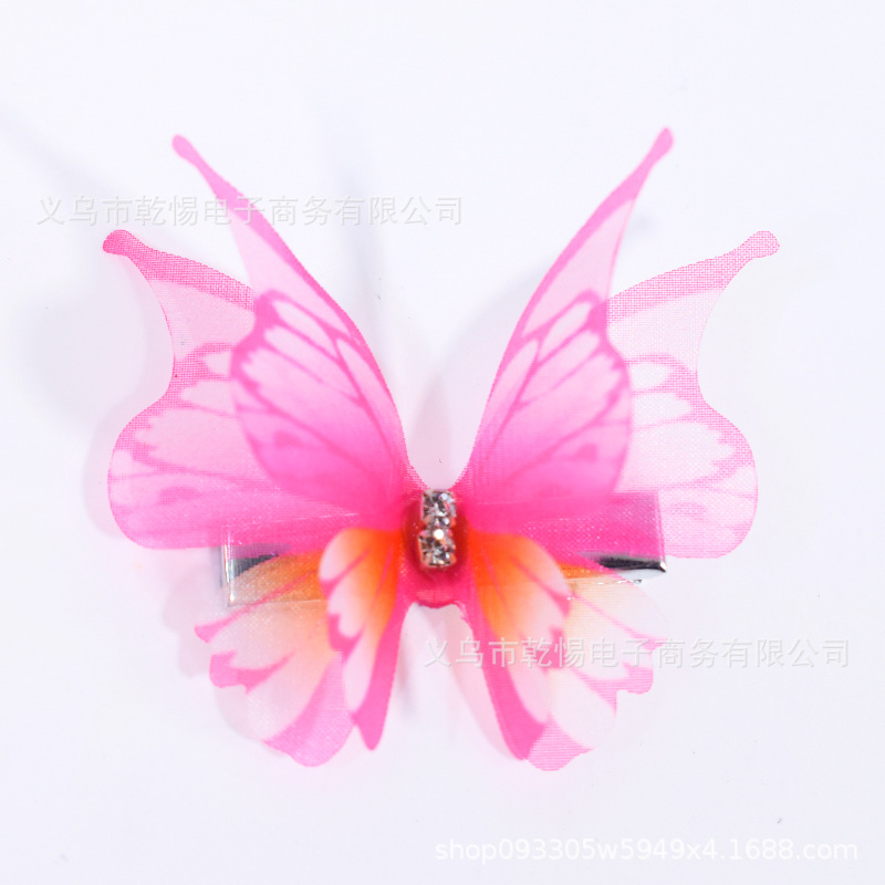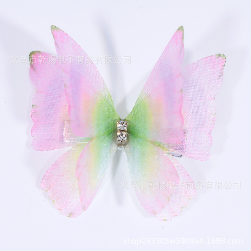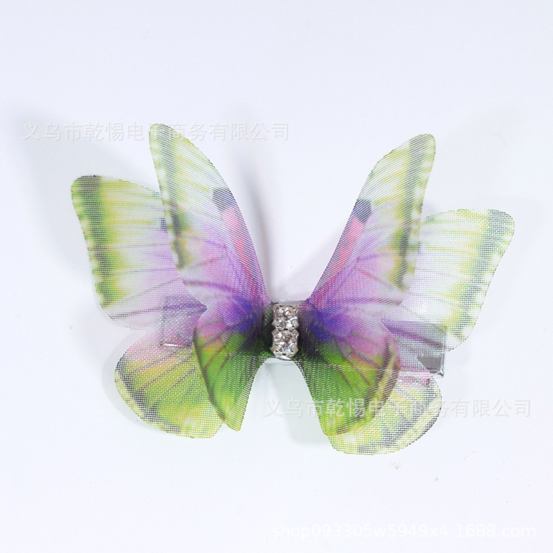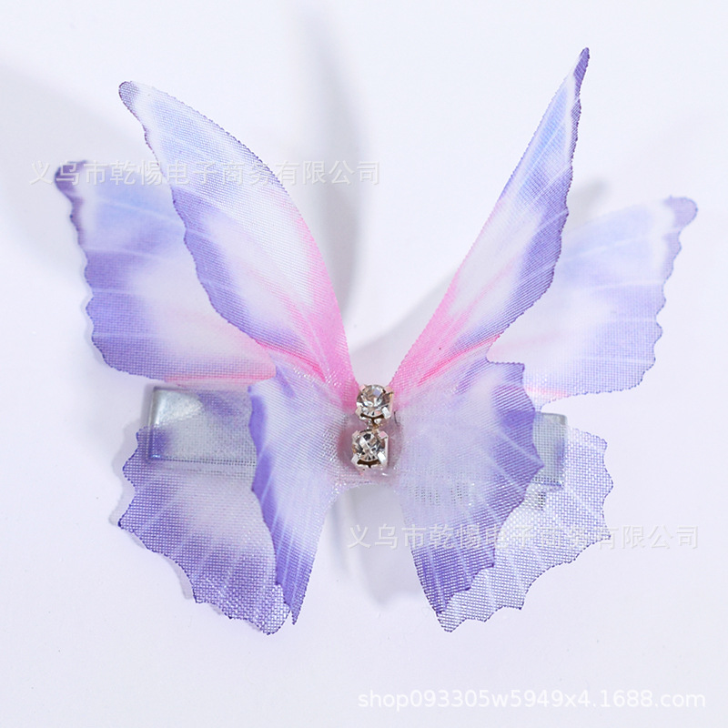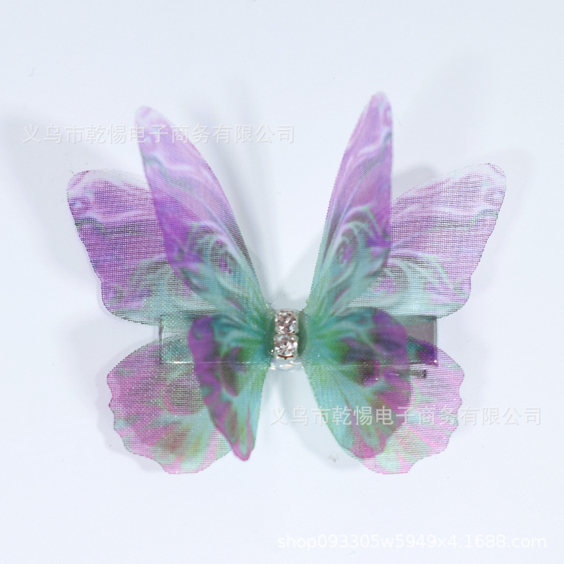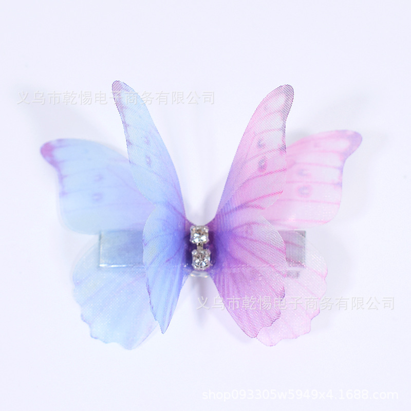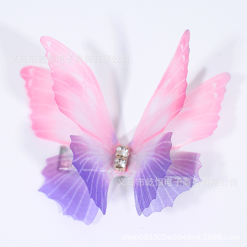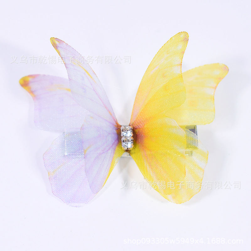 소스 공장 새로운 시뮬레이션 슈퍼 요정 3 차원 얇은 명주 나비 머리핀 어린이 헤어 액세서리 소녀 실크 원사 나비 사이드 클립