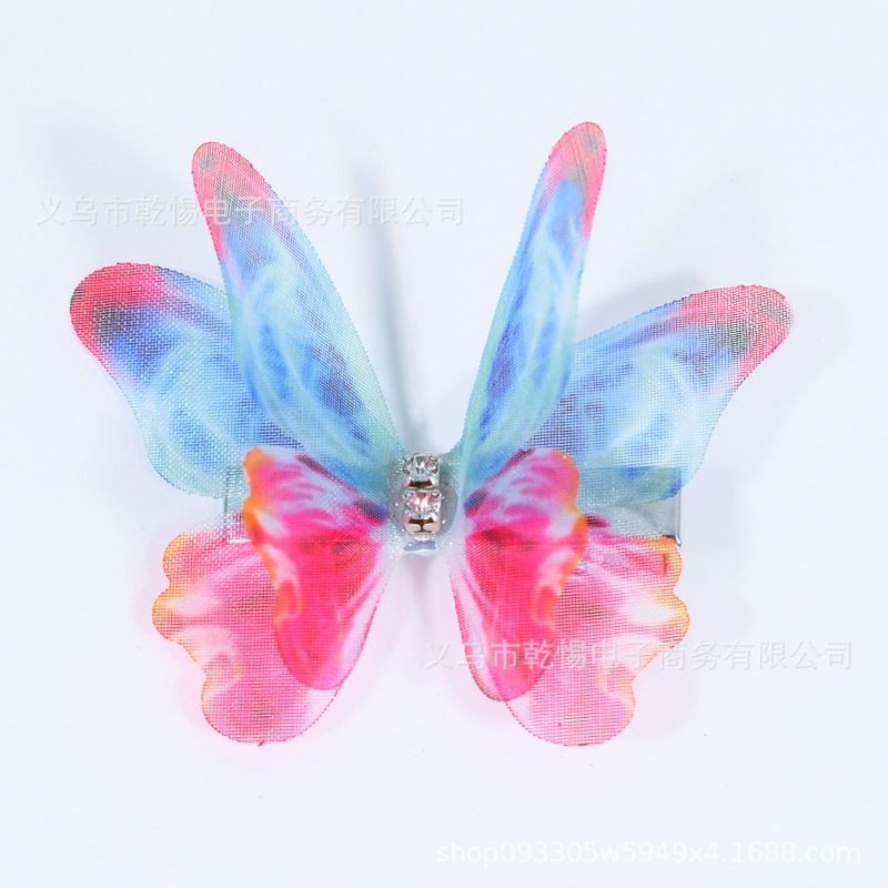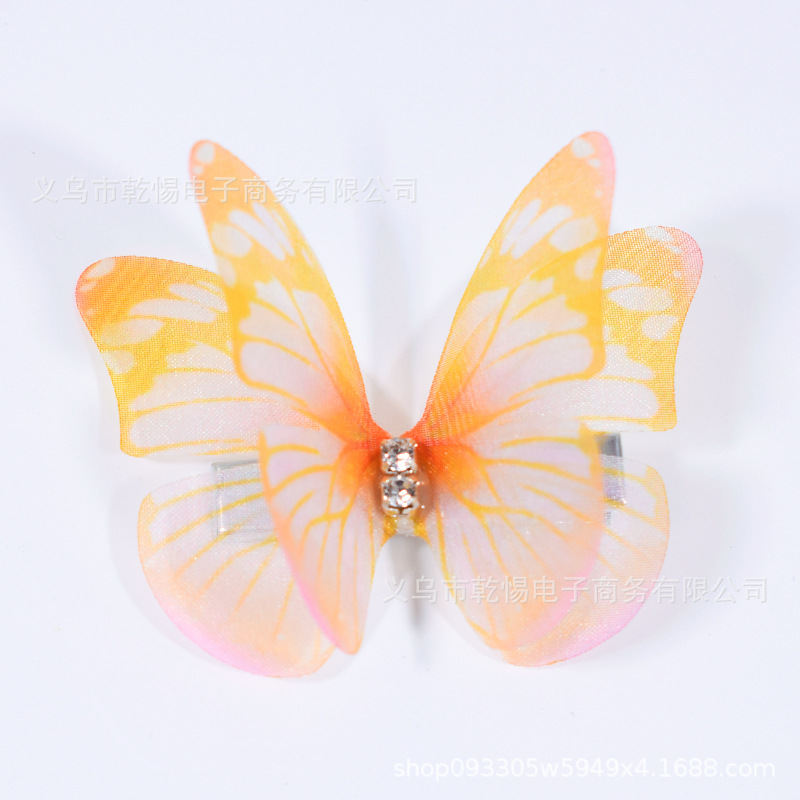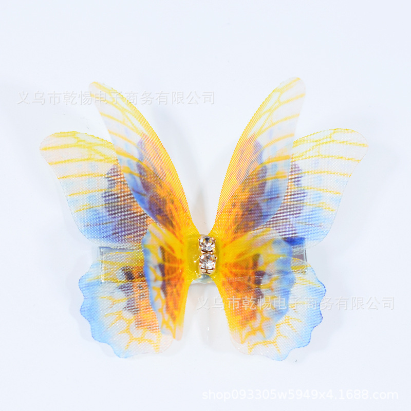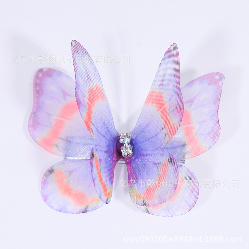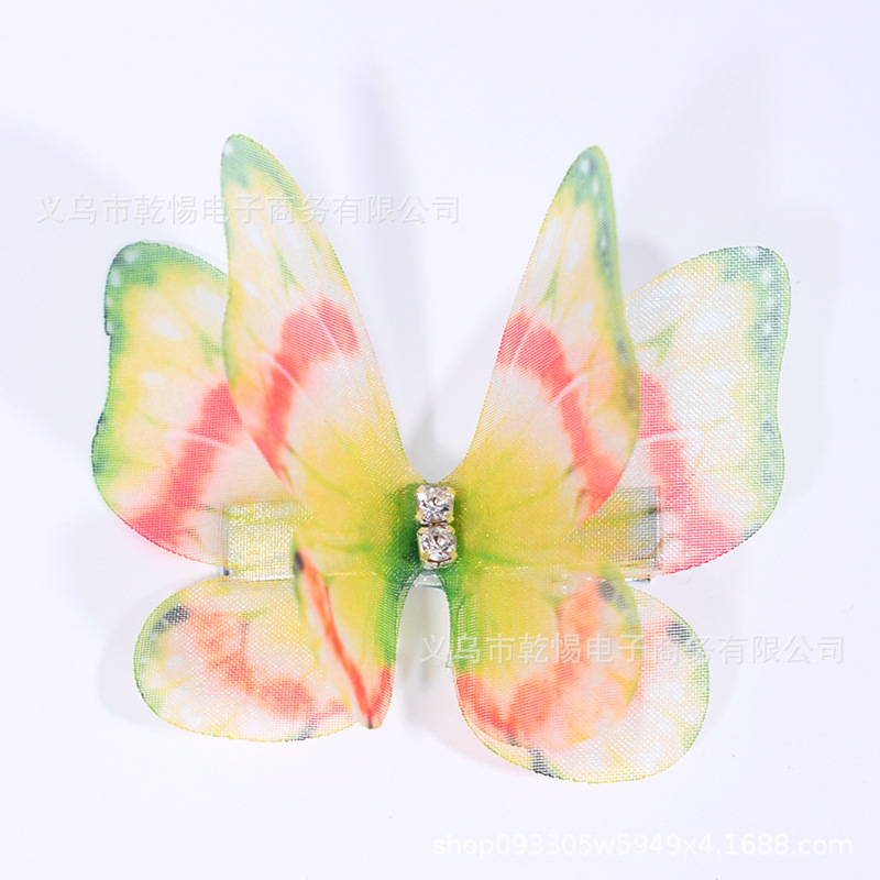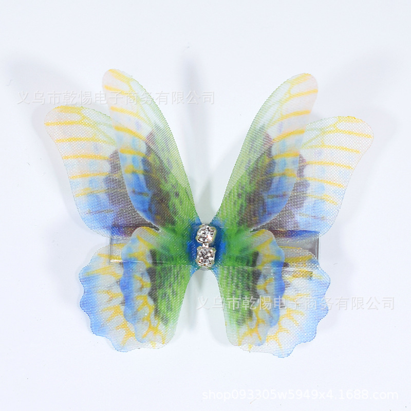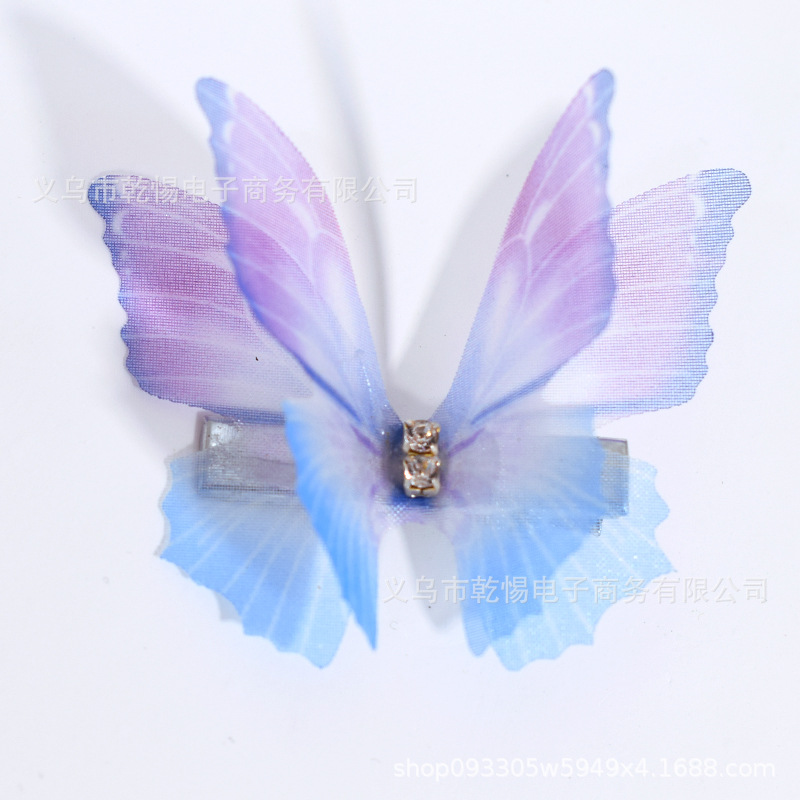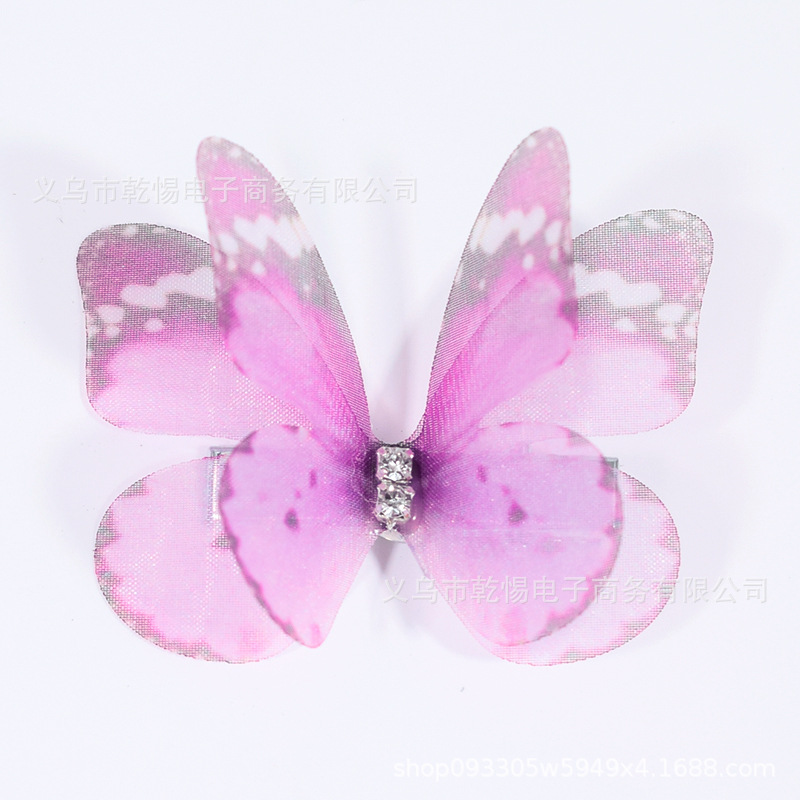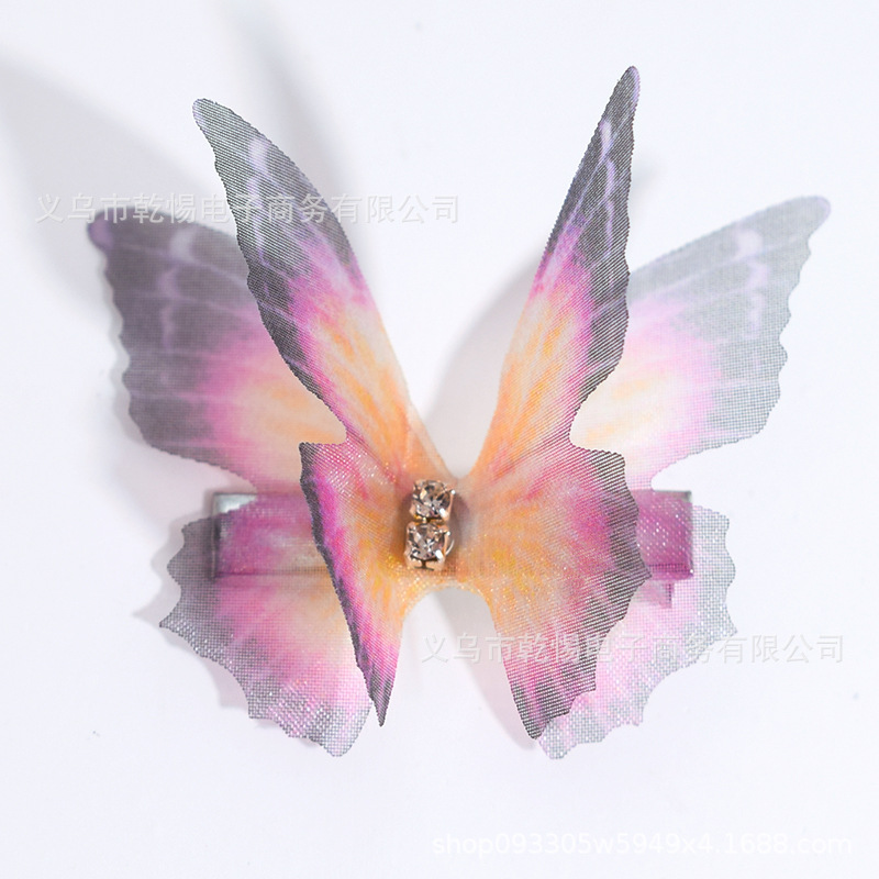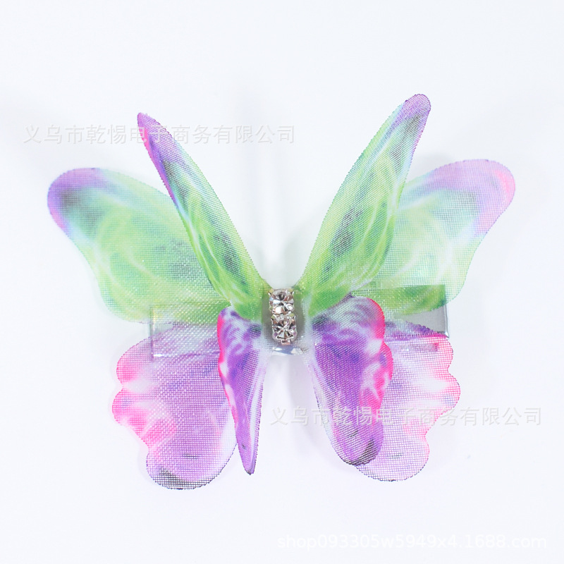 소스 공장 새로운 시뮬레이션 슈퍼 요정 3 차원 얇은 명주 나비 머리핀 어린이 헤어 액세서리 소녀 실크 원사 나비 사이드 클립