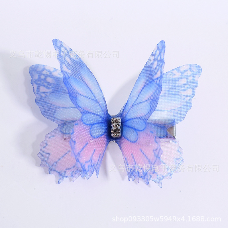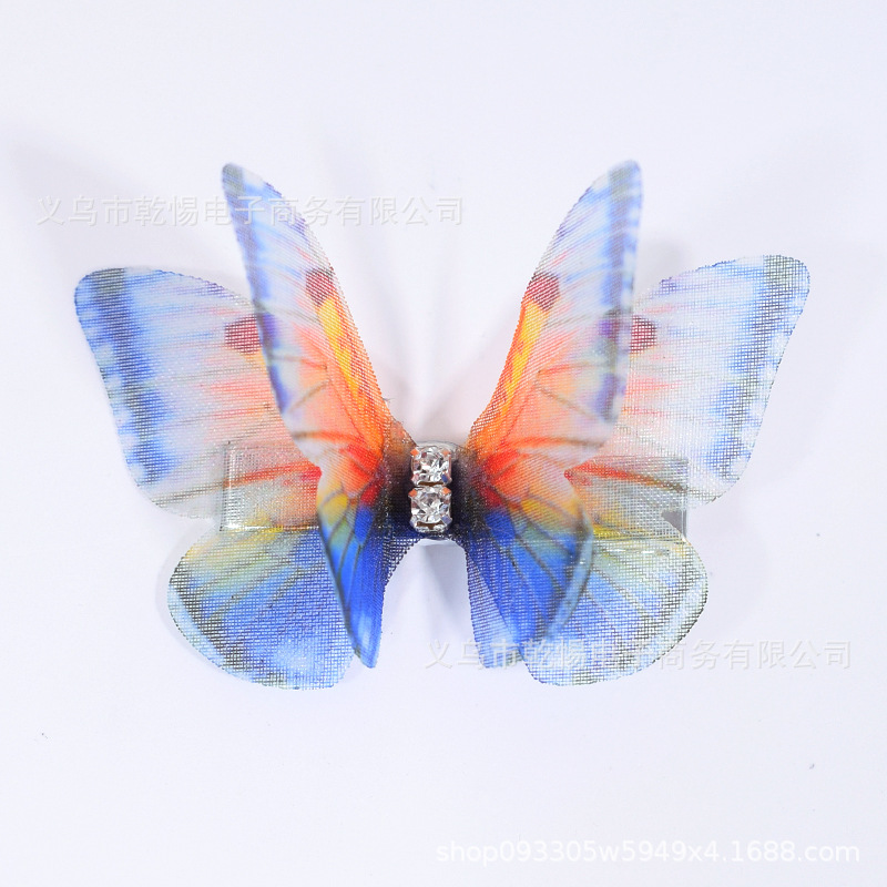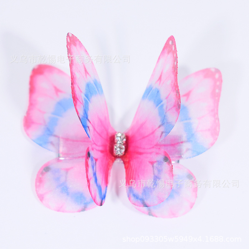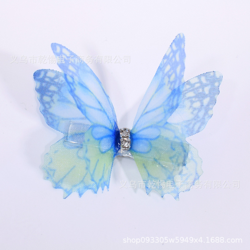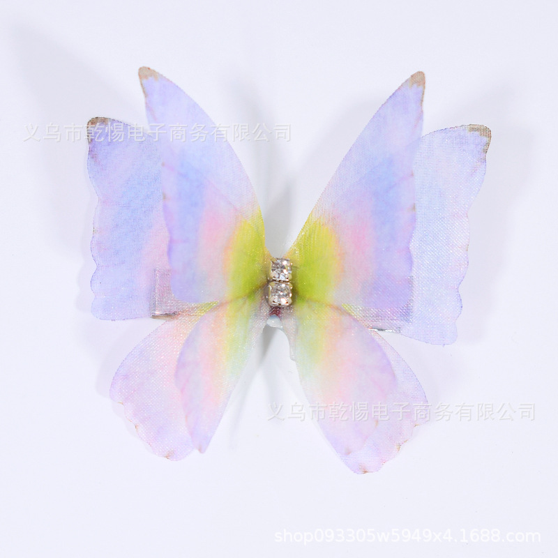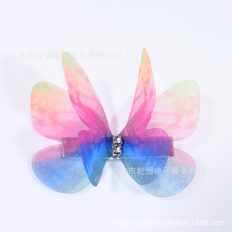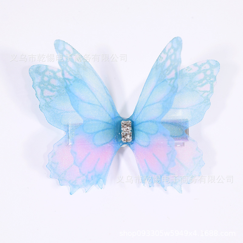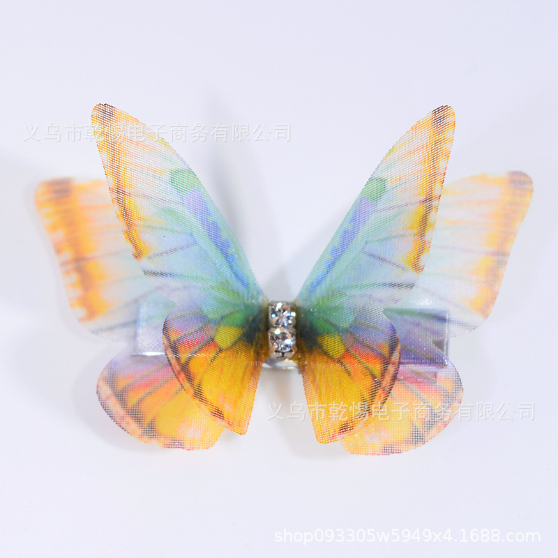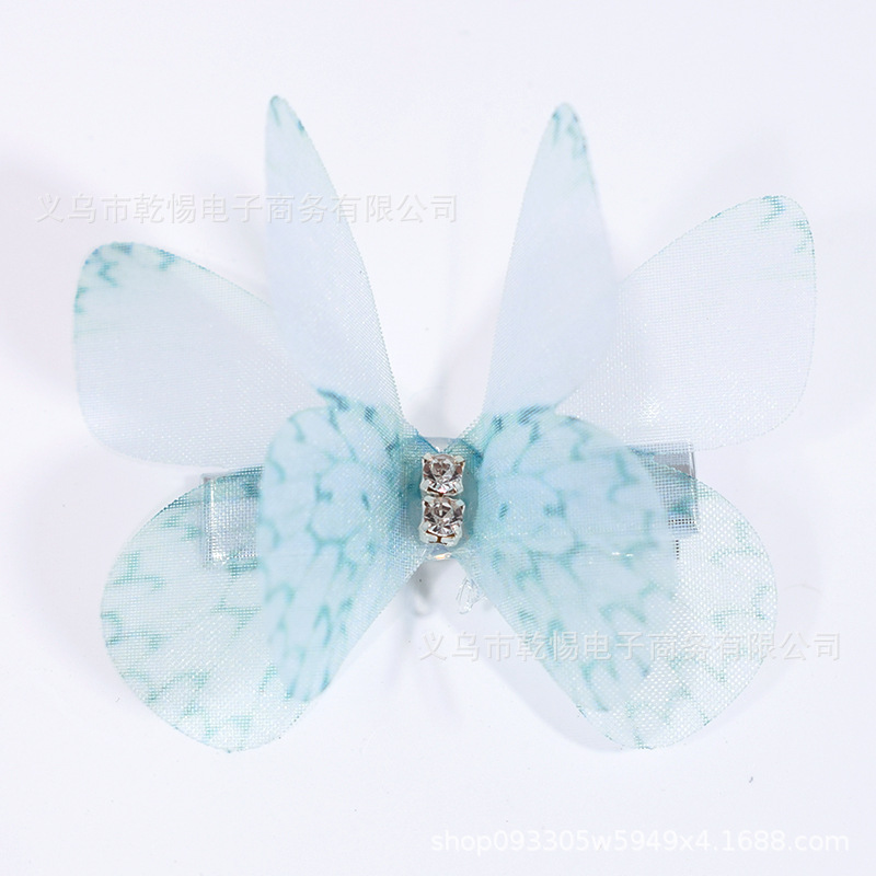 소스 공장 새로운 시뮬레이션 슈퍼 요정 3 차원 얇은 명주 나비 머리핀 어린이 헤어 액세서리 소녀 실크 원사 나비 사이드 클립