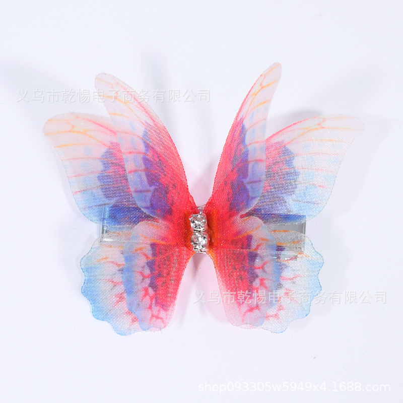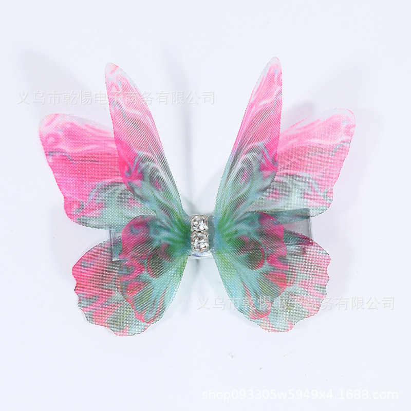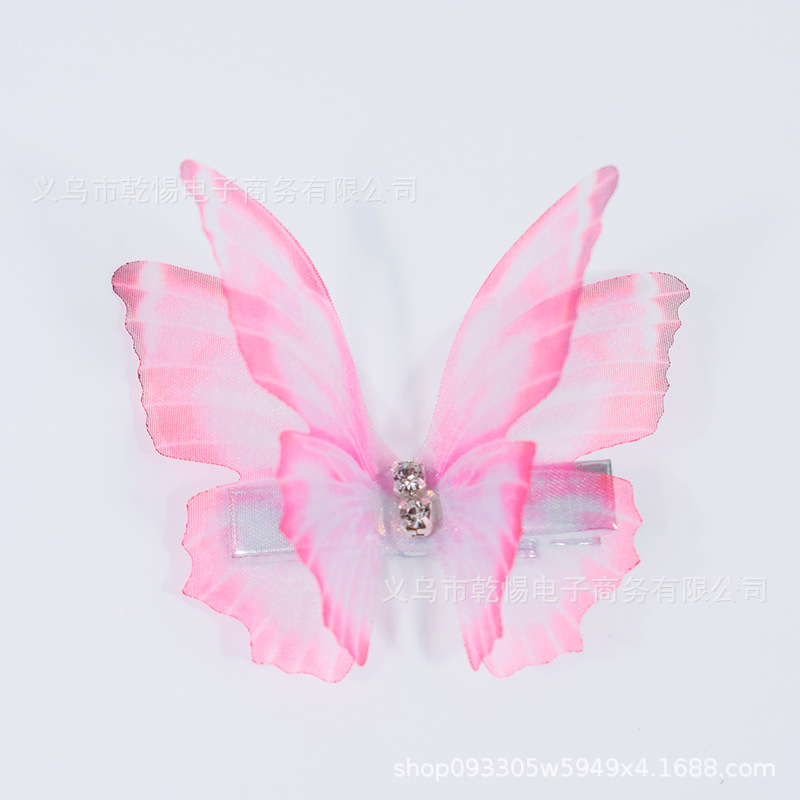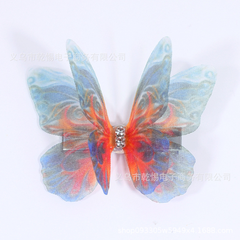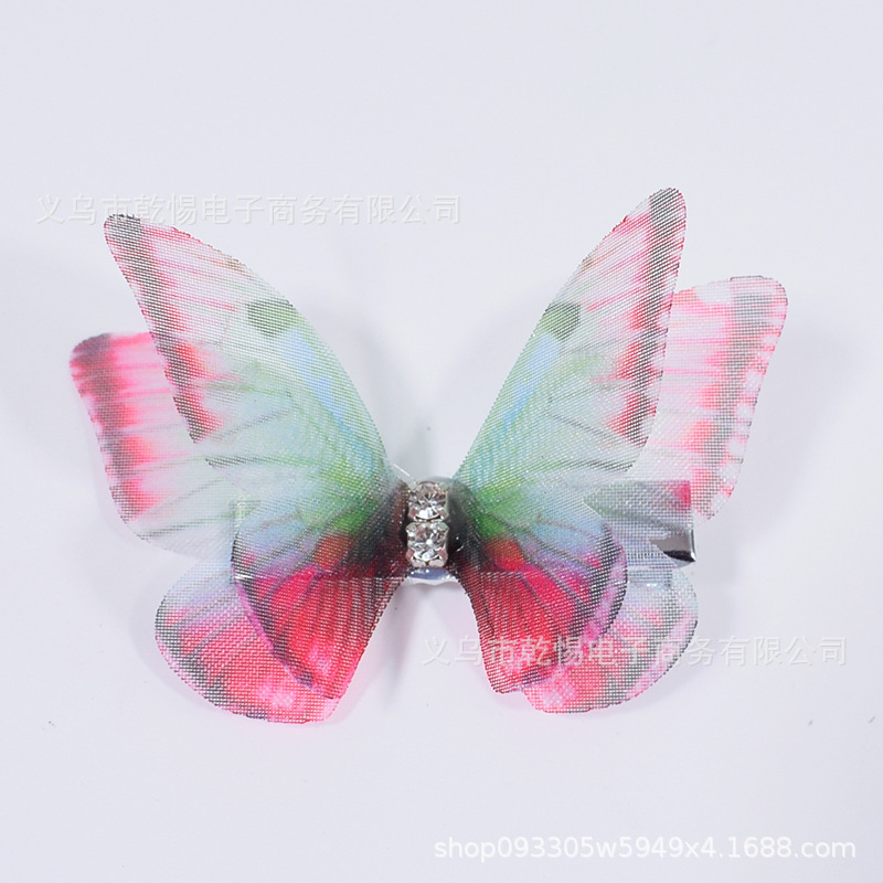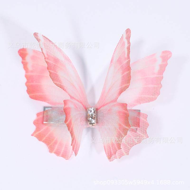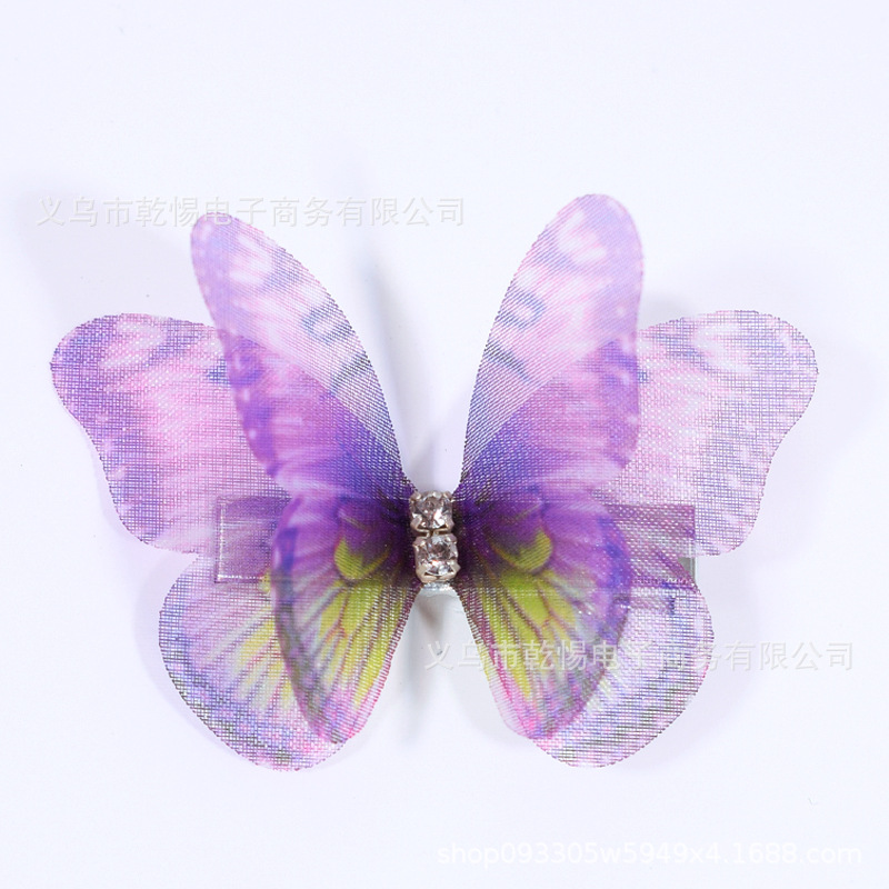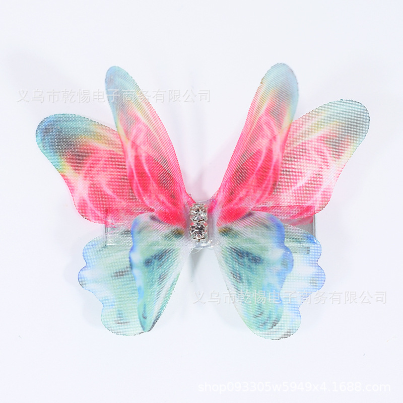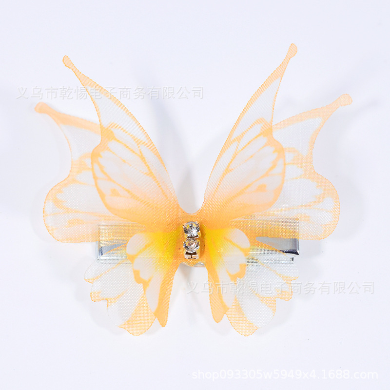 소스 공장 새로운 시뮬레이션 슈퍼 요정 3 차원 얇은 명주 나비 머리핀 어린이 헤어 액세서리 소녀 실크 원사 나비 사이드 클립