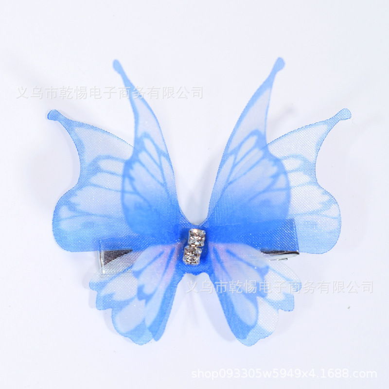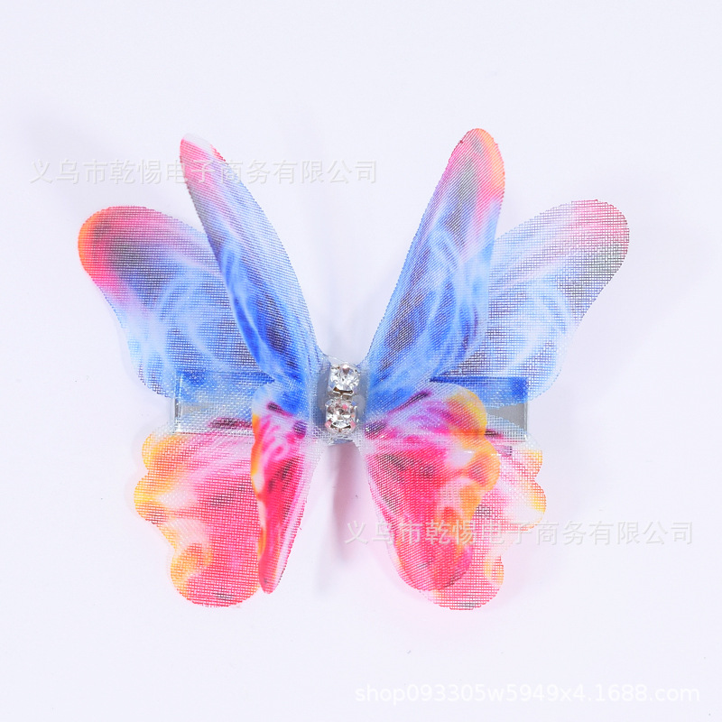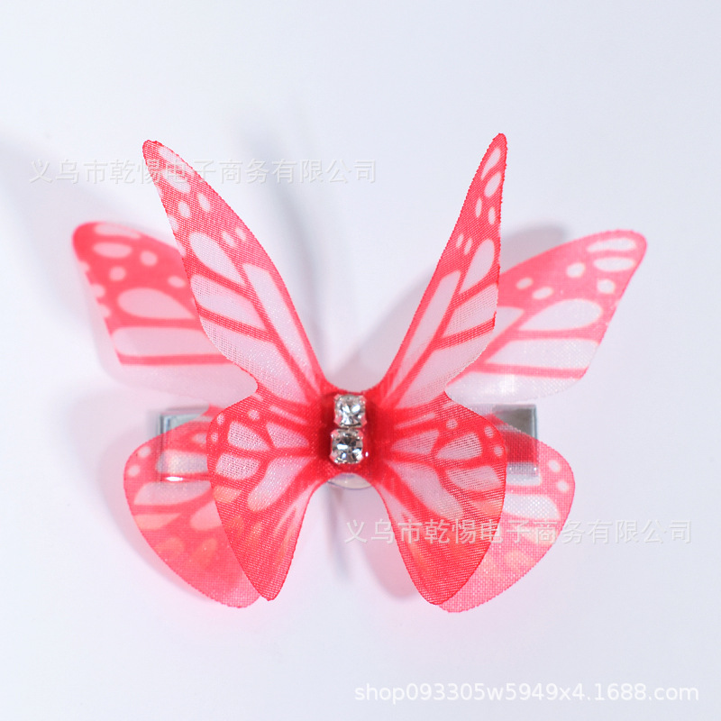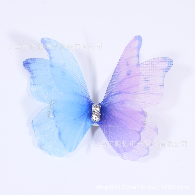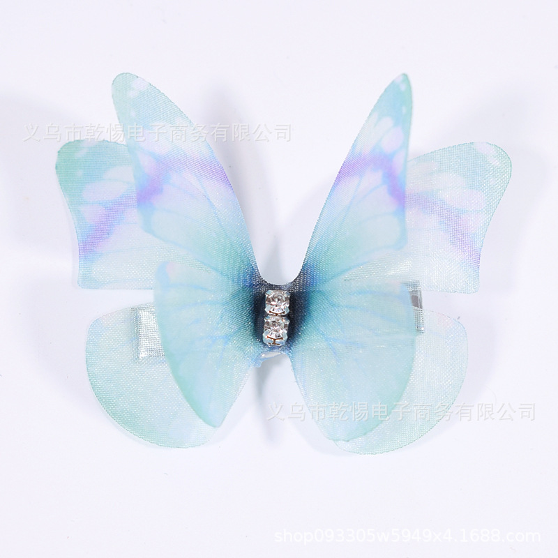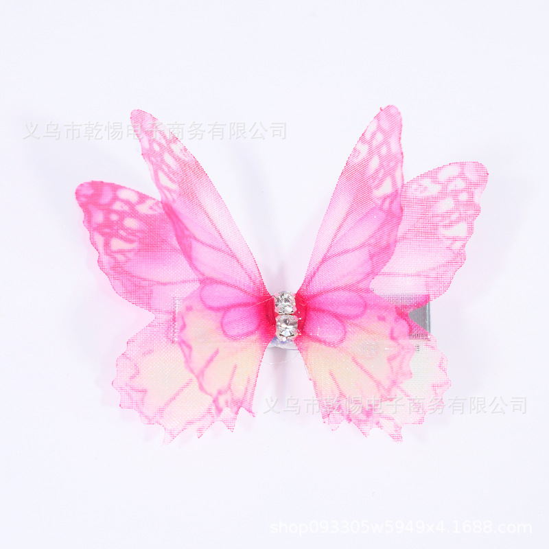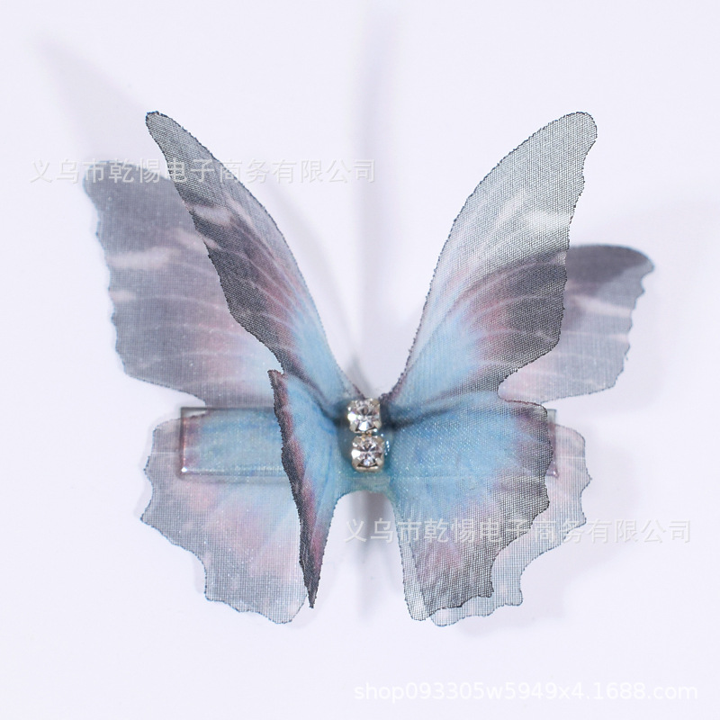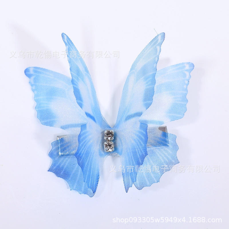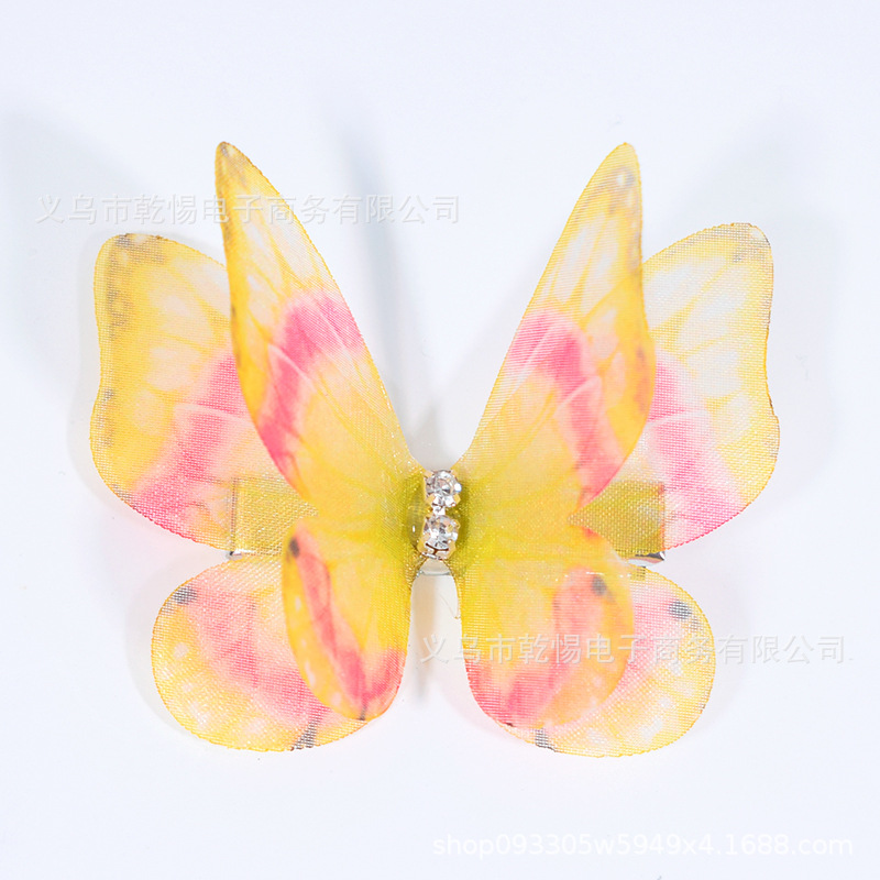 소스 공장 새로운 시뮬레이션 슈퍼 요정 3 차원 얇은 명주 나비 머리핀 어린이 헤어 액세서리 소녀 실크 원사 나비 사이드 클립