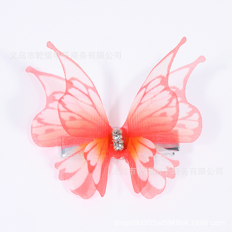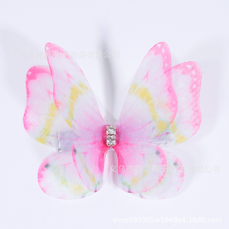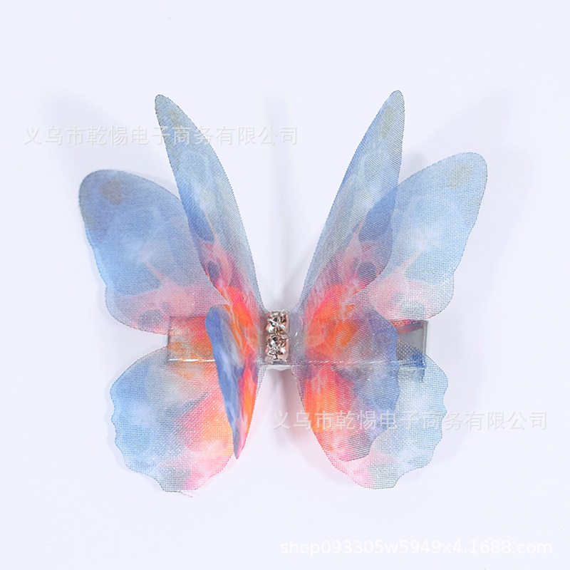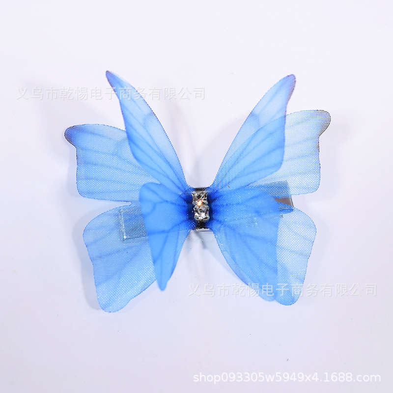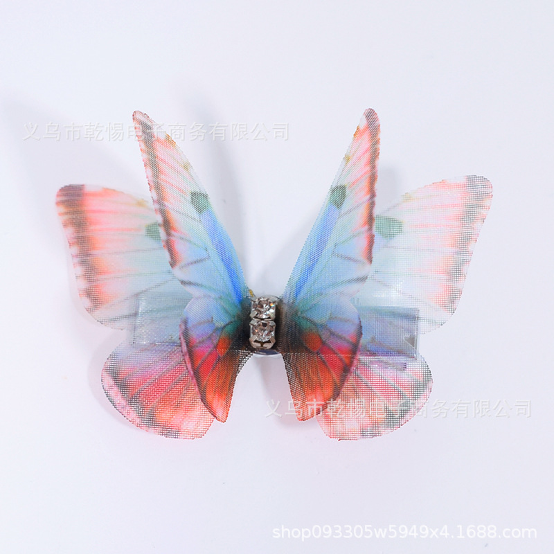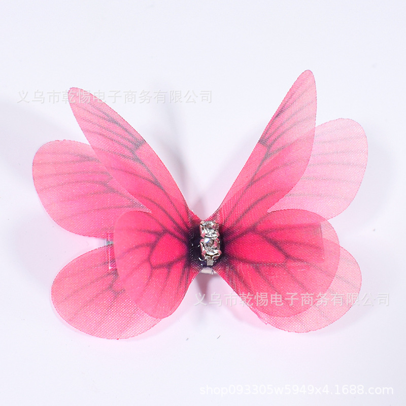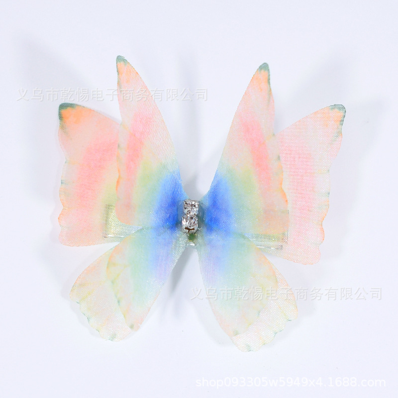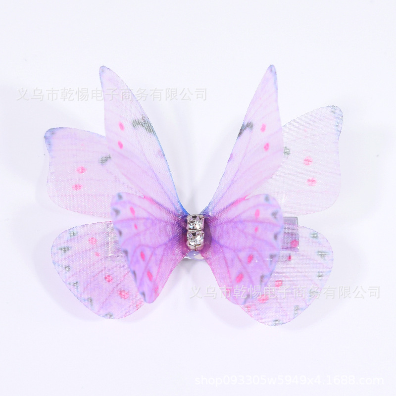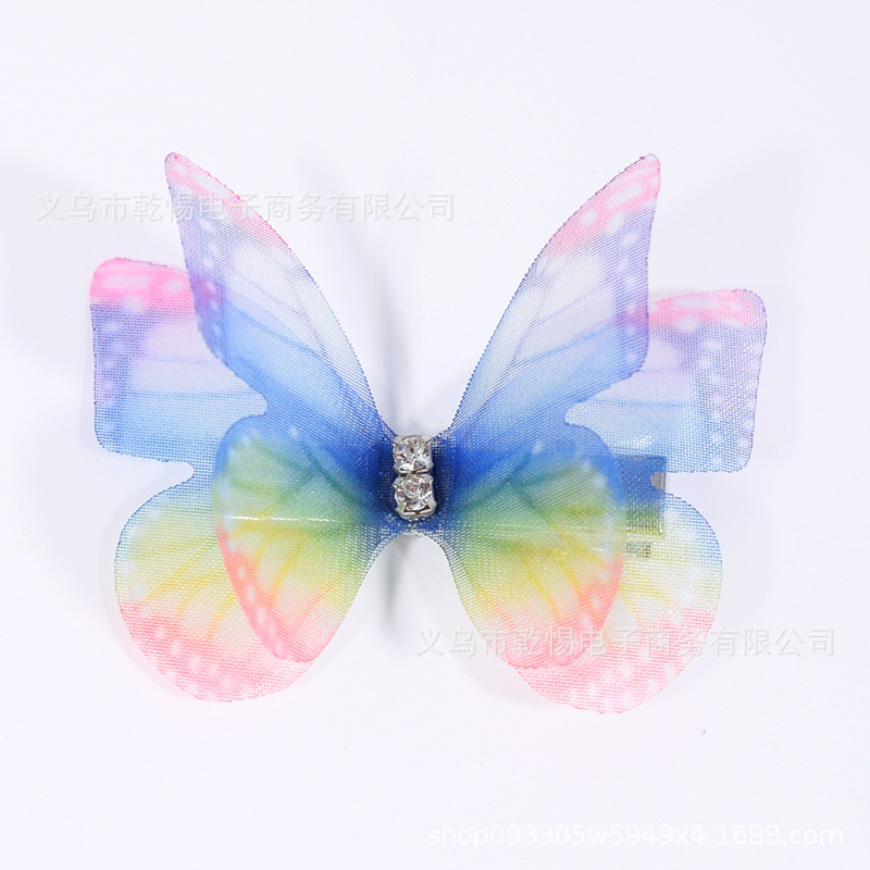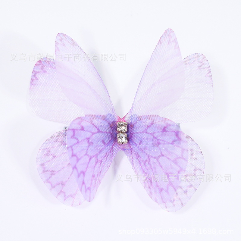 소스 공장 새로운 시뮬레이션 슈퍼 요정 3 차원 얇은 명주 나비 머리핀 어린이 헤어 액세서리 소녀 실크 원사 나비 사이드 클립