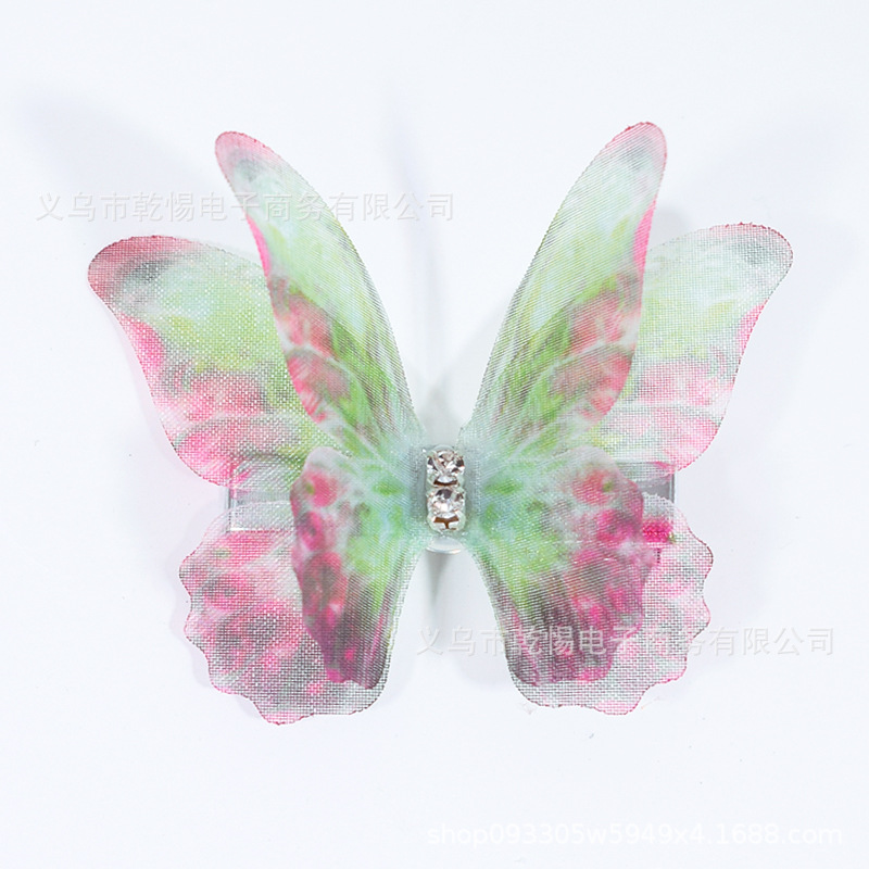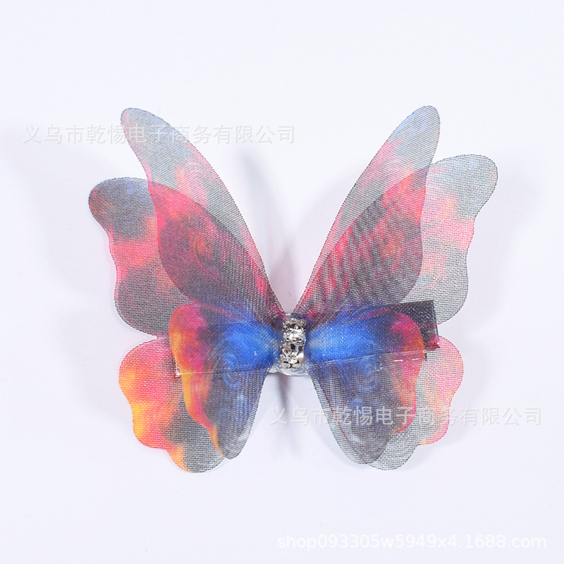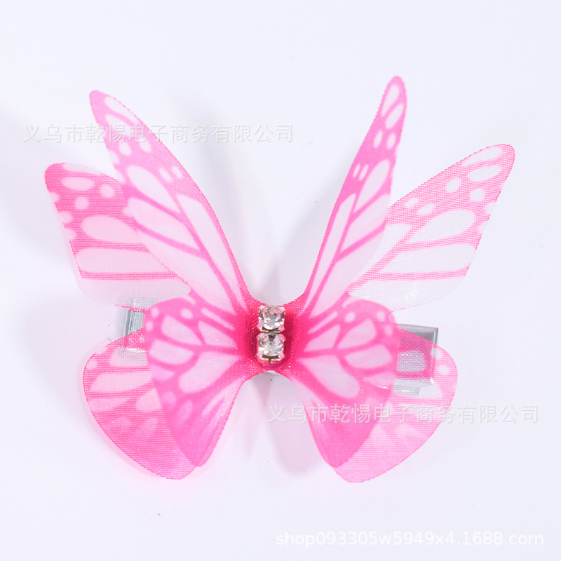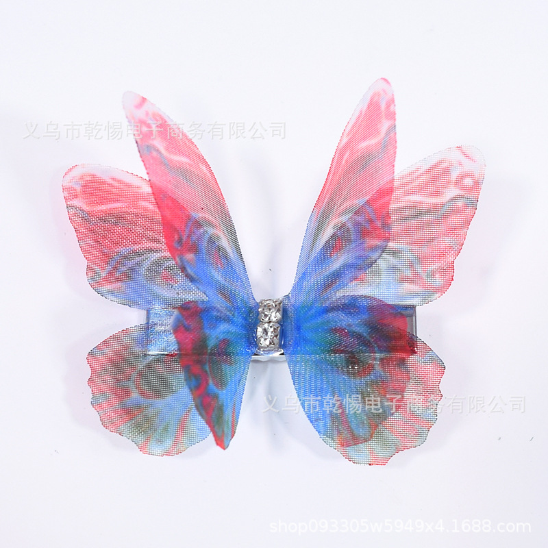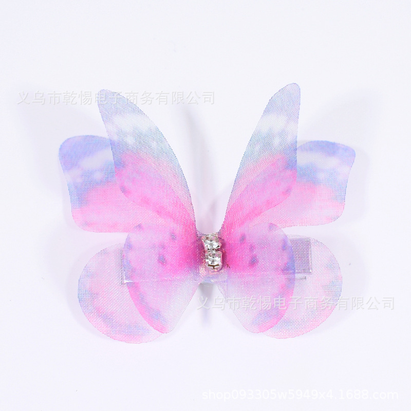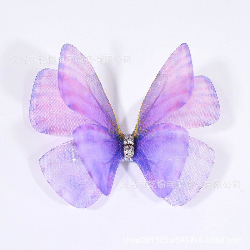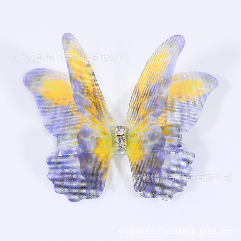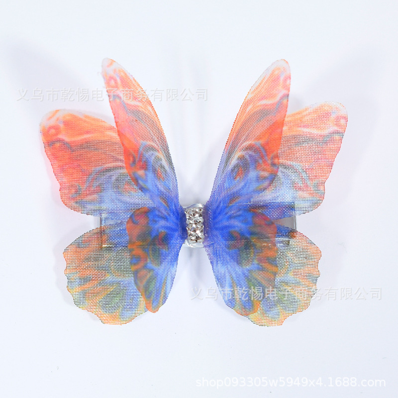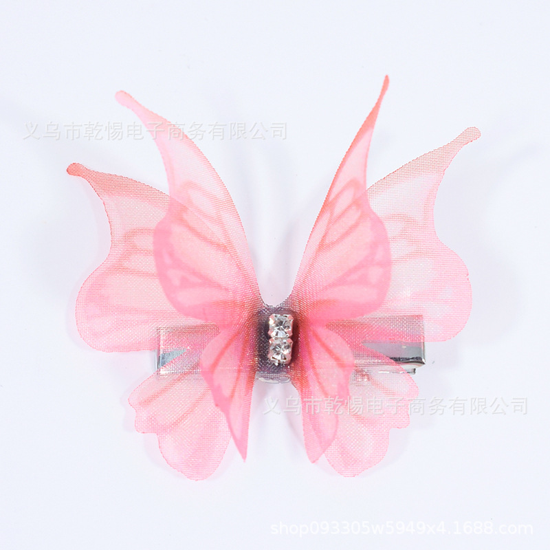 소스 공장 새로운 시뮬레이션 슈퍼 요정 3 차원 얇은 명주 나비 머리핀 어린이 헤어 액세서리 소녀 실크 원사 나비 사이드 클립