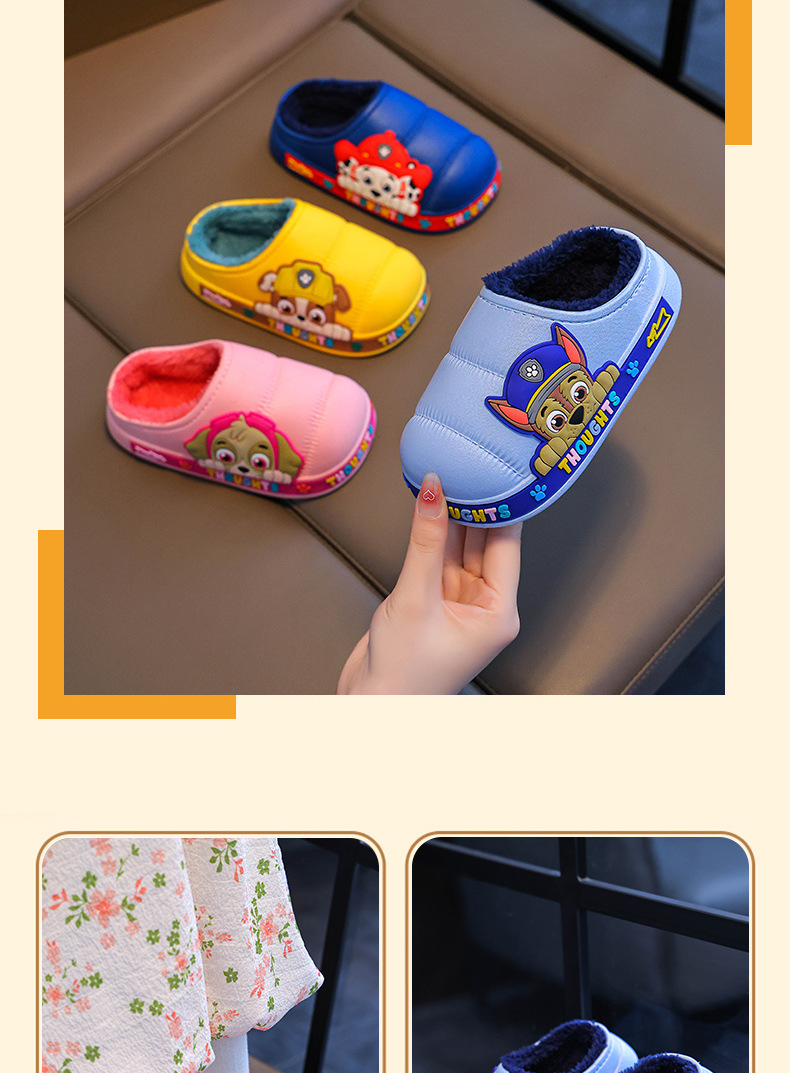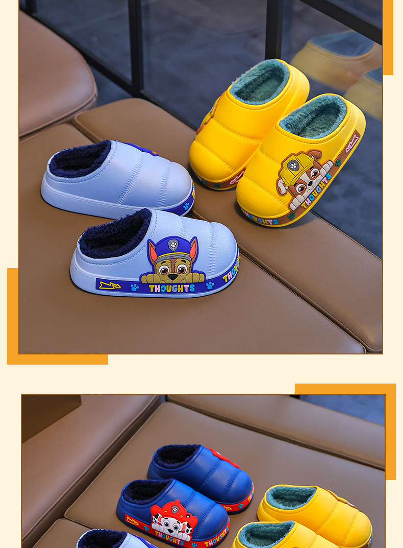 강아지 팀 소년용 슬리퍼 여름 실내용 소년 면 슬리퍼 아기용 외출용 미끄럼 방지 방수 어린이 면 슬리퍼 큰 아이용스토어 가기