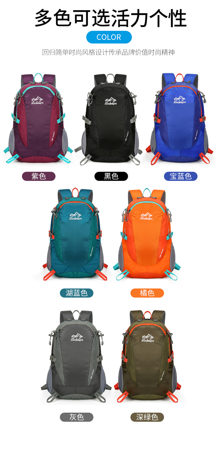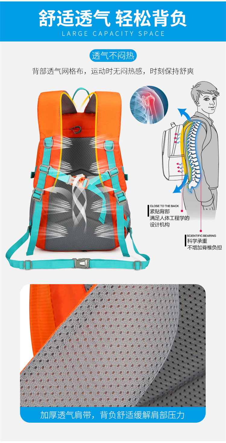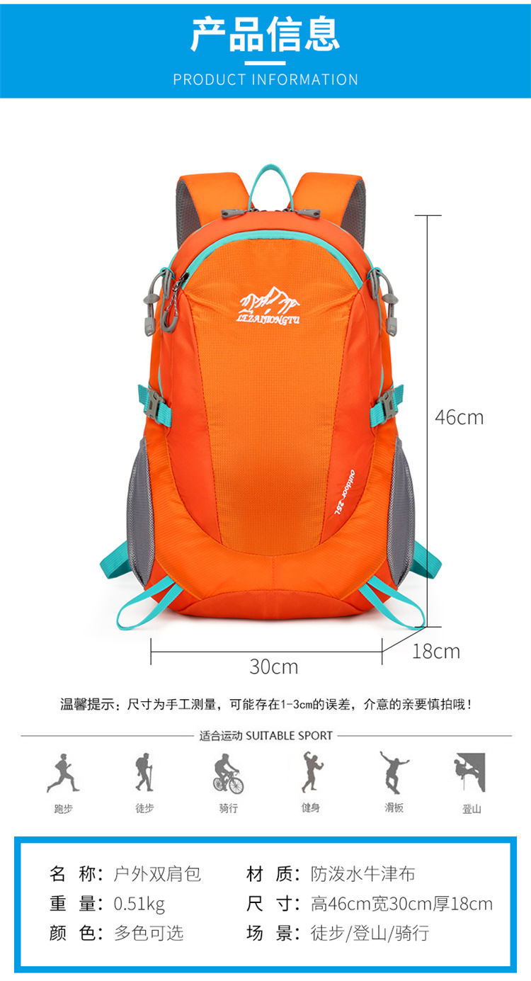 방수 야외 등산 가방 대용량 솔리드 컬러 나일론 배낭 야외 하이킹 착용 방지 부담 등산 가방