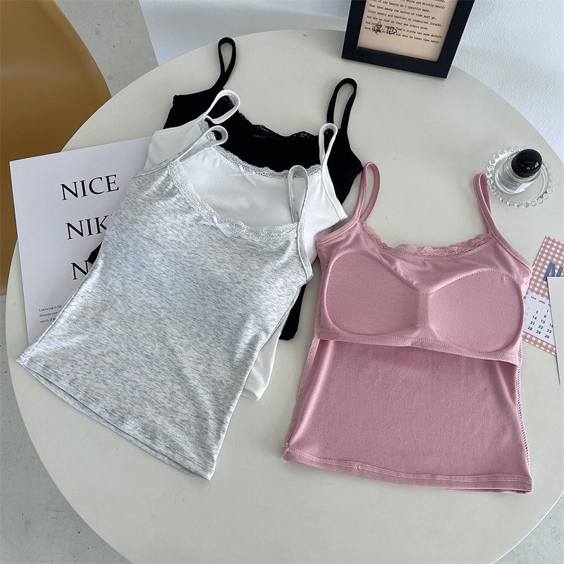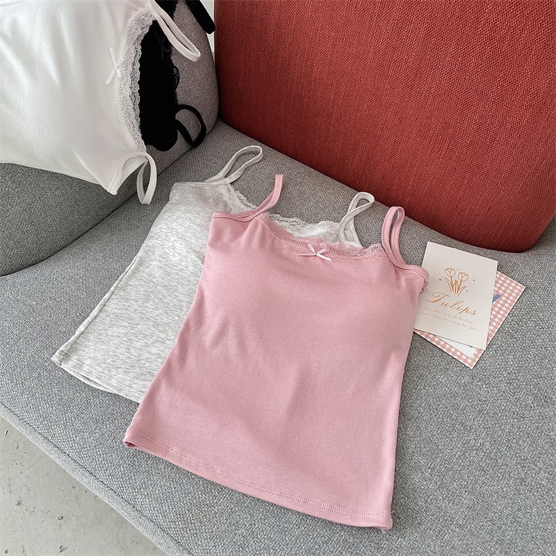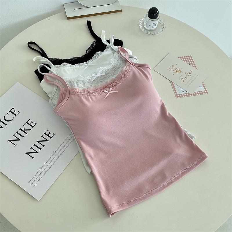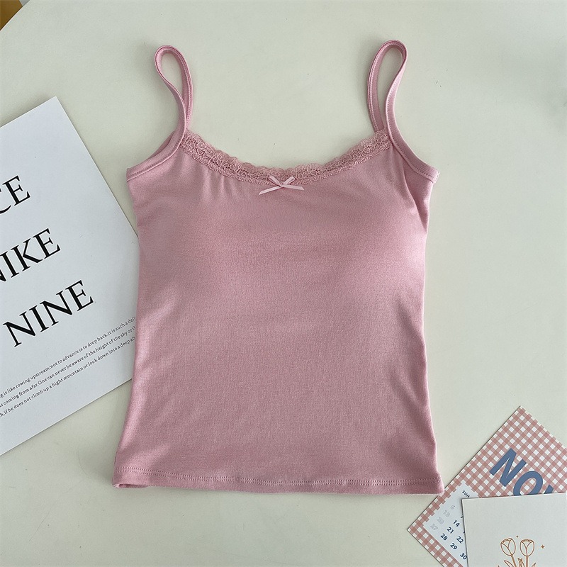 순수한 욕망 스타일 슬림 핏 슬링 레이스 벨트 가슴 패드 활 달콤한 스파이스 소녀 편안한 여성을위한 간단한 올 매치베이스 조끼스토어 가기
