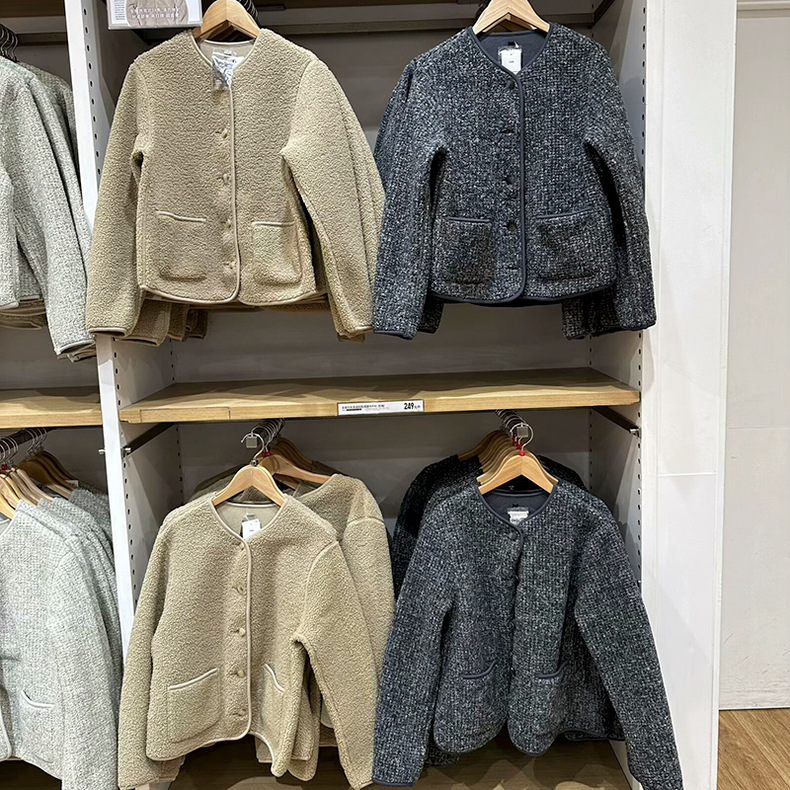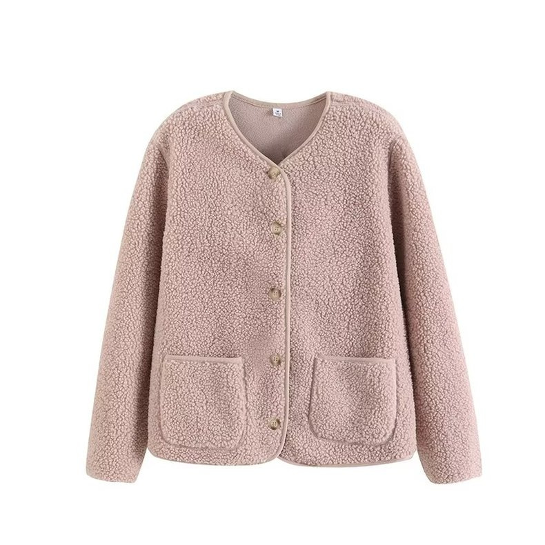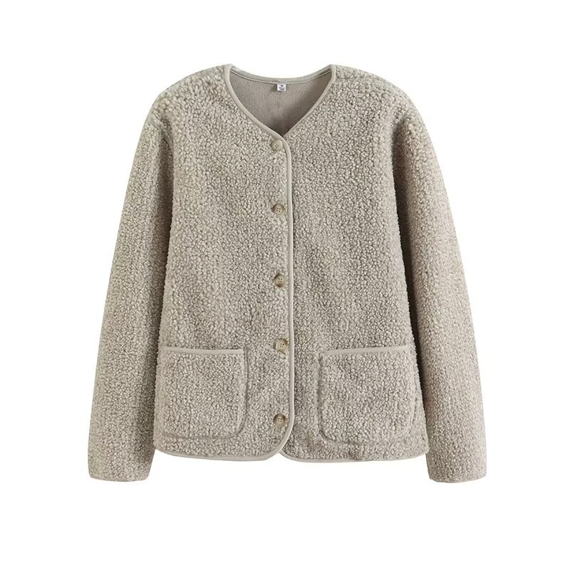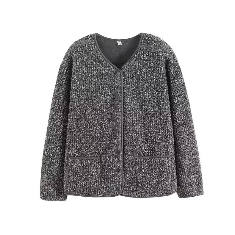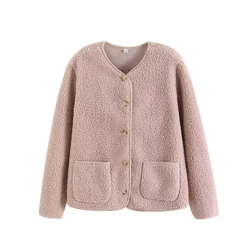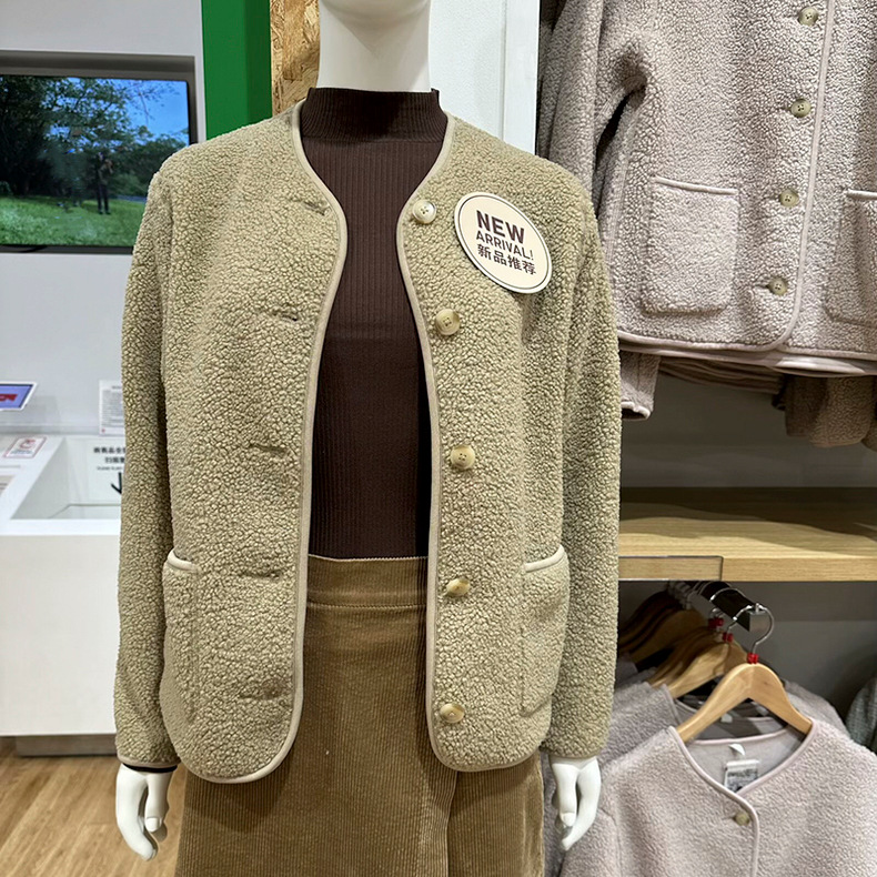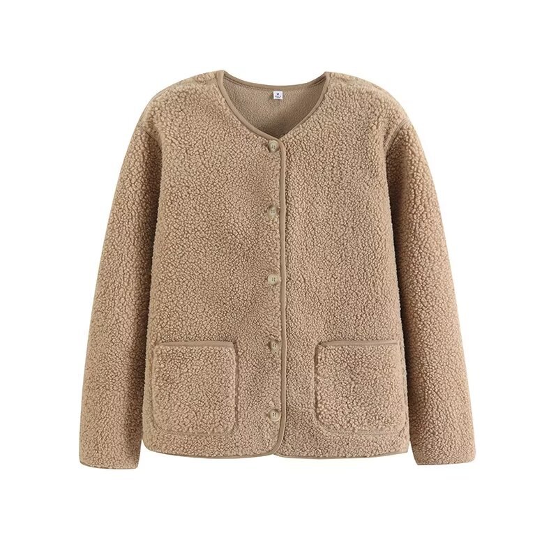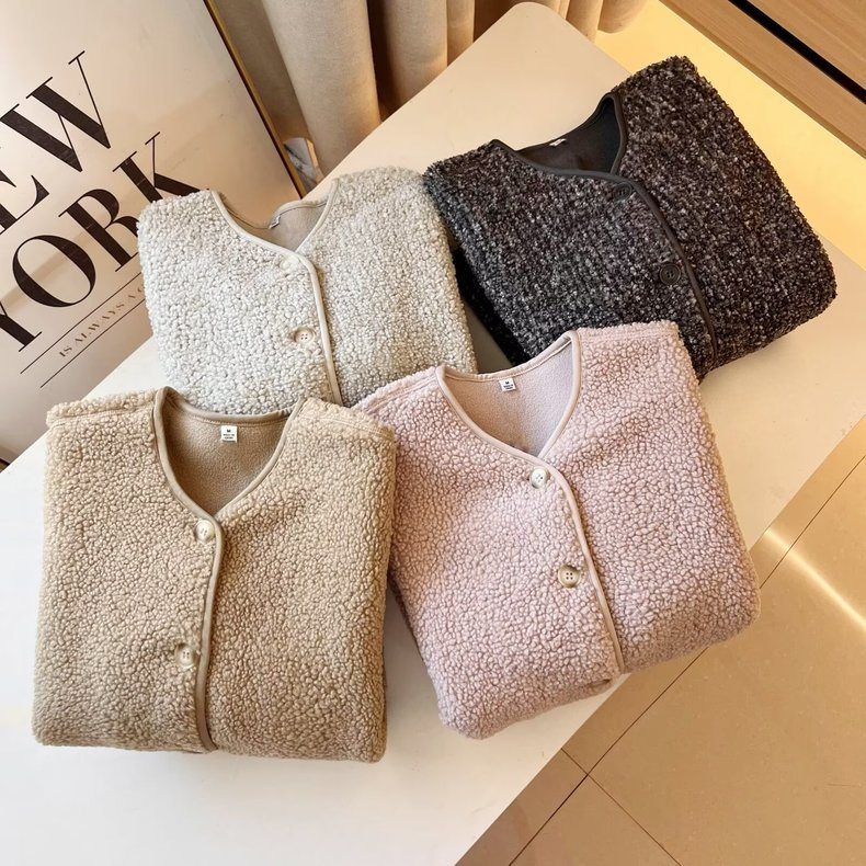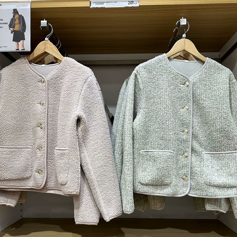 상의류 여성 모조 양고기 양털 양털 크루 넥 카디건 재킷 가을과 겨울 새로운 샤넬 스타일 재킷 472938