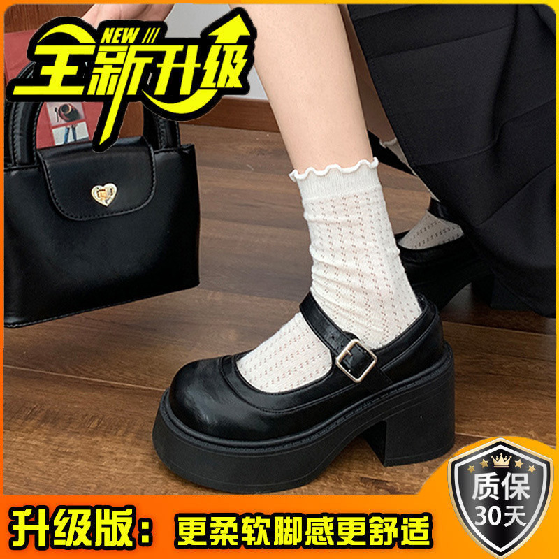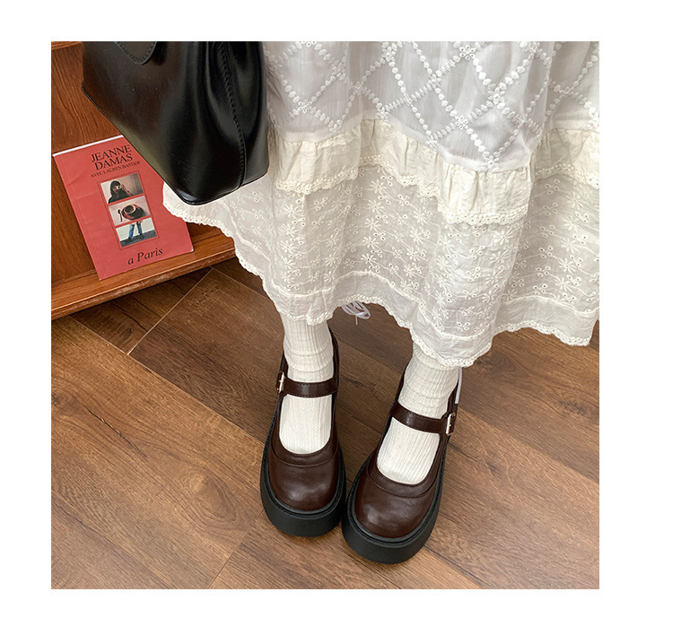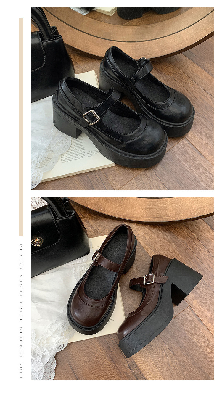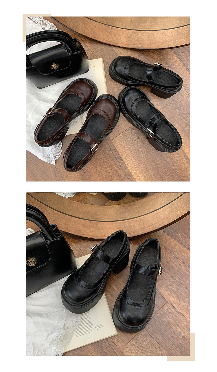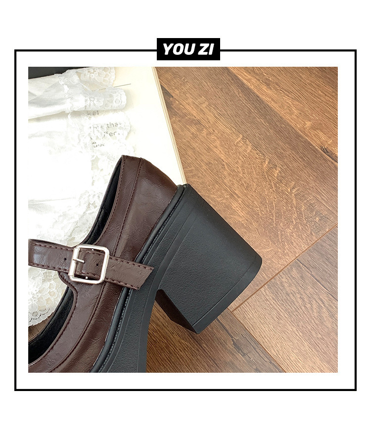빈티지 올매치 얕은 입 메리 제인 신발 여성 2024 년 새 봄 프렌치 라운드 발가락 두꺼운 힐로 두꺼운 싱글 신발 증가스토어 가기