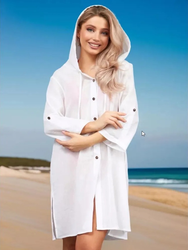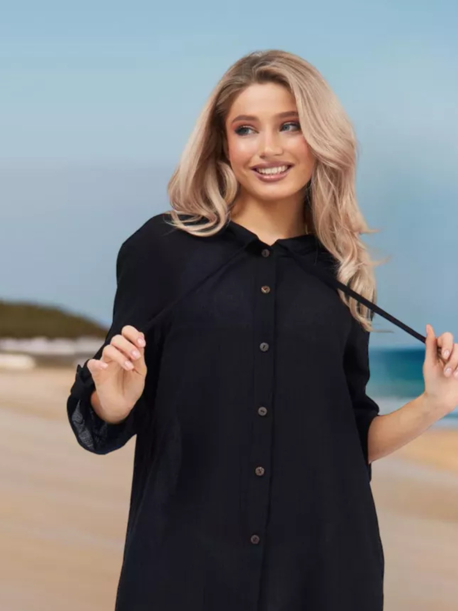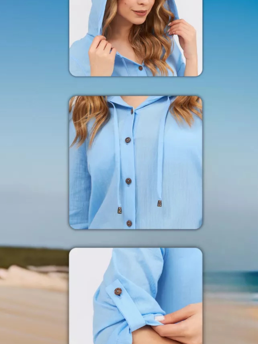 2025년 유럽 및 미국 여성용 코튼 주름 캐주얼 반팔 후드 셔츠, 패셔너블한 버튼 카디건, 비치 아우터스토어 가기