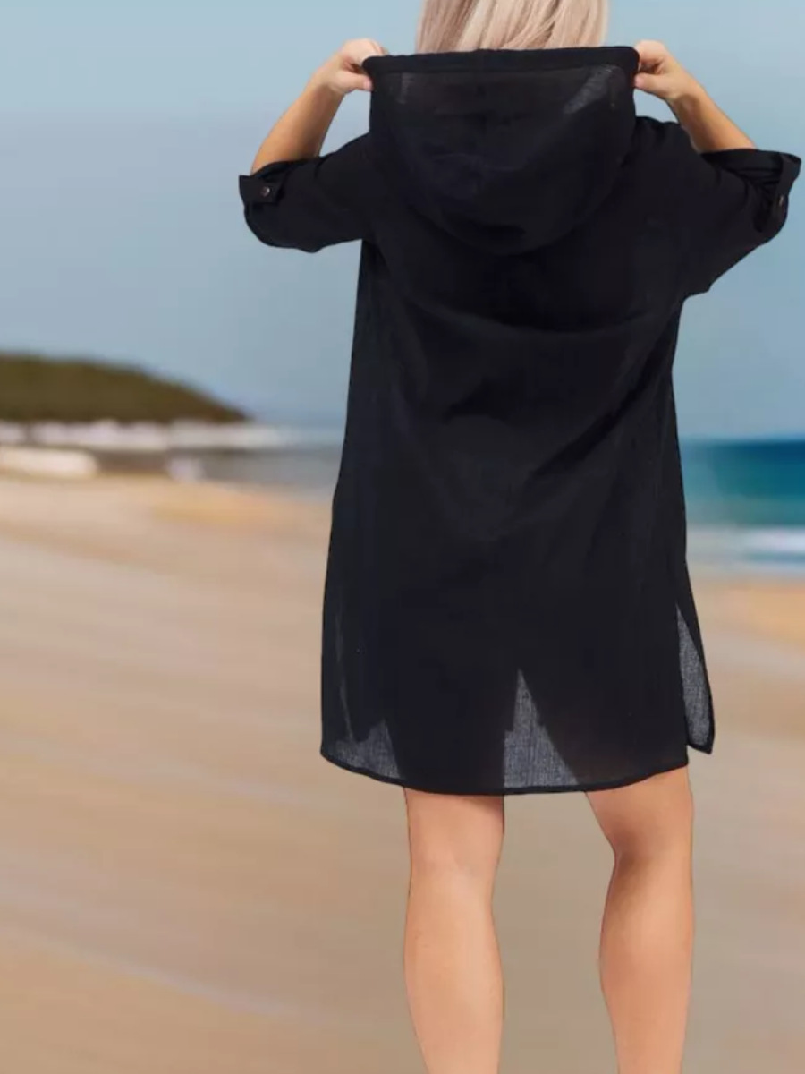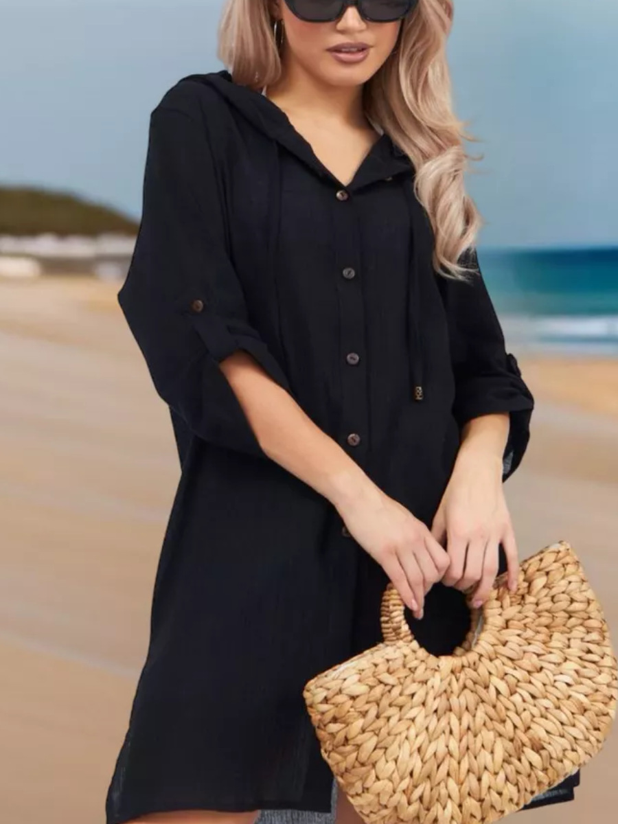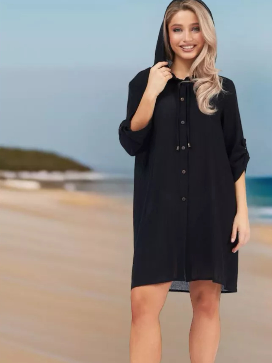 2025년 유럽 및 미국 여성용 코튼 주름 캐주얼 반팔 후드 셔츠, 패셔너블한 버튼 카디건, 비치 아우터
