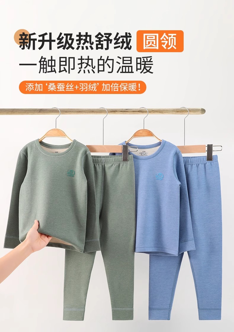 어린이용 가을 겨울 두꺼운 보온 내의 세트 남아용 중대형 어린이용 다운 실크 베이스웨어