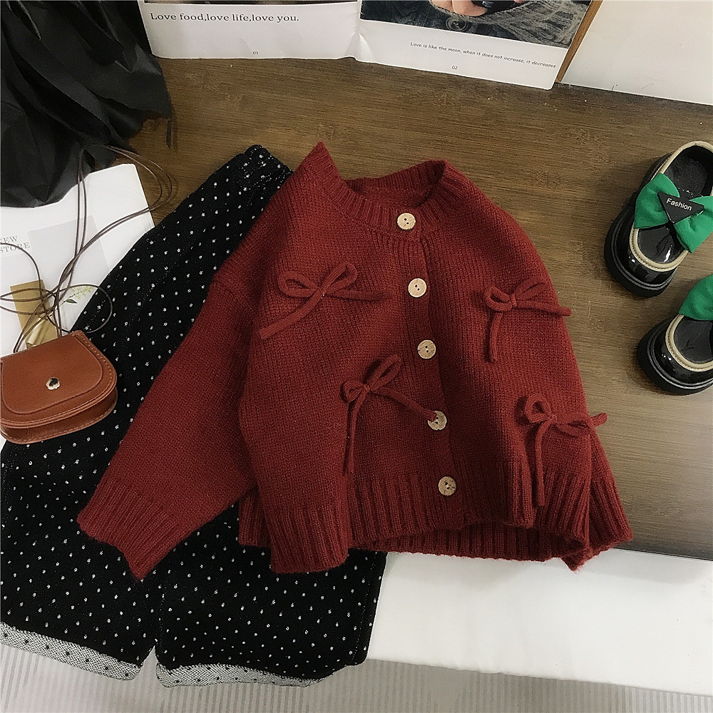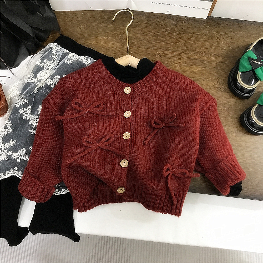 여자 스웨터 어린이 니트 스웨터 가을 새로운 아기 빨간 카디건 여자 서양식 따뜻한 옷 두꺼운 대외 무역스토어 가기