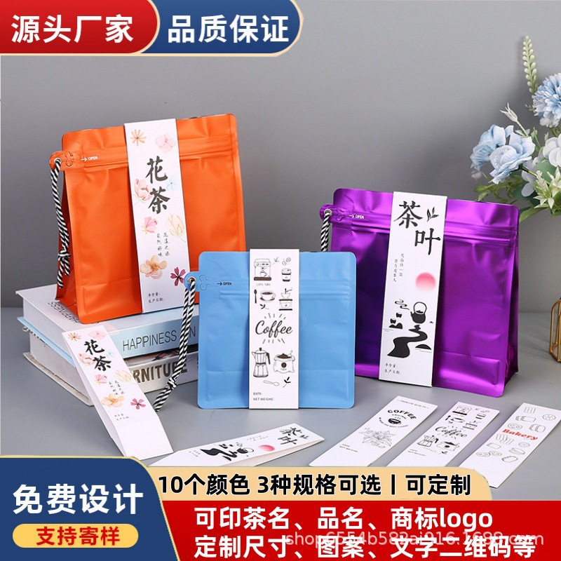 차 포장 백, 맞춤형 커피 콩 공기 밸브 백, 밀봉 포장 백, 끈 알루미늄 호일 8면 밀봉 스탠드 업 백 보관스토어 가기