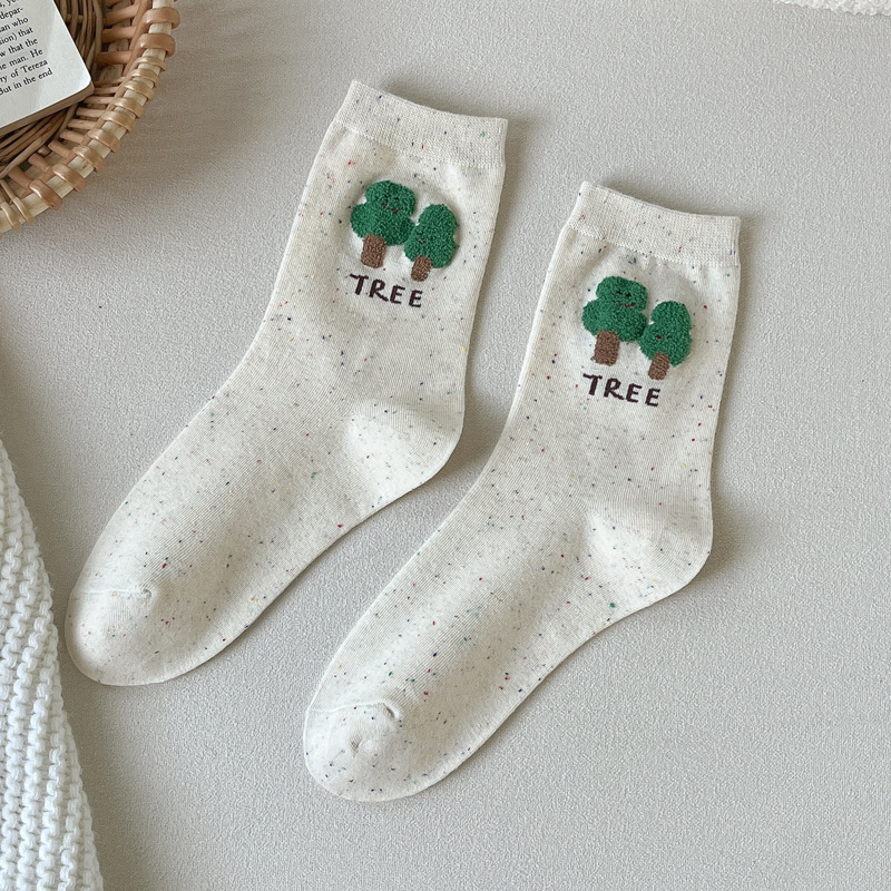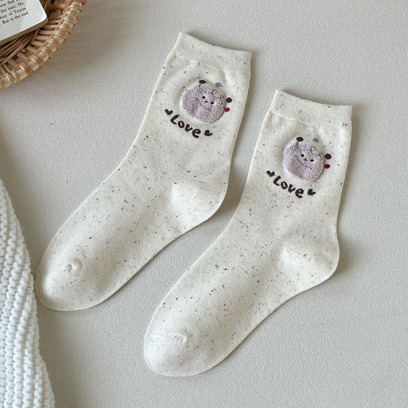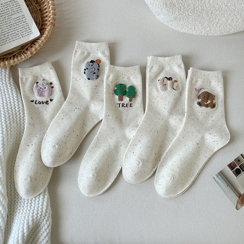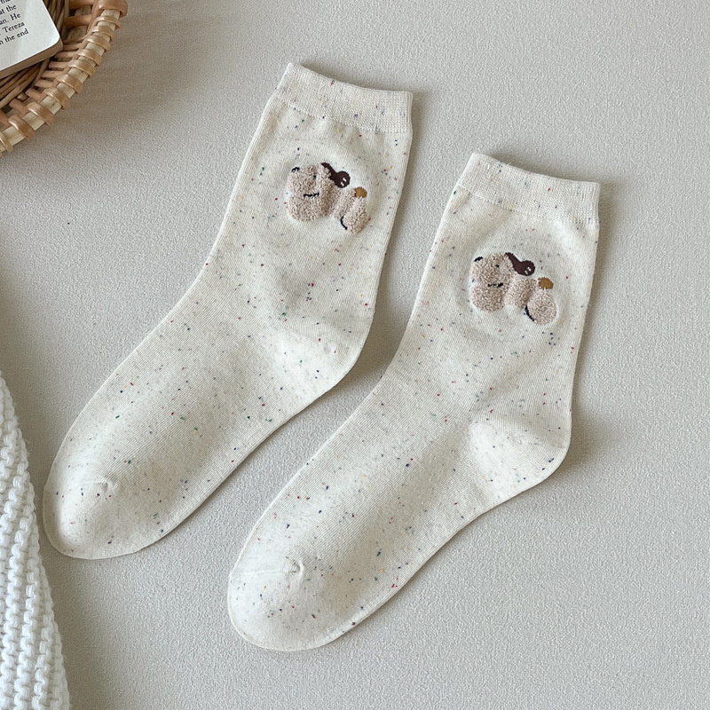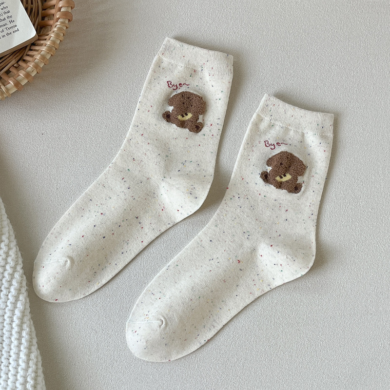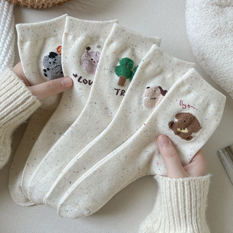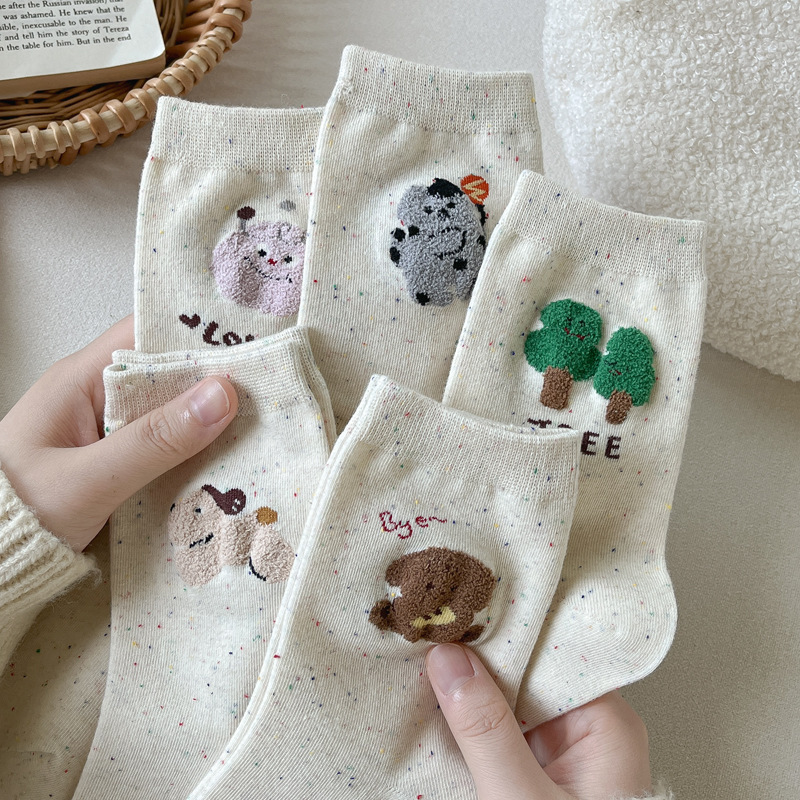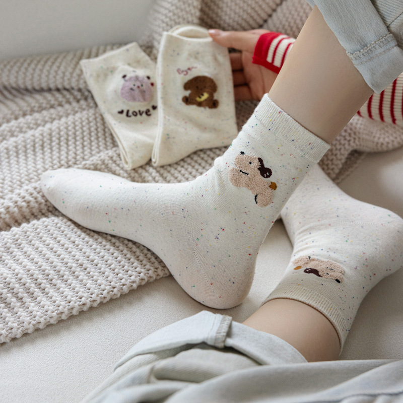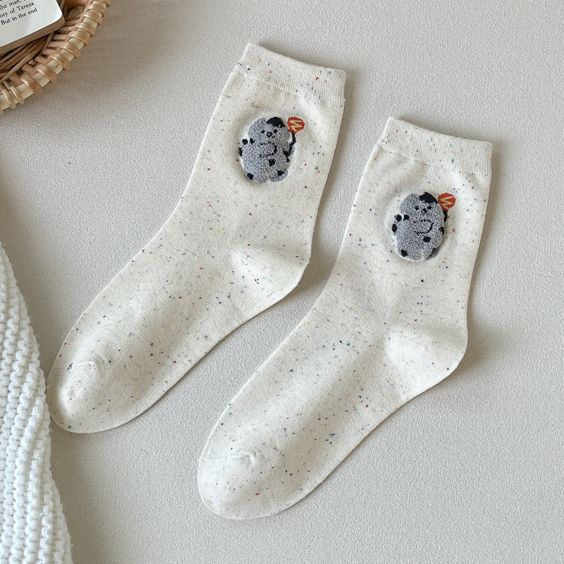 포인트 원사 가을 Ins 알파벳 개 귀여운 양말 소녀 만화 중간 튜브 양말 도파민 조밀 양말