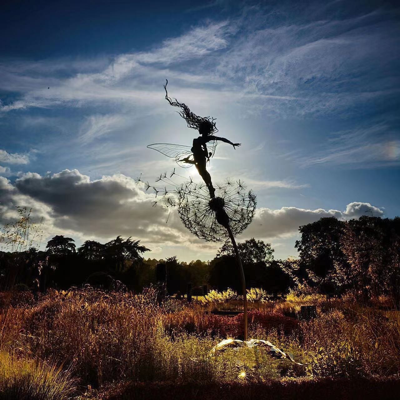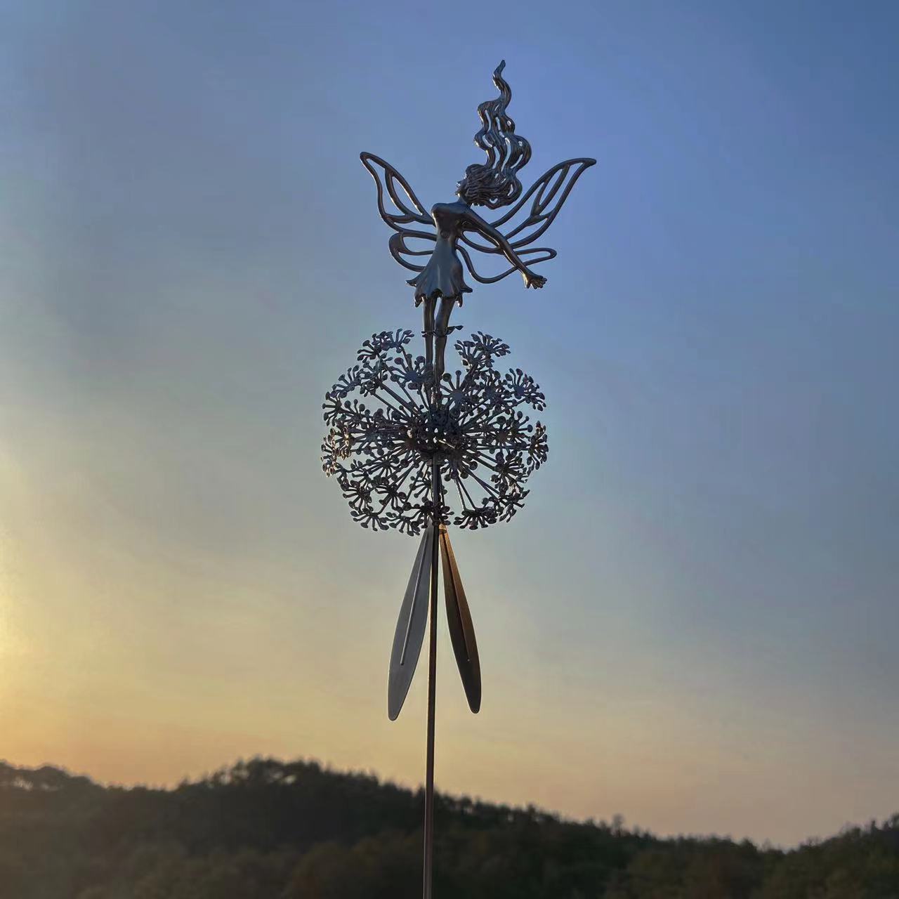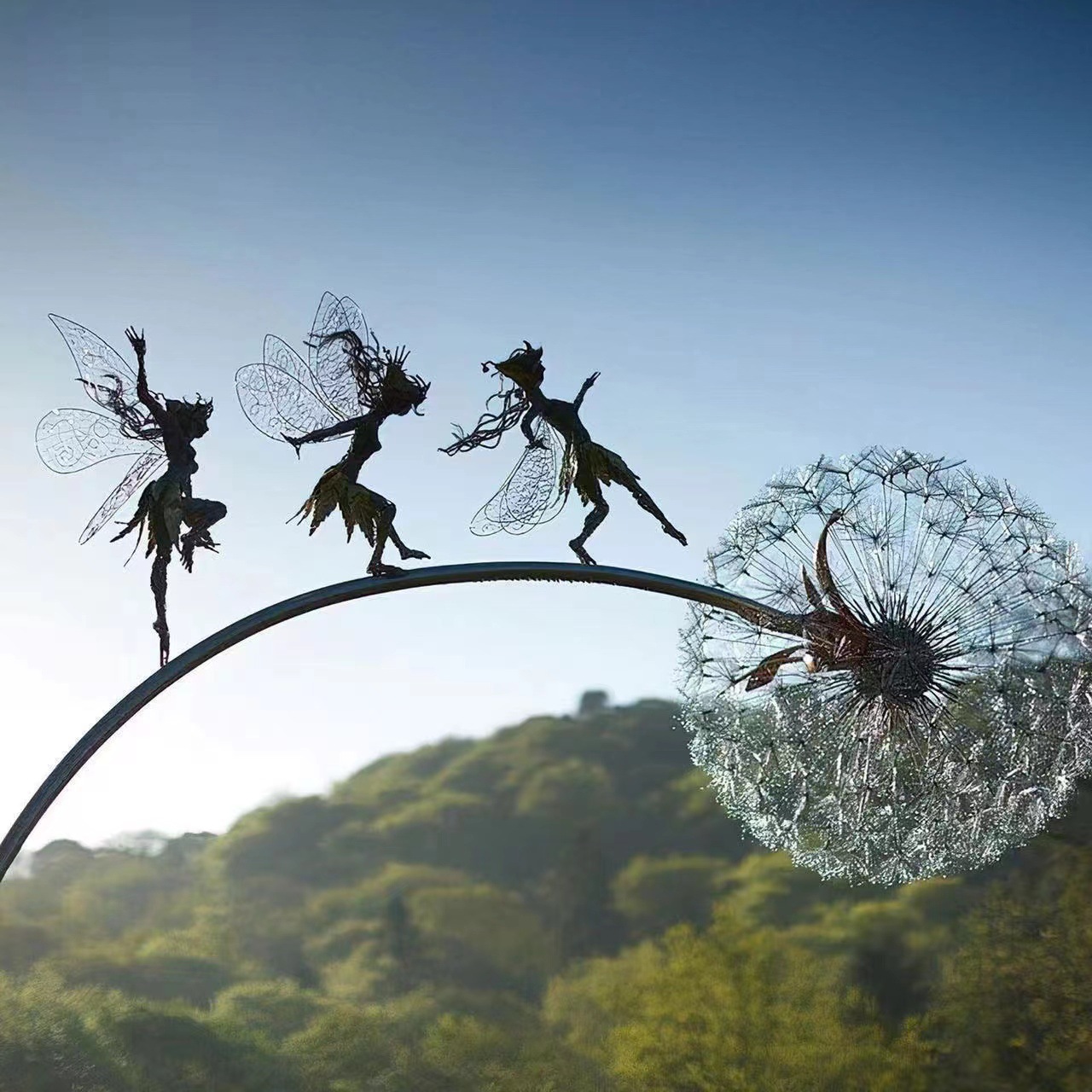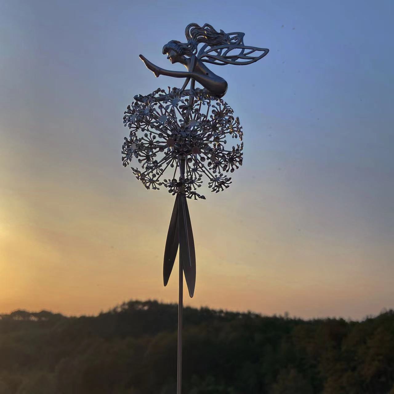 금속 공예 국경 독립 역 민들레 춤과 꽃 요정 로빈 화이트 실크 조각 정원 장식