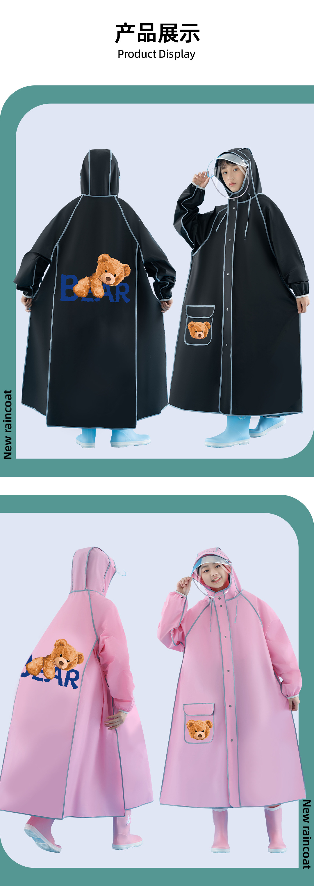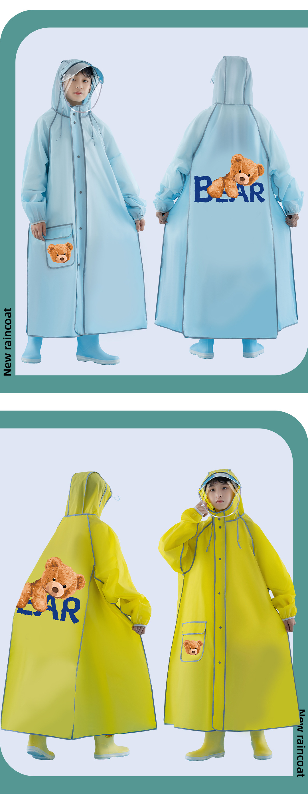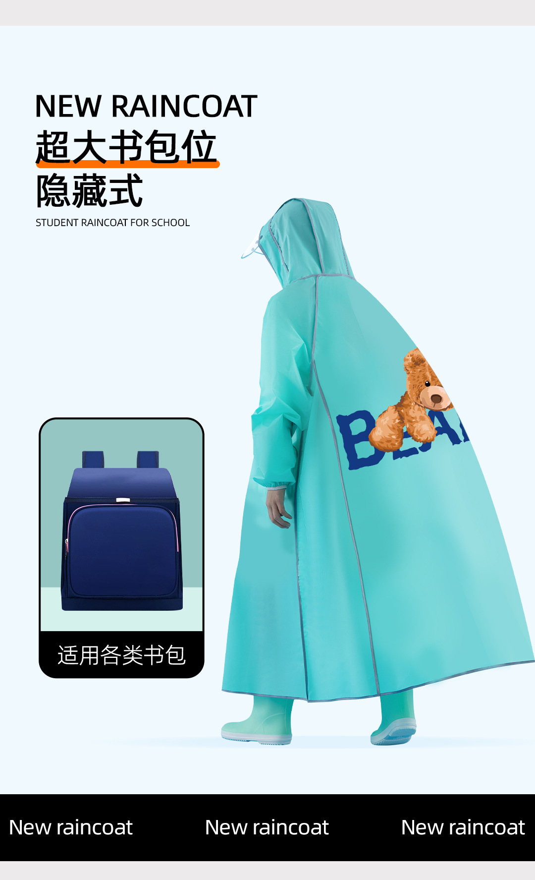 비옷 어린이 초등 및 중등 학교 학생 통합 십대, 남학생과 여학생, 중학교 및 큰 어린이, 학교 가방, 어린이 학교 판초