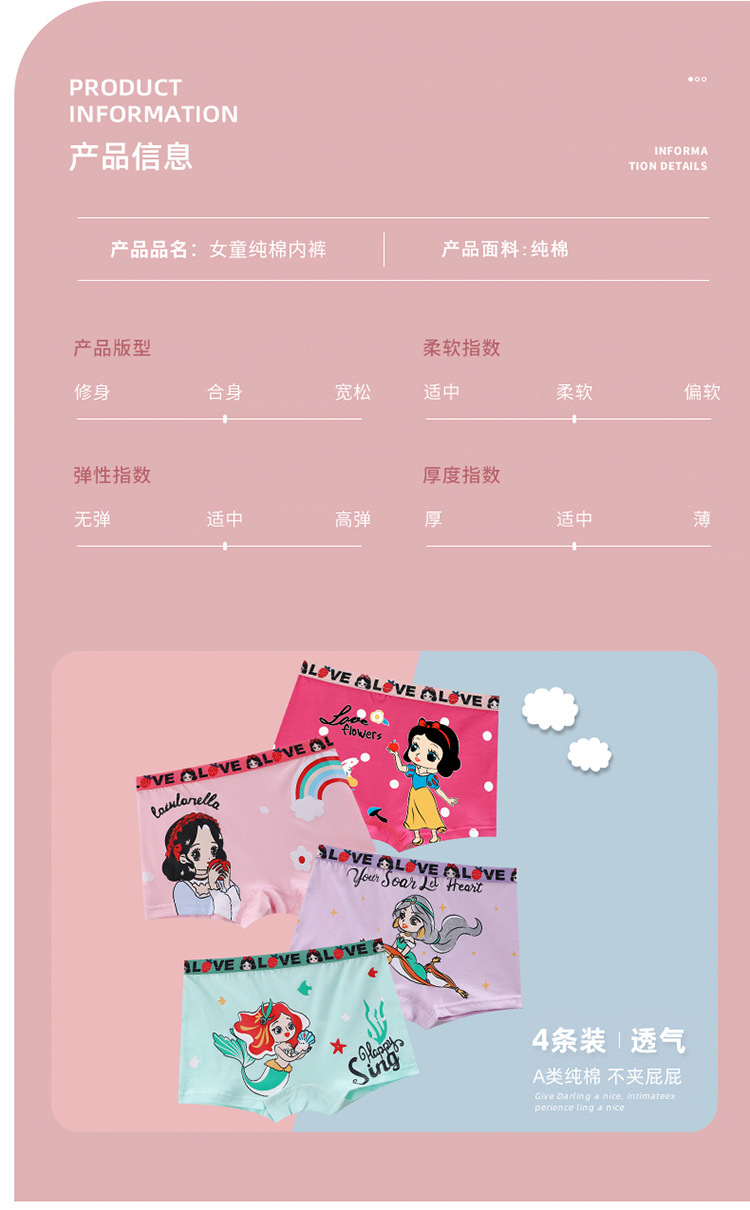 어린이 속옷 코튼 걸스 복서 속옷 통기성 만화 소녀 복서 속옷스토어 가기