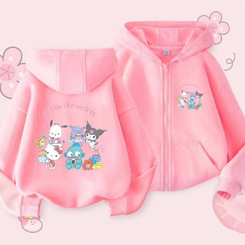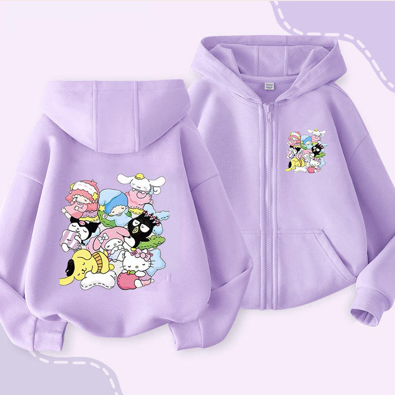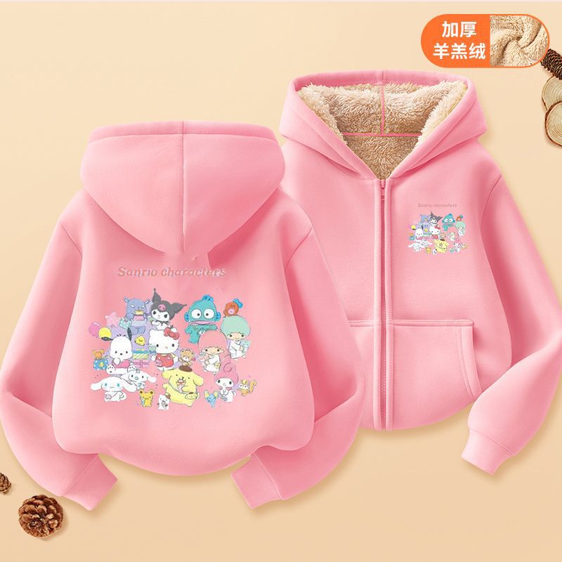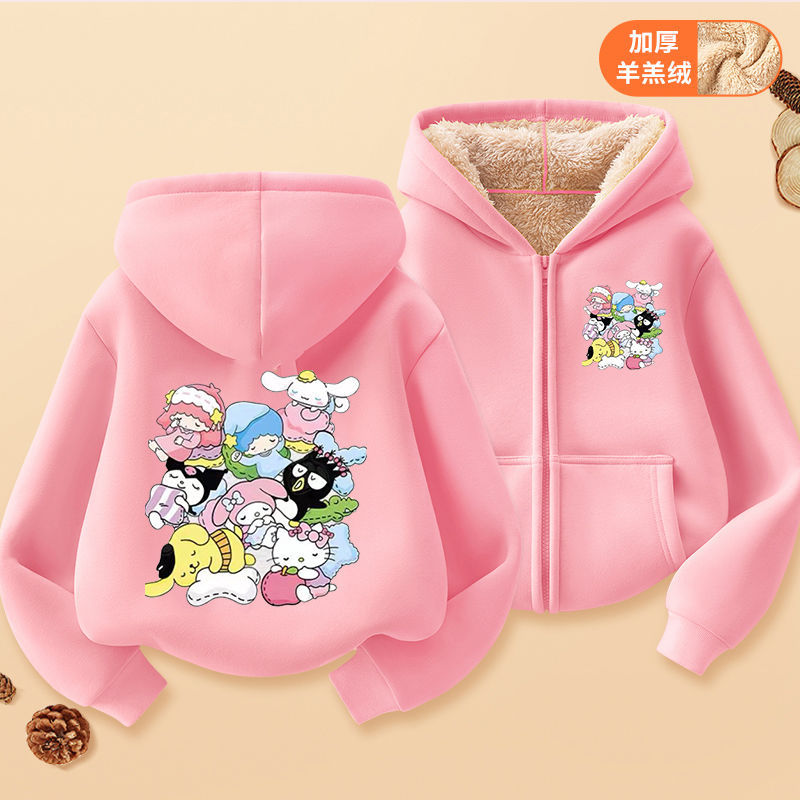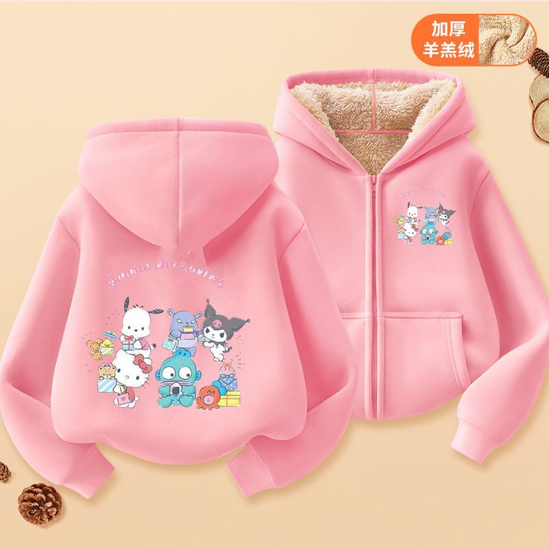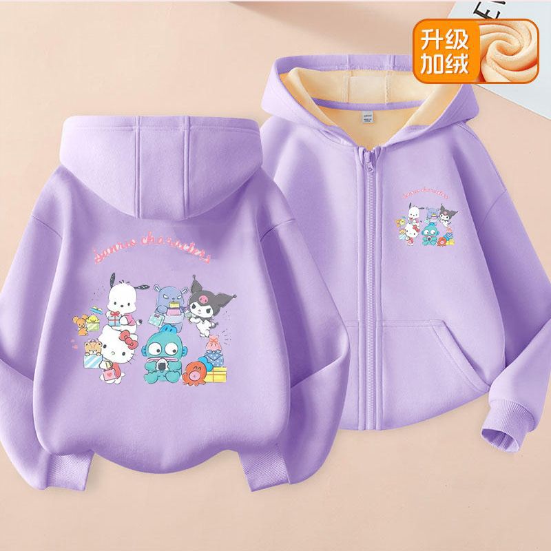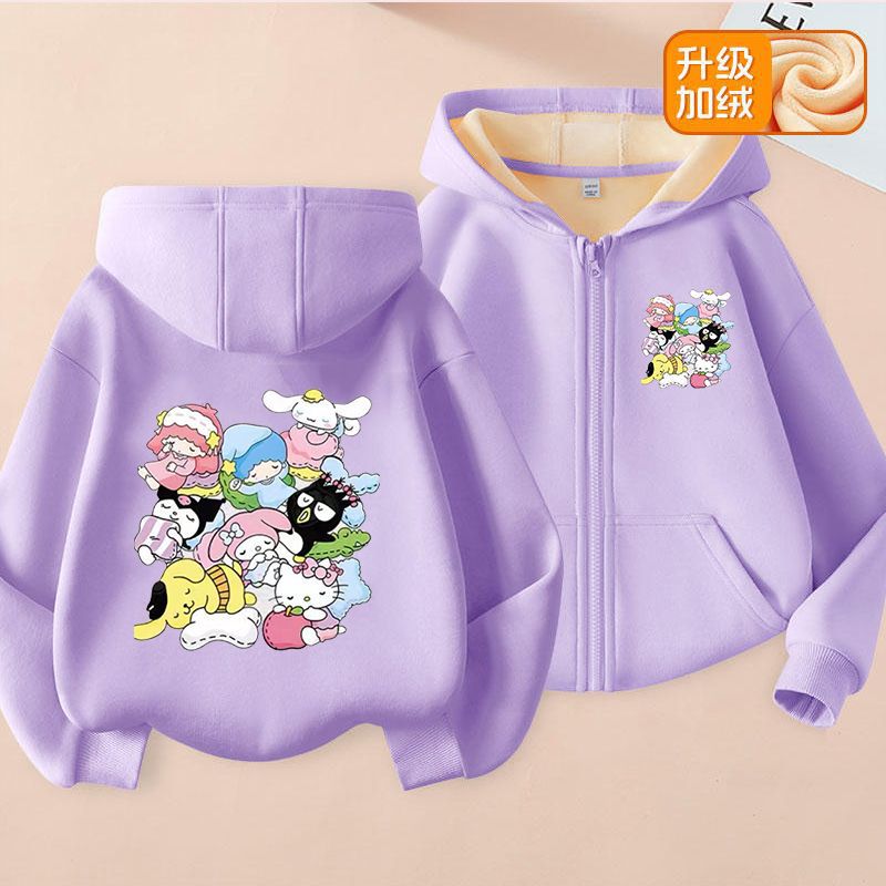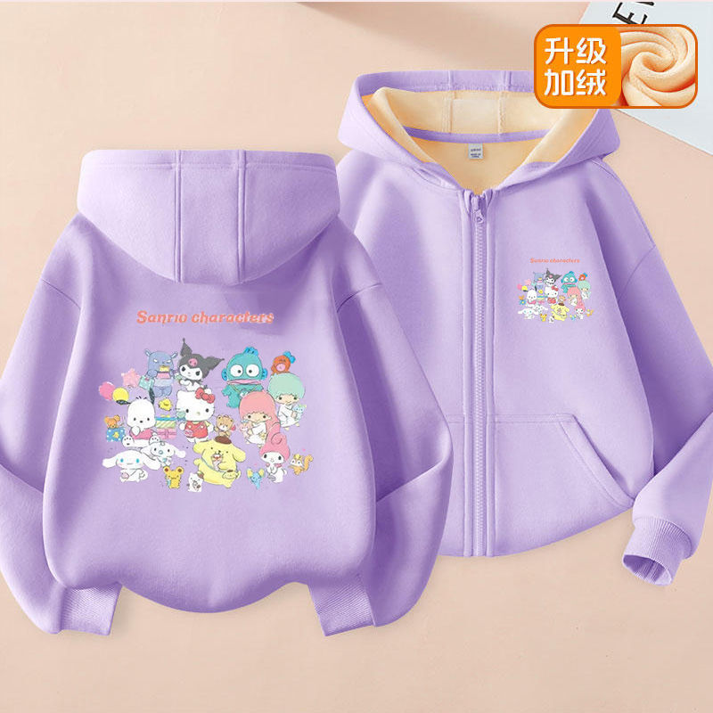 어린이 Kulomi 소녀의 봄과 가을 지퍼 2024 코트 새로운 도착 기모 스타일 산리오 후드 카디건 스웨터스토어 가기