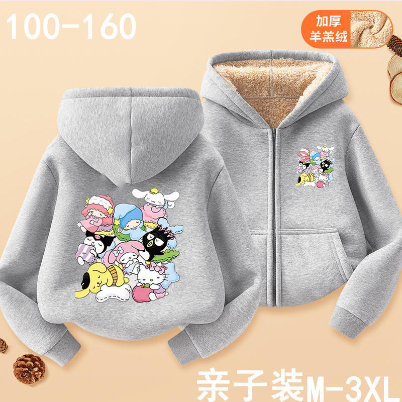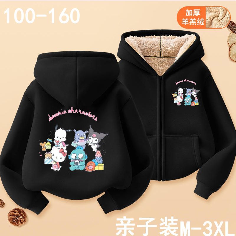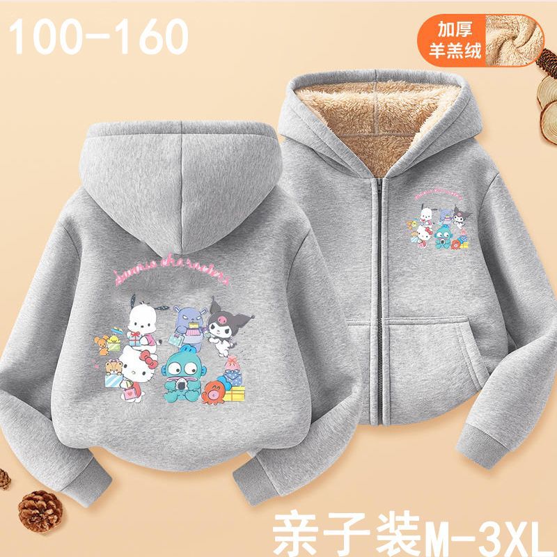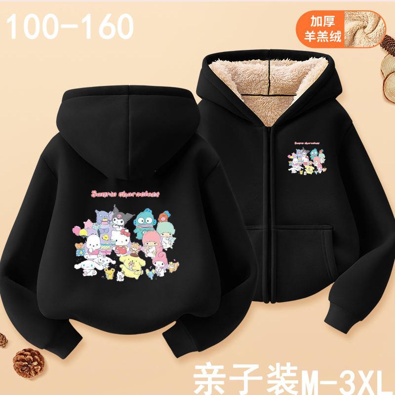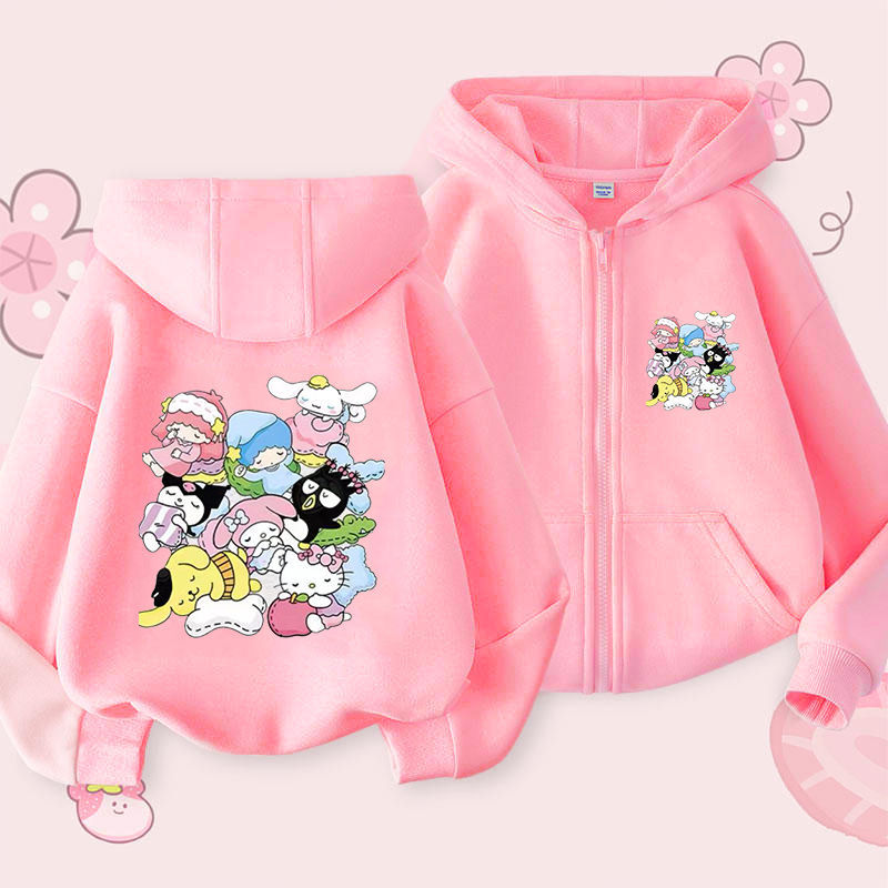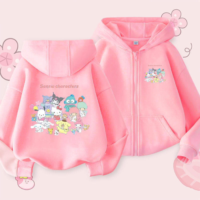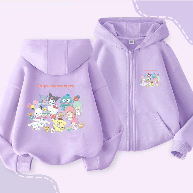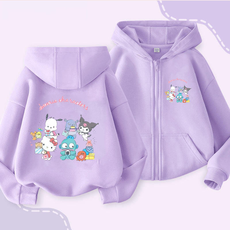 어린이 Kulomi 소녀의 봄과 가을 지퍼 2024 코트 새로운 도착 기모 스타일 산리오 후드 카디건 스웨터스토어 가기