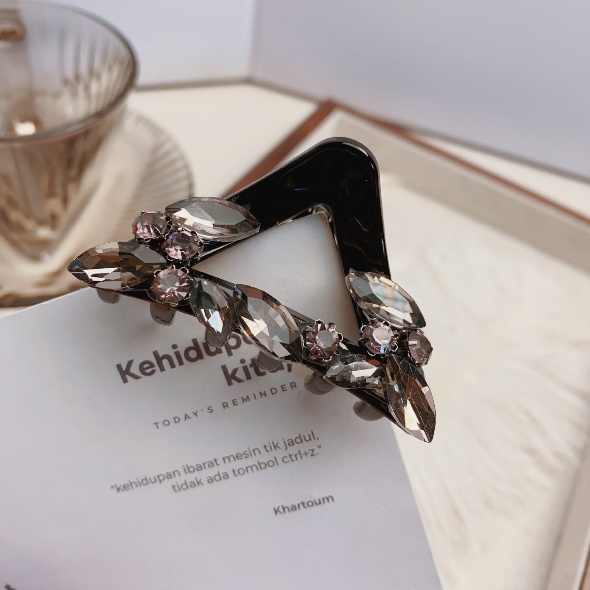 한국 패션 하이 센스 6cm 다이아몬드 삼각형 기하학적 그립 클립 기질 백 하프 헤드 상어 머리핀