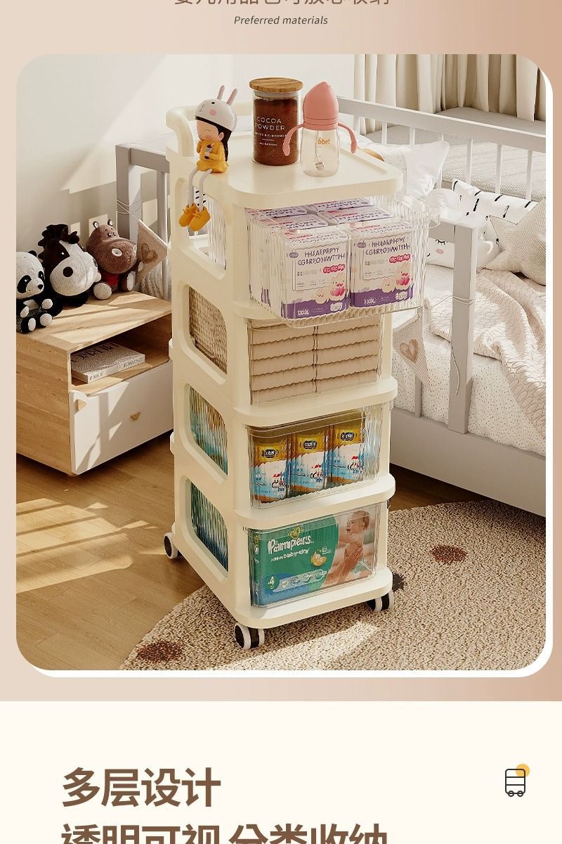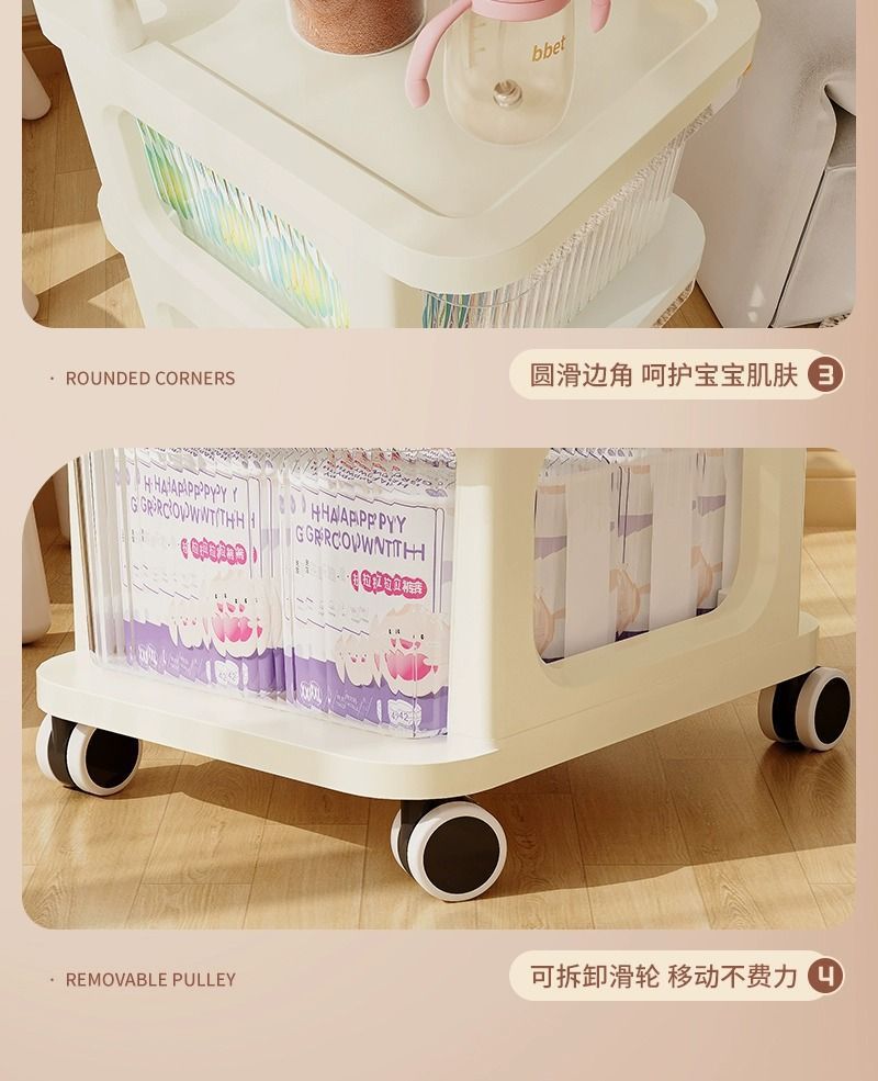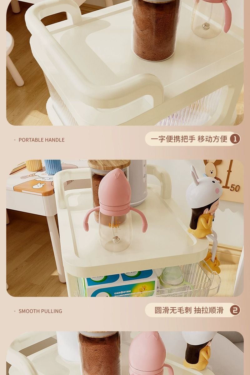 크림 스타일 저장 캐비닛 아기 유모차 저장 랙 서랍 유형 스낵 캐비닛 움직일 수있는 아기 장난감 보관 랙