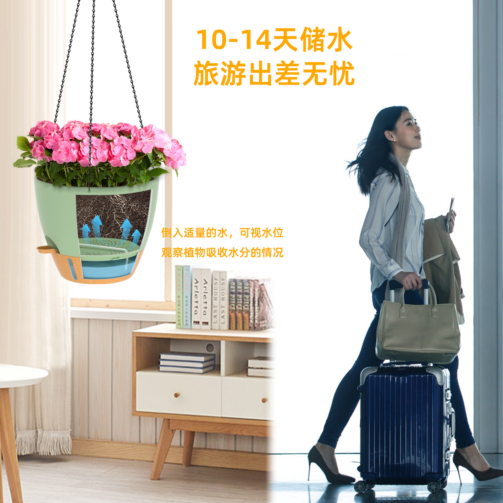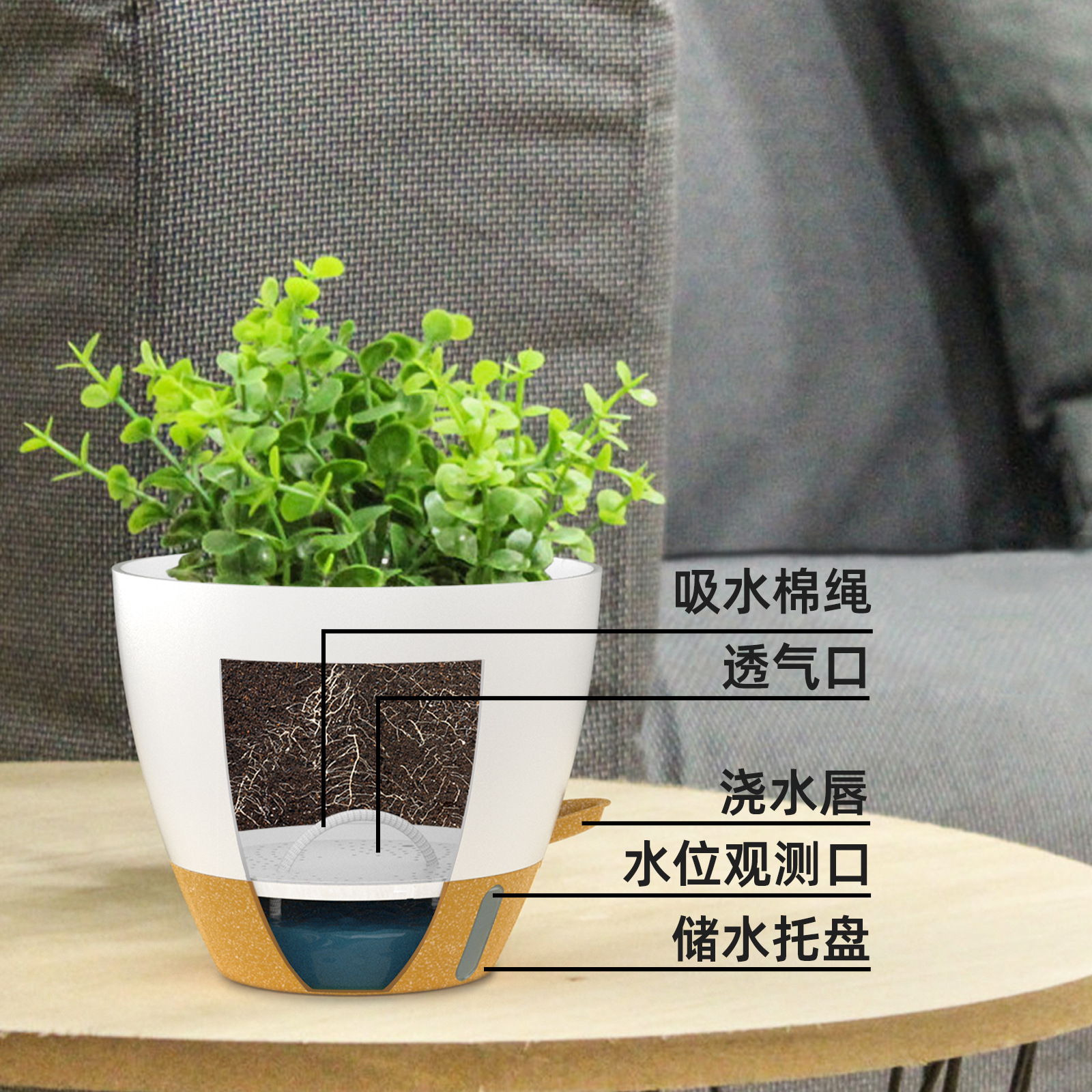 공장 직접 국경 전자 상거래 시각적 수위 옆 물 자체 흡수 플라스틱 발코니 안뜰 녹색 꽃 냄비