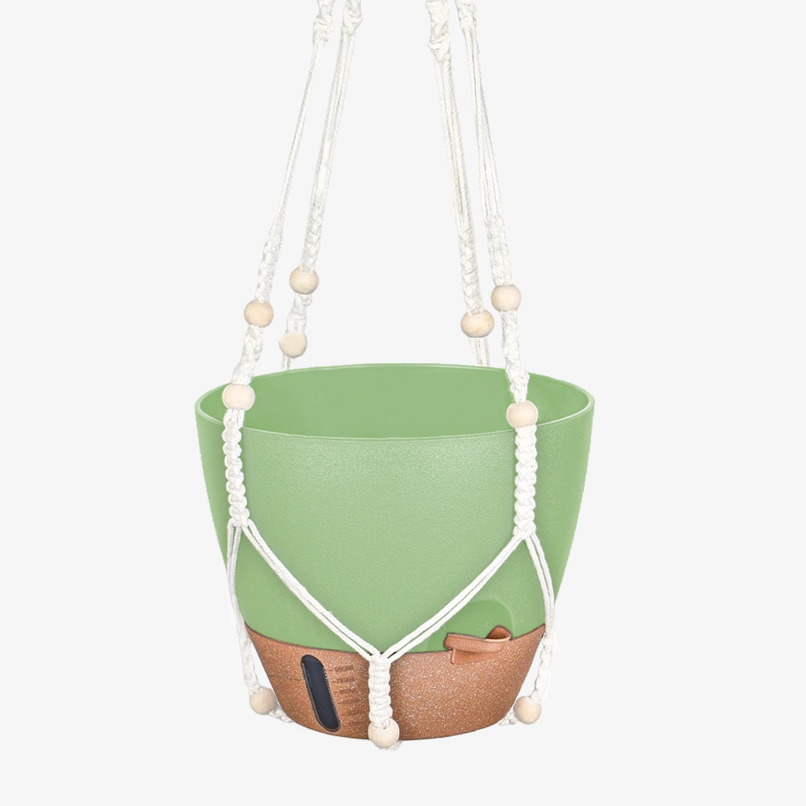 • 녹색 갈색 면 로프 걸이 바구니