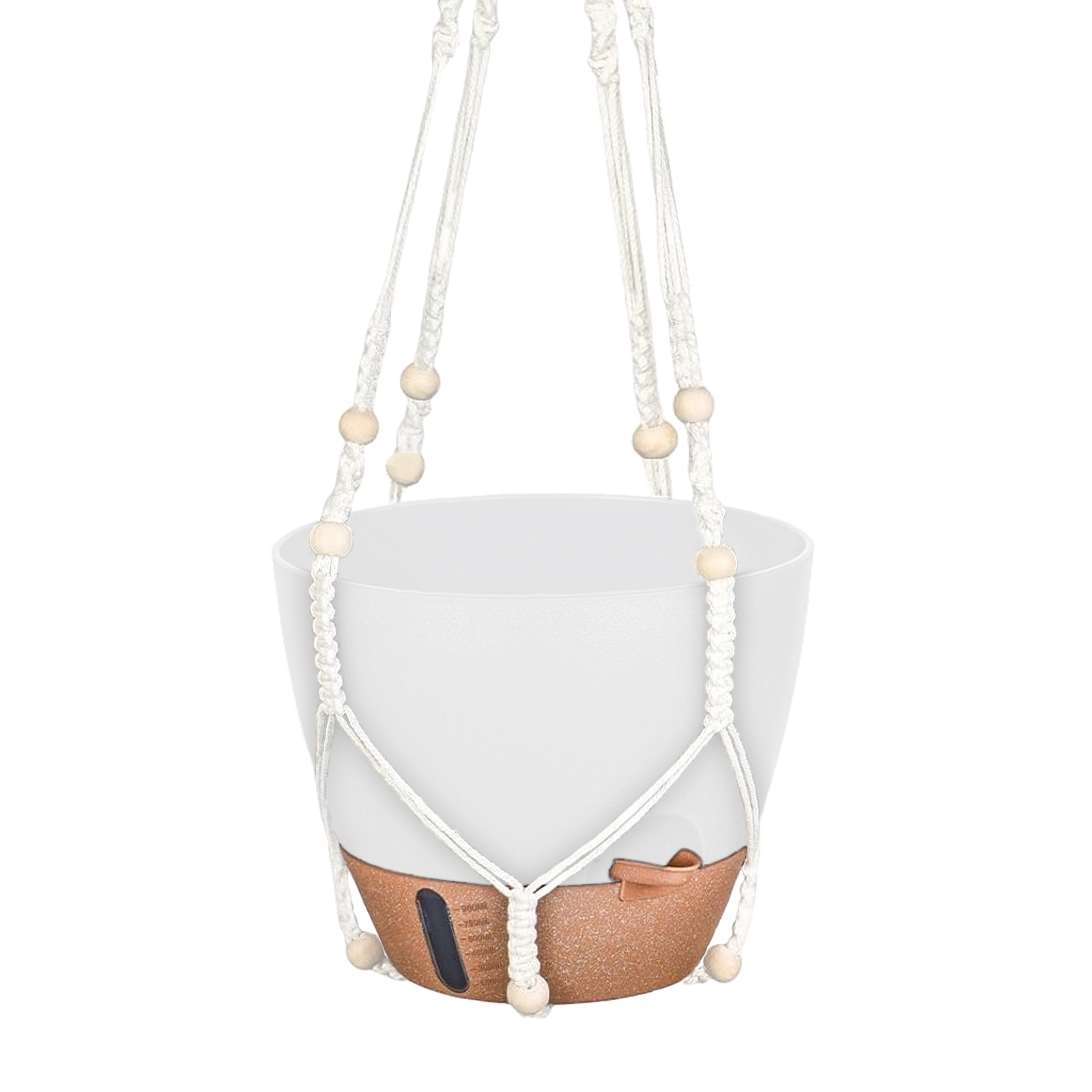 • 흰색 갈색 면 로프 걸이 바구니