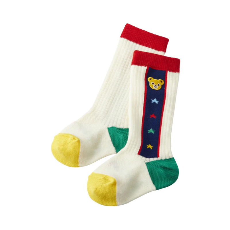 양말 일본식 새 만화 귀여운 곰과 토끼 자수 컬러 매칭 스타킹 아기 중간 길이 양말