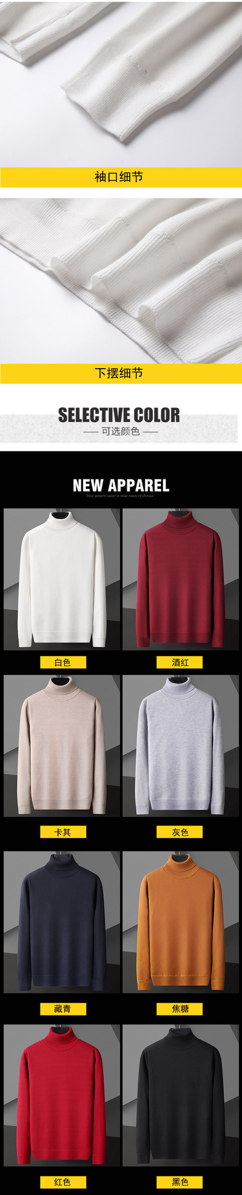메인 푸시 남성용 단색 하이 칼라 스웨터 가을과 겨울베이스 스웨터는 많은 수의 재고 운영합니다.스토어 가기