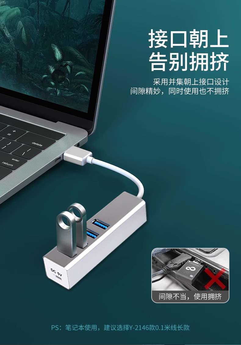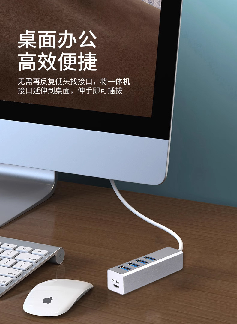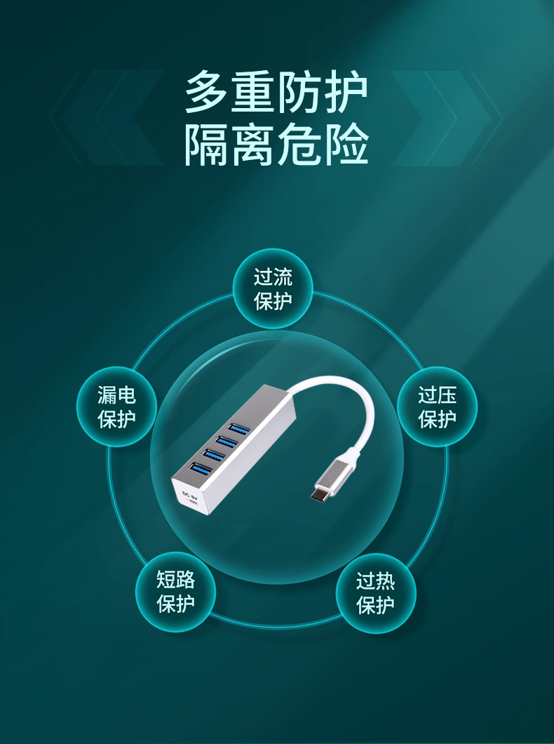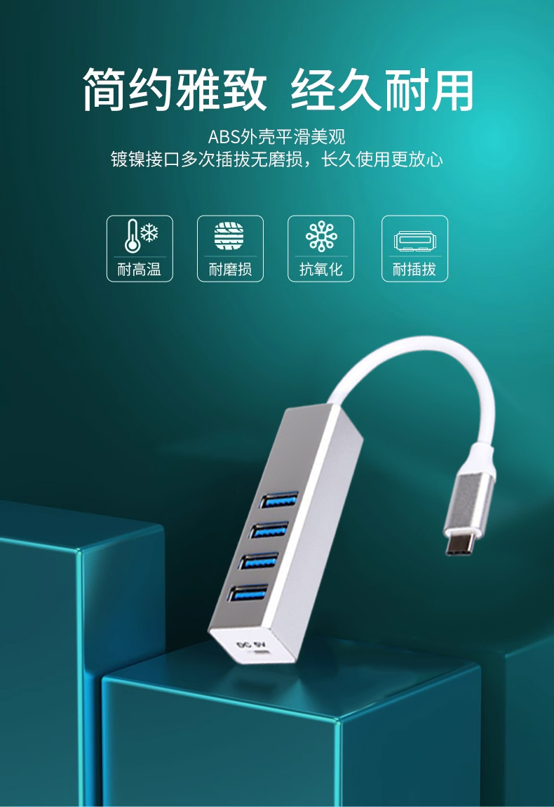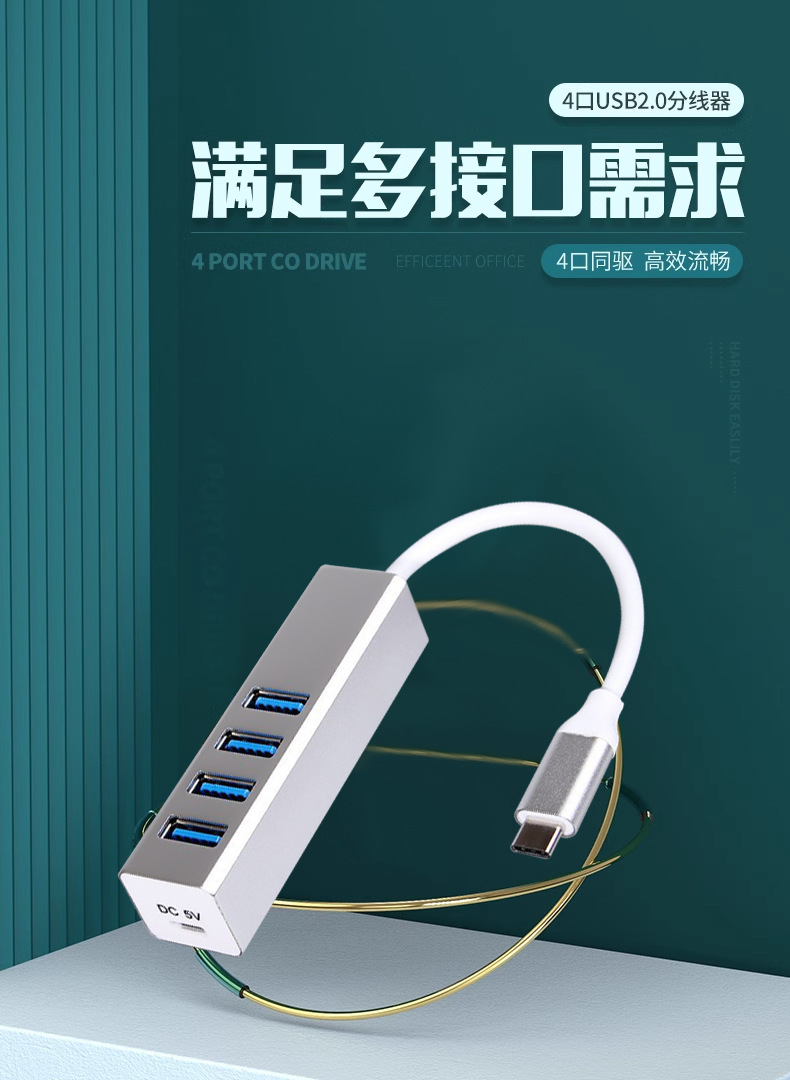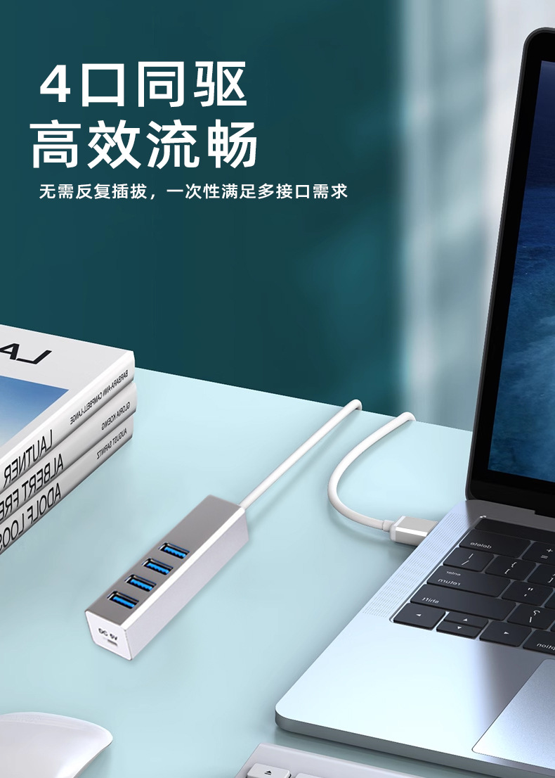 알루미늄 합금 Type-C 확장 도크 4 HUB 허브 컴퓨터 노트북 USB3.0 스플리터 1 드래그 4스토어 가기