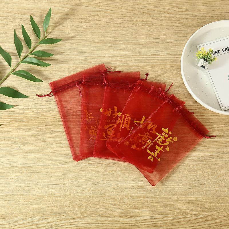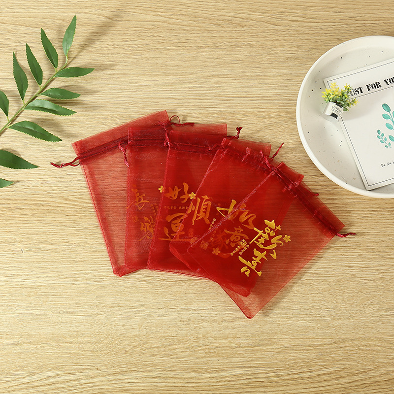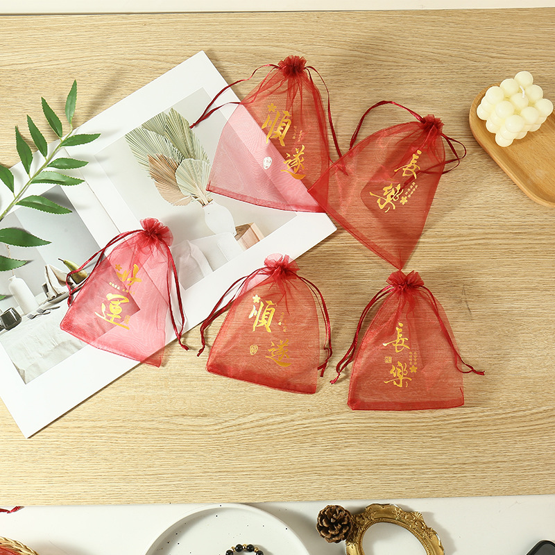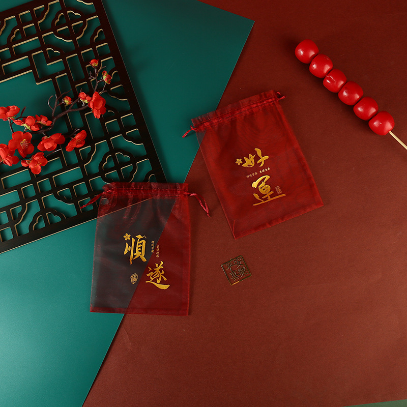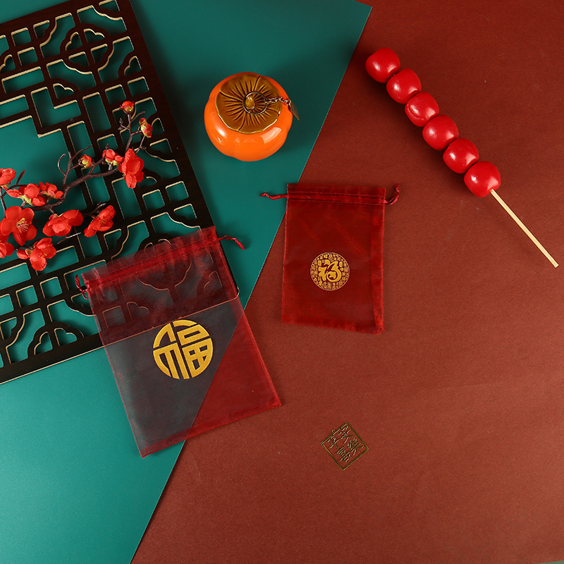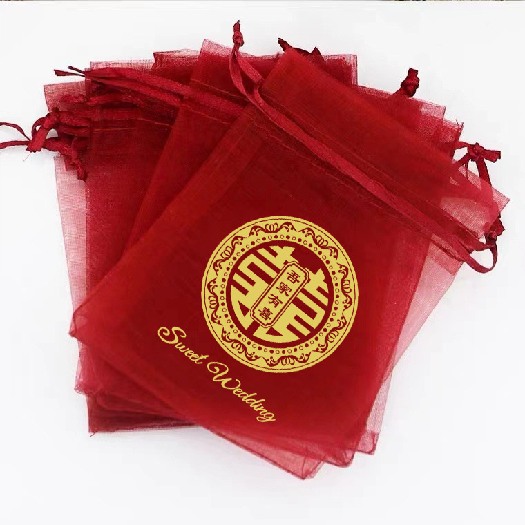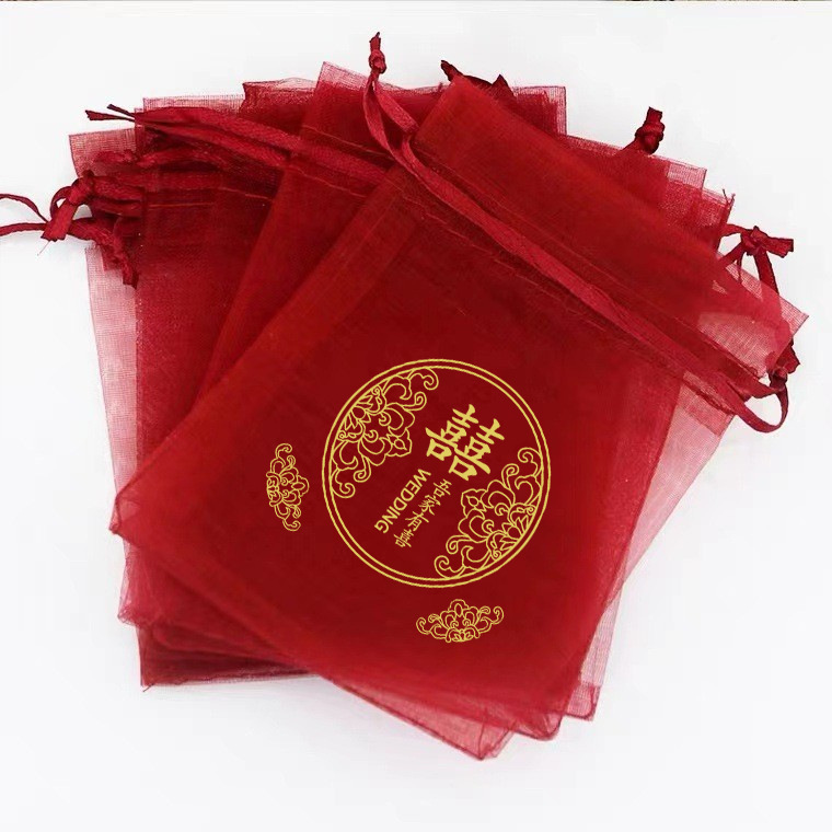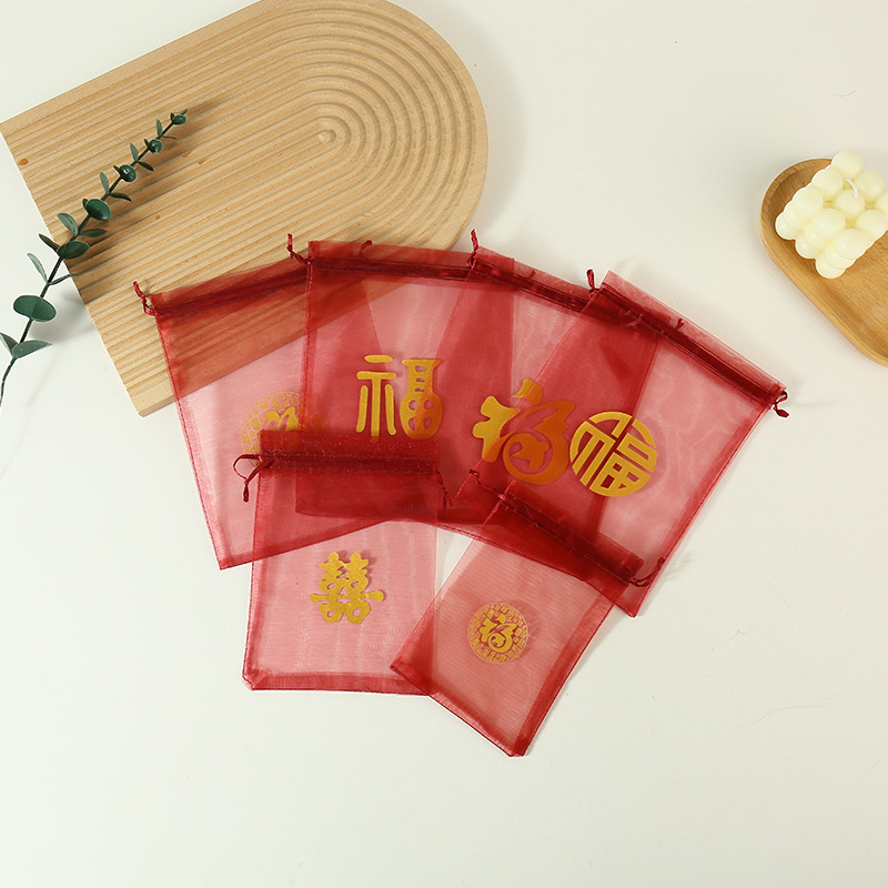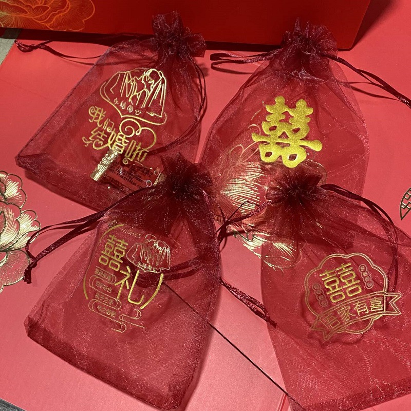 붉은 축제 결혼식 사탕 포장 가방 빔 메쉬 가방 선물 포장 보관 가방 인쇄 Guofeng 텍스트 원사 가방