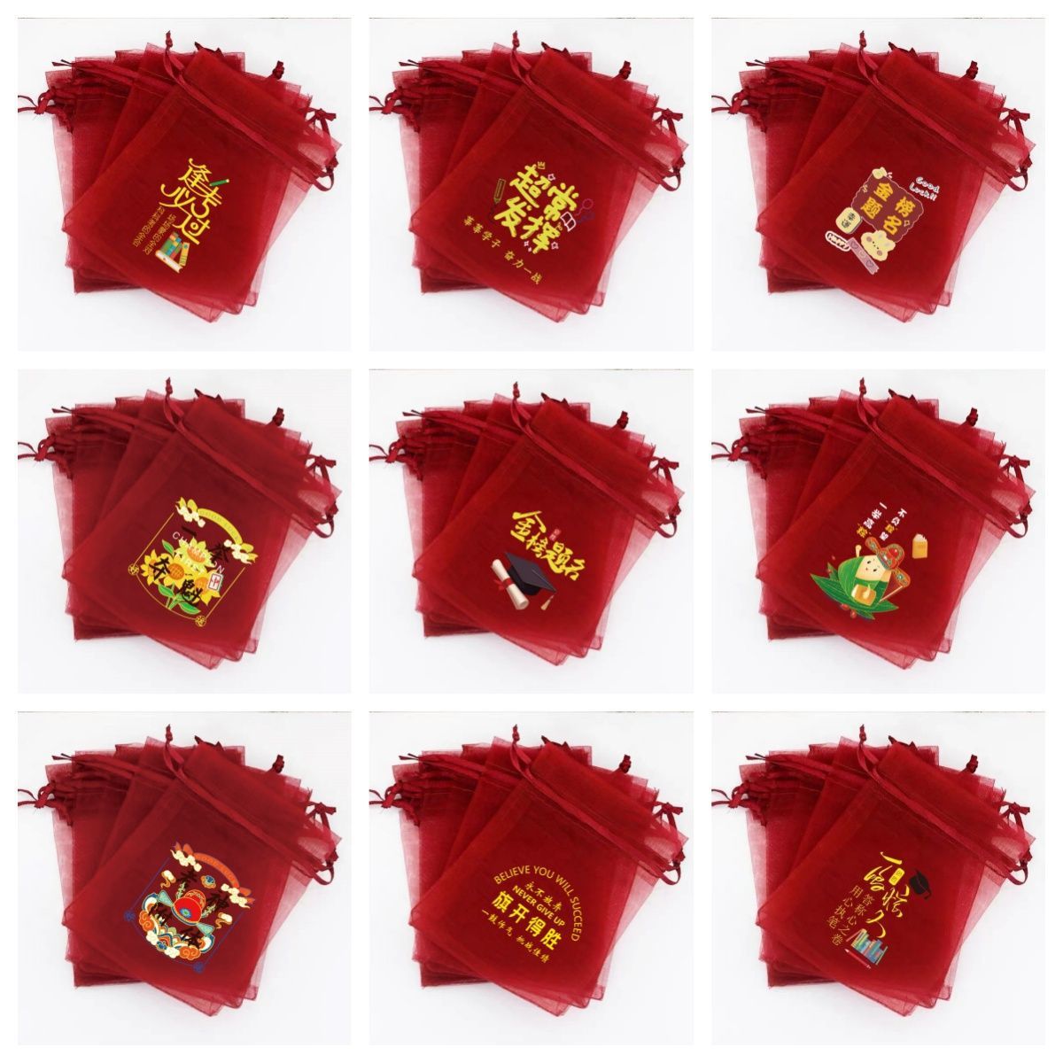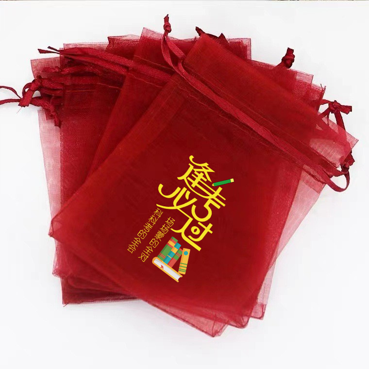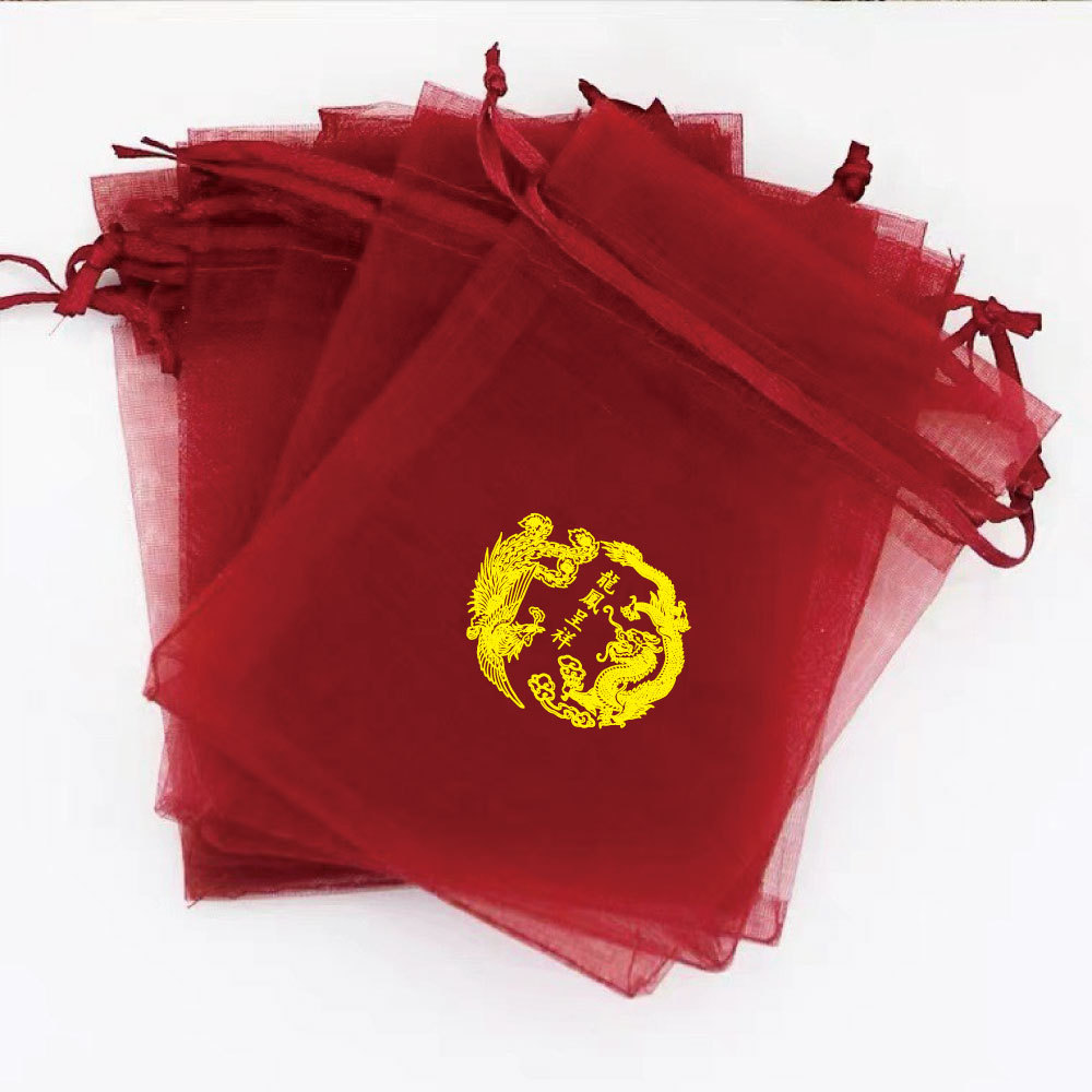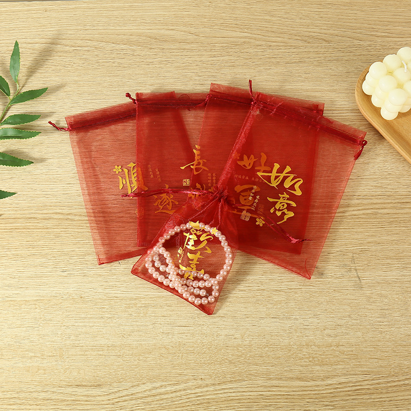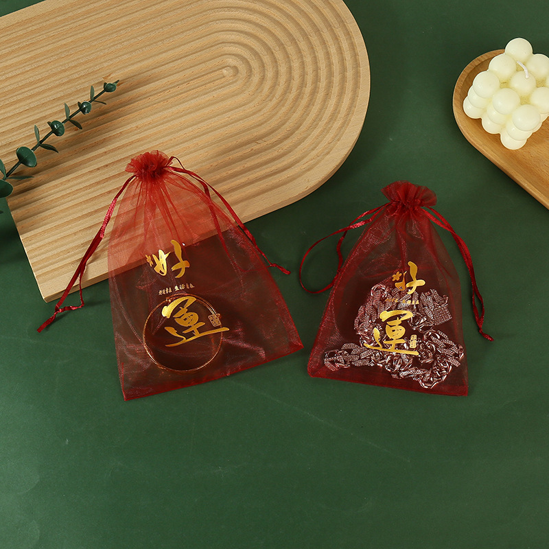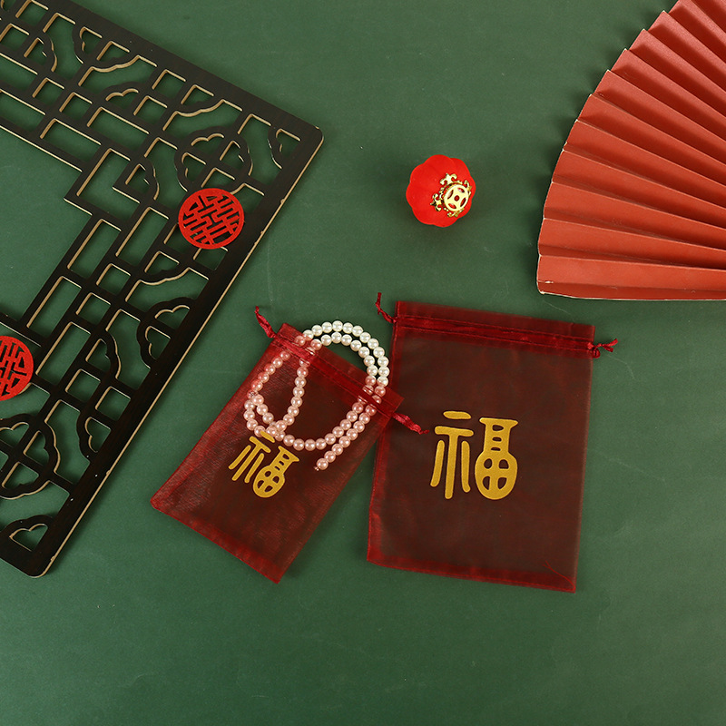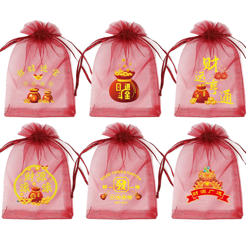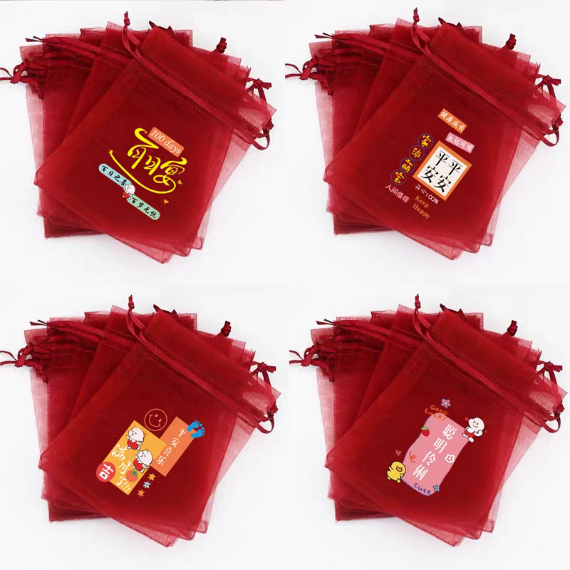 붉은 축제 결혼식 사탕 포장 가방 빔 메쉬 가방 선물 포장 보관 가방 인쇄 Guofeng 텍스트 원사 가방